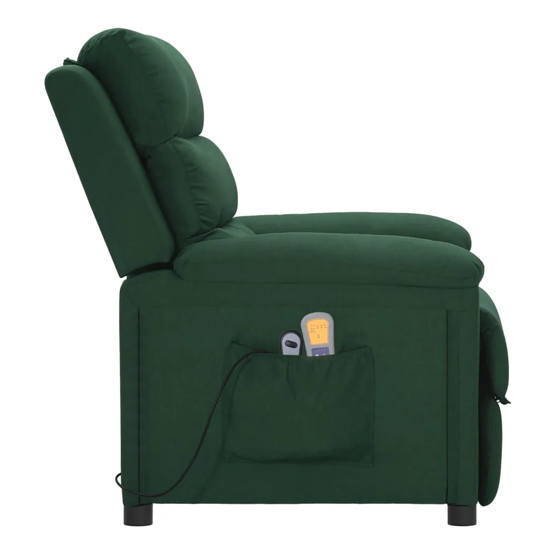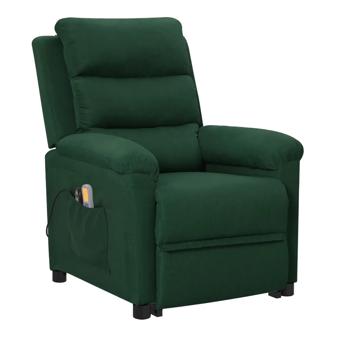 Asseyez-vous et détendez-vous dans ce fauteuil de massage très confortable ! Fonction d'inclinaison manuelle : le fauteuil inclinable est spécialement conçu avec 3 positions d'inclinaison afin que vous puissiez régler manuellement le dossier et le repose-pieds selon votre confort.Fonction de levage électrique : ce fauteuil inclinable pour personnes âgées est équipé d'un moteur électrique pour la fonction de levage. Grâce à la fonction qui pousse toute la chaise vers le haut, vous pouvez facilement vous tenir debout sans stresser votre dos et vos genoux grâce à la commande manuelle à 2 boutons.Fonction de vibration : les 6 points de massage vous permettent de faire l'expérience d'un massage mieux ciblé. De plus, la télécommande incluse vous permet de choisir différents programmes de massage. La fonction de massage est alimentée par le connecteur USB, mais la source d'alimentation USB 5V certifiée n'est pas incluse.Expérience d'assise confortable : le siège, le dossier et les larges accoudoirs rembourrés épais recouverts de tissu procurent une sensation confortable et chaleureuse, vous permettant de vous sentir enveloppé lorsque vous êtes assis. Le tissu présente un aspect simple et épuré, et est respirant et durable.Cadre solide et stable : le cadre en bois et en métal offre une structure solide et une grande stabilité. Ce fauteuil inclinable est confortable et durable.