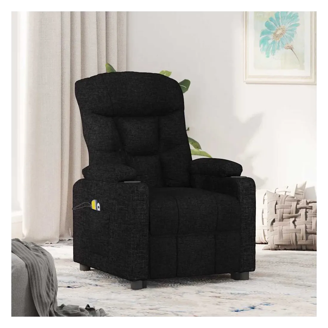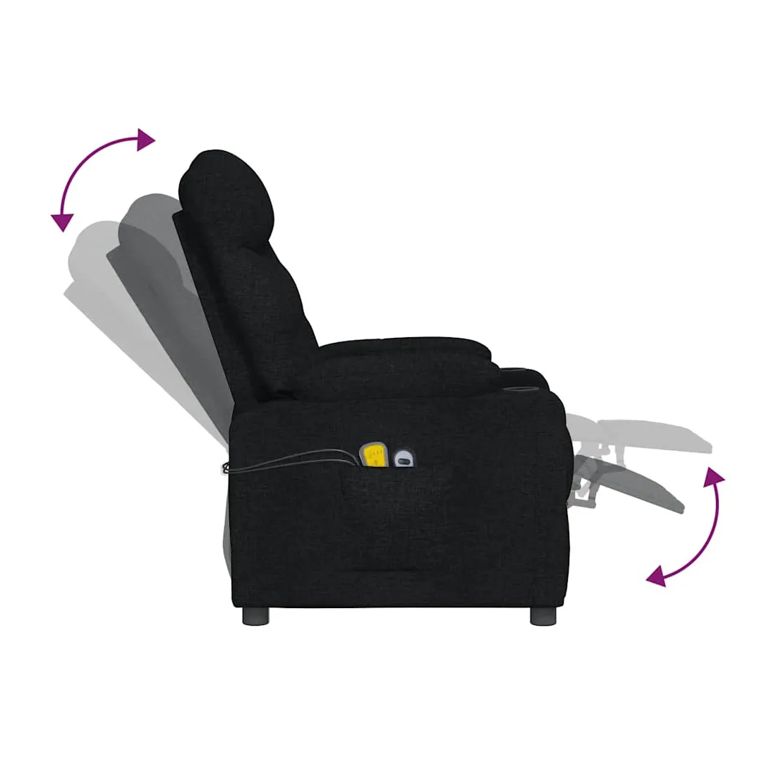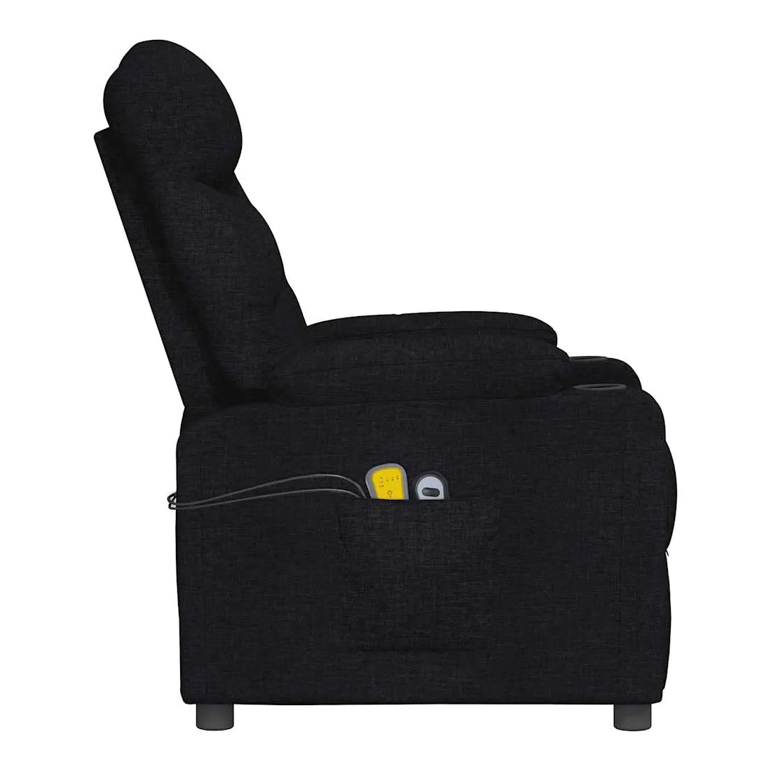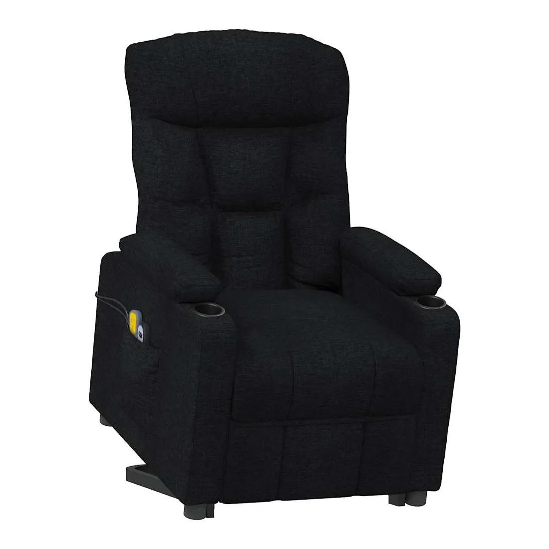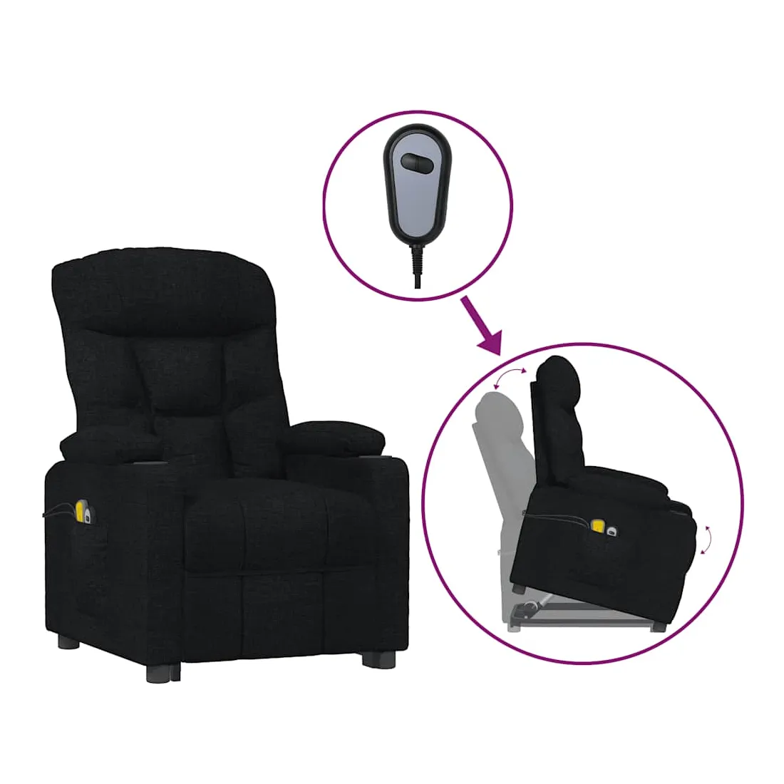 Asseyez-vous et détendez-vous dans ce fauteuil de massage très confortable ! Fonction d'inclinaison manuelle : le fauteuil inclinable est spécialement conçu avec 3 positions d'inclinaison afin que vous puissiez régler manuellement le dossier et le repose-pieds selon votre confort.Fonction de levage électrique : ce fauteuil inclinable pour personnes âgées est équipé d'un moteur électrique pour la fonction de levage. Grâce à la fonction qui pousse toute la chaise vers le haut, vous pouvez facilement vous tenir debout sans stresser votre dos et vos genoux grâce à la commande manuelle à 2 boutons.Fonction de vibration : les 6 points de massage vous permettent de faire l'expérience d'un massage mieux ciblé. De plus, la télécommande incluse vous permet de choisir différents programmes de massage. La fonction de massage est alimentée par le connecteur USB, mais la source d'alimentation USB 5V certifiée n'est pas incluse.Expérience d'assise confortable : le siège, le dossier et les larges accoudoirs rembourrés épais recouverts de tissu procurent une sensation confortable et chaleureuse, vous permettant de vous sentir enveloppé lorsque vous êtes assis. Le tissu présente un aspect simple et épuré, et est respirant et durable.Cadre solide et stable : le cadre en bois et en métal offre une structure solide et une grande stabilité. Ce fauteuil inclinable est confortable et durable.