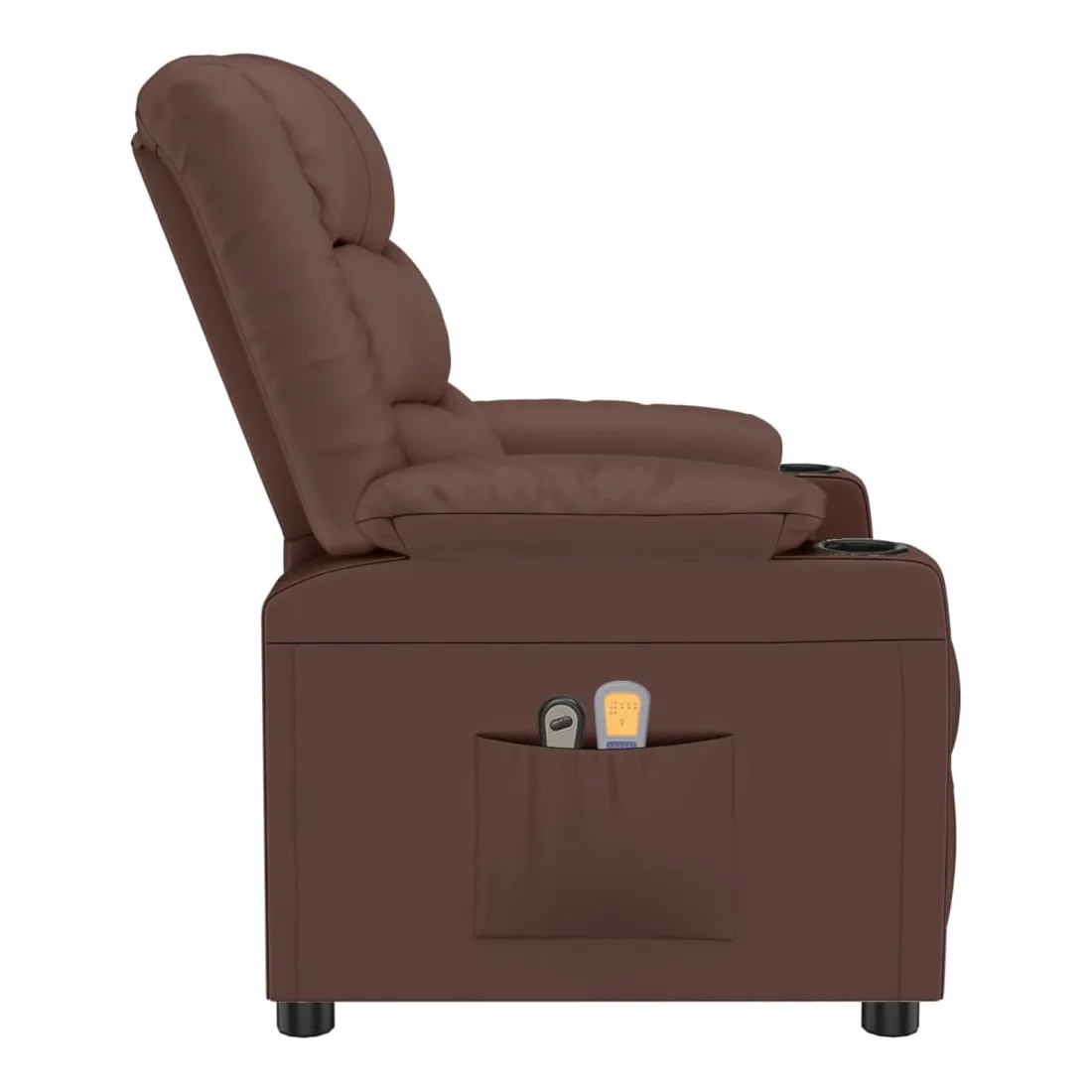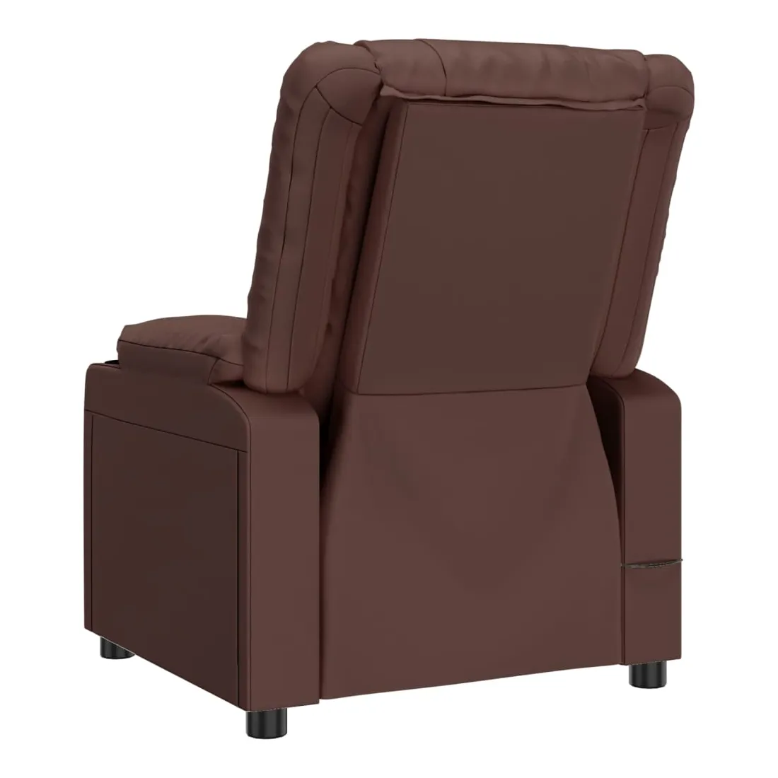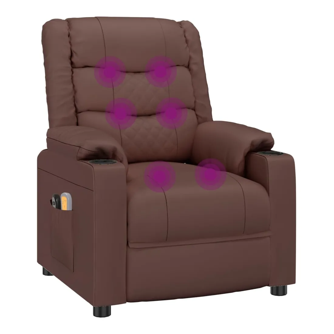 Asseyez-vous et détendez-vous dans ce fauteuil de massage électrique très confortable ! Fonction d'inclinaison électrique : le fauteuil inclinable est équipé d'un moteur électrique pour la fonction d'inclinaison. Il offre 3 positions d'inclinaison et vous pouvez facilement régler le dossier et le repose-pied à l'aide de la commande manuelle à 2 boutons incluse, en fonction de votre confort.Fonction de vibration : les 6 points de massage vous permettent de faire l'expérience d'un massage mieux ciblé. De plus, la télécommande incluse vous permet de choisir différents programmes de massage. La fonction de massage est alimentée par le connecteur USB, mais la source d'alimentation USB 5V certifiée n'est pas incluse.Expérience de siège confortable : le siège, le dossier et les larges accoudoirs rembourrés épais recouverts de similicuir procurent une sensation confortable et chaleureuse, vous faisant vous sentir enlacé lorsque vous êtes assis. Le simili cuir est un matériau très résistant. Il est résistant aux taches, ce qui le rend facile à nettoyer avec un chiffon humide. La surface lisse donne également un aspect luxueux et la beauté du cuir véritable.Cadre solide et stable : le cadre en bois et en métal offre une structure solide et une grande stabilité. Ce fauteuil inclinable est confortable et durable.
