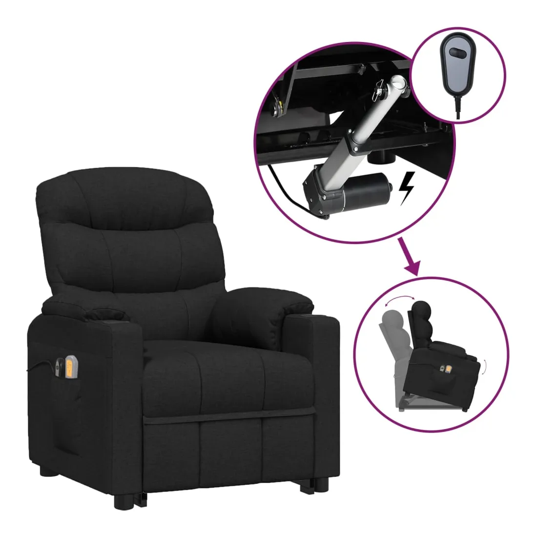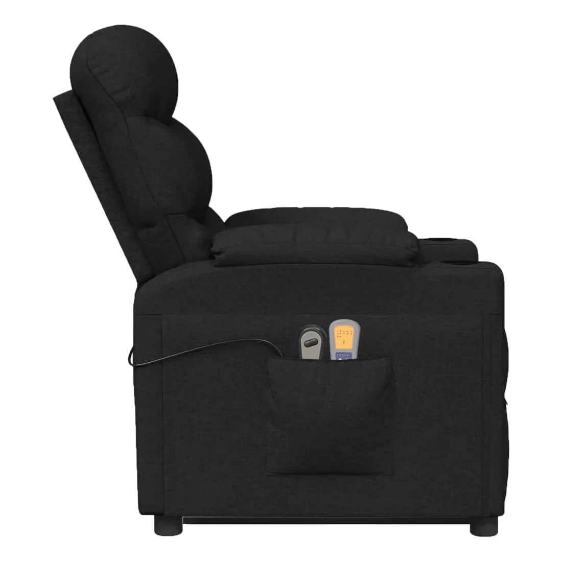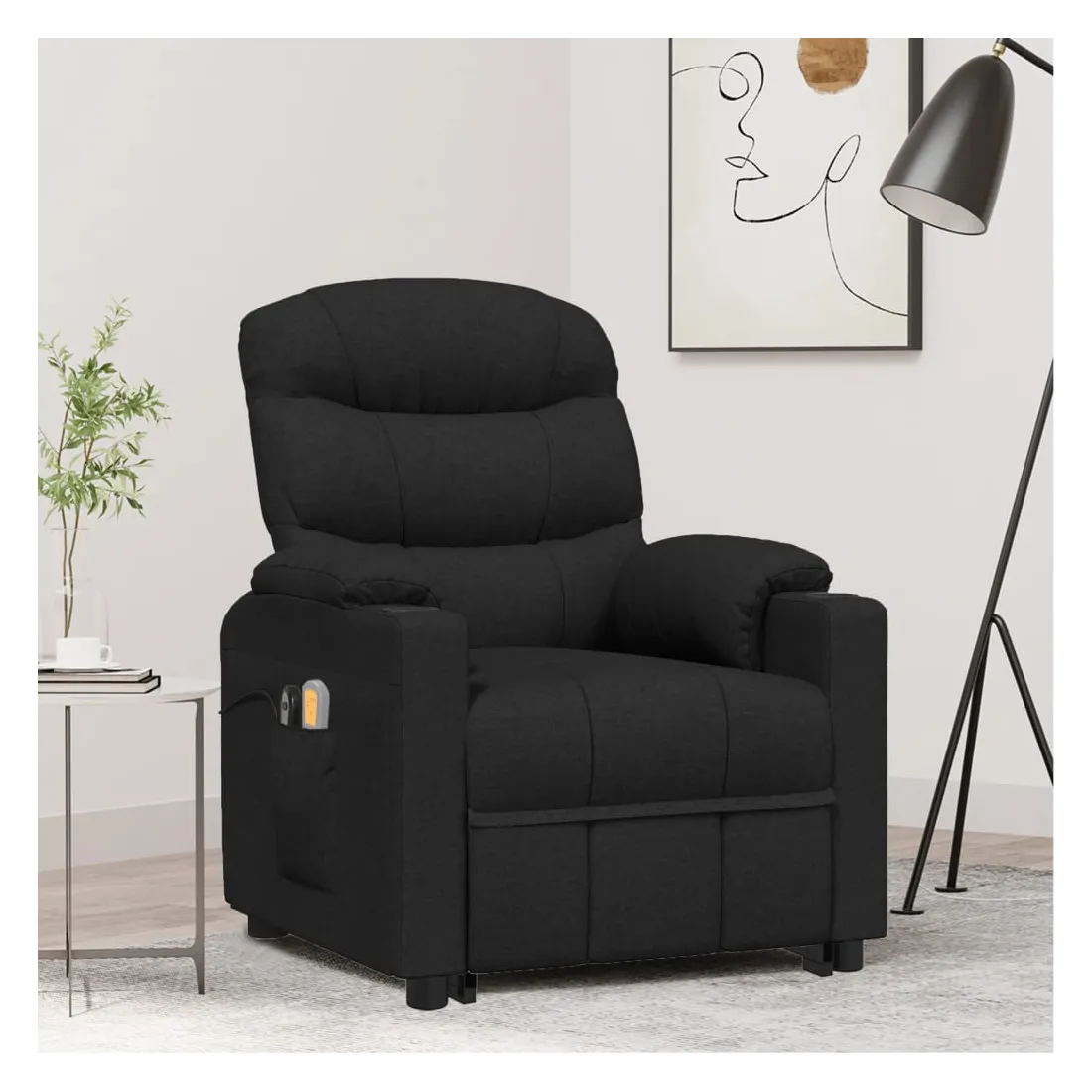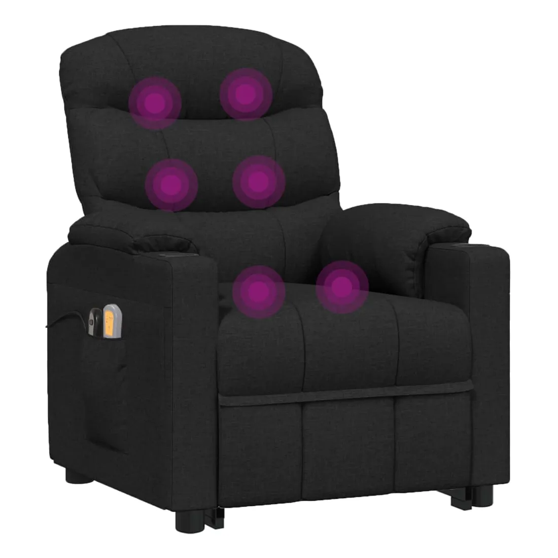 Asseyez-vous et détendez-vous dans ce fauteuil de massage très confortable ! Fonction d'inclinaison manuelle : le fauteuil inclinable est spécialement conçu avec 3 positions d'inclinaison afin que vous puissiez régler manuellement le dossier et le repose-pieds selon votre confort.Fonction de levage électrique : ce fauteuil inclinable pour personnes âgées est équipé d'un moteur électrique pour la fonction de levage. Grâce à la fonction qui pousse toute la chaise vers le haut, vous pouvez facilement vous tenir debout sans stresser votre dos et vos genoux grâce à la commande manuelle à 2 boutons.Fonction de vibration : les 6 points de massage vous permettent de faire l'expérience d'un massage mieux ciblé. De plus, la télécommande incluse vous permet de choisir différents programmes de massage. La fonction de massage est alimentée par le connecteur USB, mais la source d'alimentation USB 5V certifiée n'est pas incluse.Expérience d'assise confortable : le siège, le dossier et les larges accoudoirs rembourrés épais recouverts de tissu procurent une sensation confortable et chaleureuse, vous permettant de vous sentir enveloppé lorsque vous êtes assis. Le tissu présente un aspect simple et épuré, et est respirant et durable.Cadre solide et stable : le cadre en bois et en métal offre une structure solide et une grande stabilité. Ce fauteuil inclinable est confortable et durable.