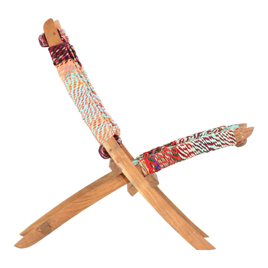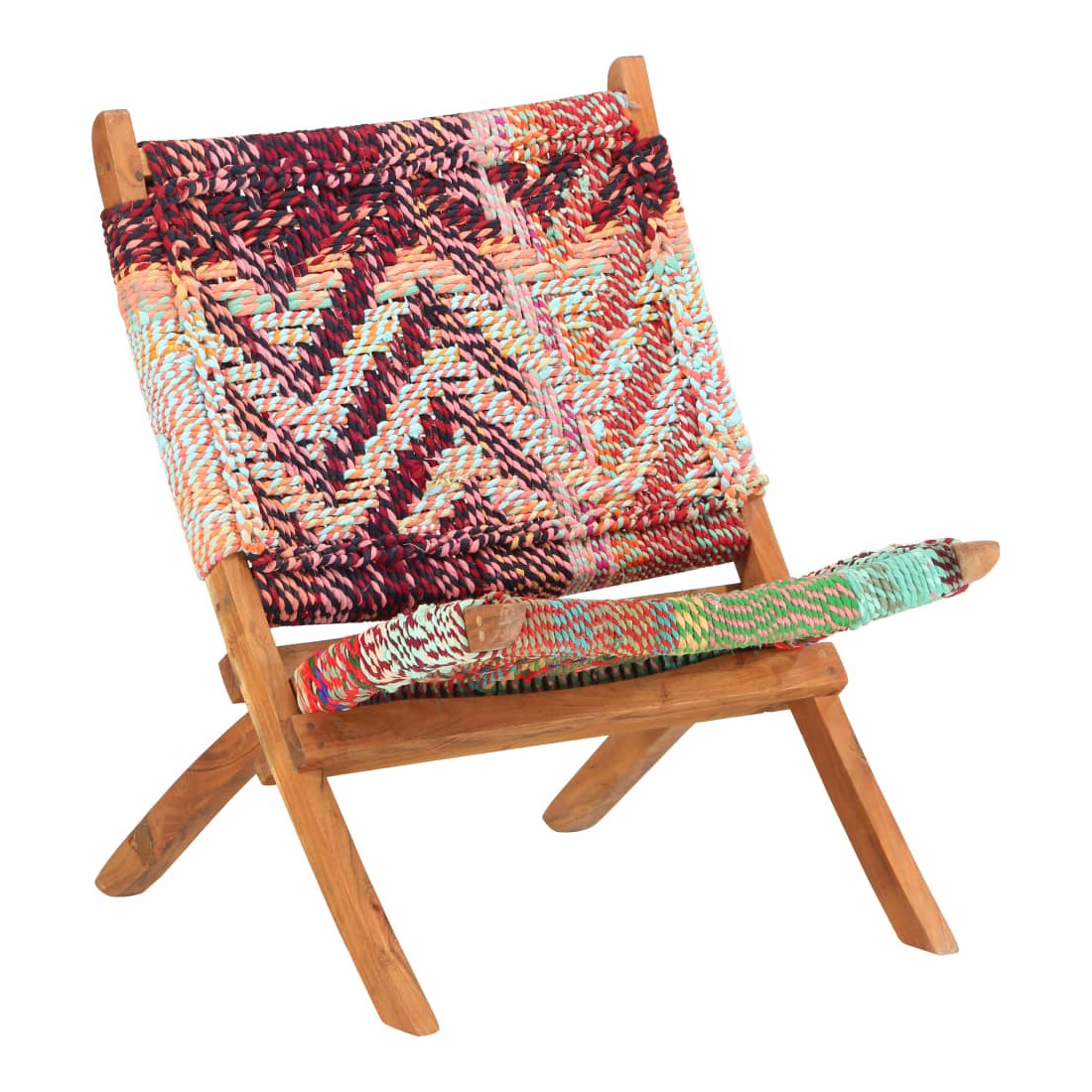 Profitez d'une relaxation complète après votre journée bien remplie avec notre chaise chindi classique. Cette chaise dispose d’un design ergonomique pour assurer un soutien suffisant à votre corps et de fournir le plus grand confort. Le rembourrage en coton rayé tissé à la main est doux au toucher, et le cadre en bois d’acacia massif rend la chaise stable. Grâce à sa conception pliante, cette chaise de relaxation peut être facilement rangée lorsqu'elle n’est pas utilisée. Remarque importante : le tissu peut varier d’une pièce à l’autre, ce qui rend chacune de nos chaises unique. La livraison est également aléatoire.