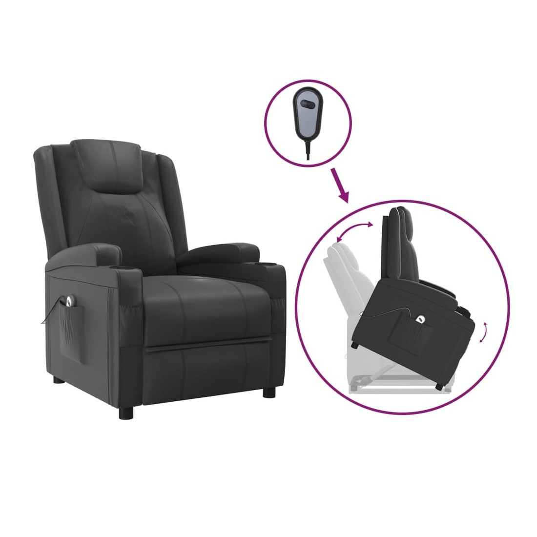 Asseyez-vous et détendez-vous dans ce fauteuil très confortable ! Fonction d'inclinaison manuelle : le fauteuil inclinable est spécialement conçu avec 3 positions d'inclinaison afin que vous puissiez régler manuellement le dossier et le repose-pieds selon votre confort.Fonction de levage électrique : ce fauteuil inclinable pour personnes âgées est équipé d'un moteur électrique pour la fonction de levage. Grâce à la fonction qui pousse toute la chaise vers le haut, vous pouvez facilement vous tenir debout sans stresser votre dos et vos genoux grâce à la commande manuelle à 2 boutons.Expérience de siège confortable : le siège, le dossier et les larges accoudoirs rembourrés épais recouverts de similicuir procurent une sensation confortable et chaleureuse, vous faisant vous sentir enlacé lorsque vous êtes assis. Le simili cuir est un matériau très résistant. Il est résistant aux taches, ce qui le rend facile à nettoyer avec un chiffon humide. La surface lisse donne également un aspect luxueux et la beauté du cuir véritable.Cadre solide et stable : le cadre en bois et en métal offre une structure solide et une grande stabilité. Ce fauteuil inclinable est confortable et durable.