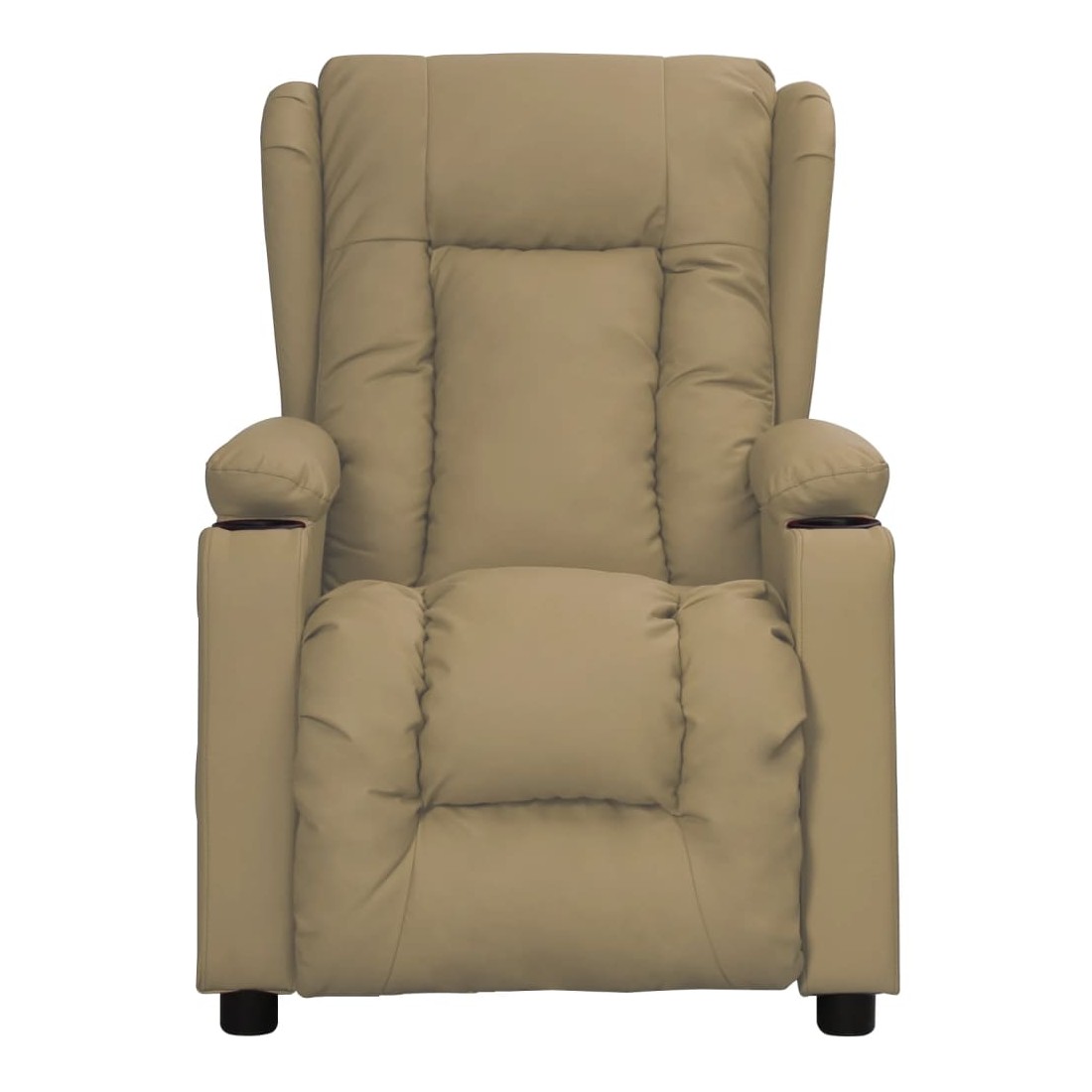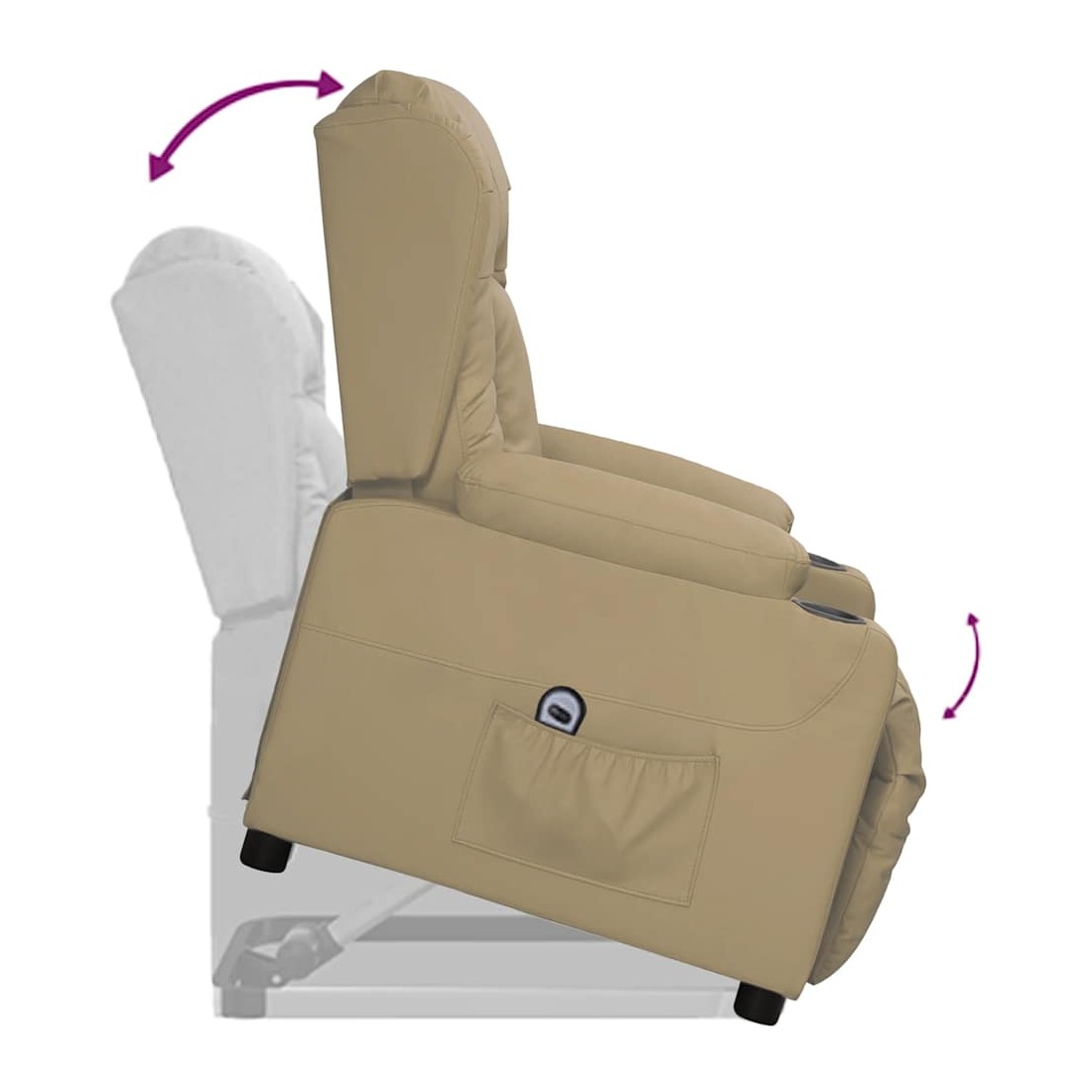 Asseyez-vous et détendez-vous dans ce fauteuil très confortable ! Fonction d'inclinaison manuelle : le fauteuil inclinable est spécialement conçu avec 3 positions d'inclinaison afin que vous puissiez régler manuellement le dossier et le repose-pieds selon votre confort.Fonction de levage électrique : ce fauteuil inclinable pour personnes âgées est équipé d'un moteur électrique pour la fonction de levage. Grâce à la fonction qui pousse toute la chaise vers le haut, vous pouvez facilement vous tenir debout sans stresser votre dos et vos genoux grâce à la commande manuelle à 2 boutons.Expérience de siège confortable : le siège, le dossier et les larges accoudoirs rembourrés épais recouverts de similicuir procurent une sensation confortable et chaleureuse, vous faisant vous sentir enlacé lorsque vous êtes assis. Le simili cuir est un matériau très résistant. Il est résistant aux taches, ce qui le rend facile à nettoyer avec un chiffon humide. La surface lisse donne également un aspect luxueux et la beauté du cuir véritable.Cadre solide et stable : le cadre en bois et en métal offre une structure solide et une grande stabilité. Ce fauteuil inclinable est confortable et durable.