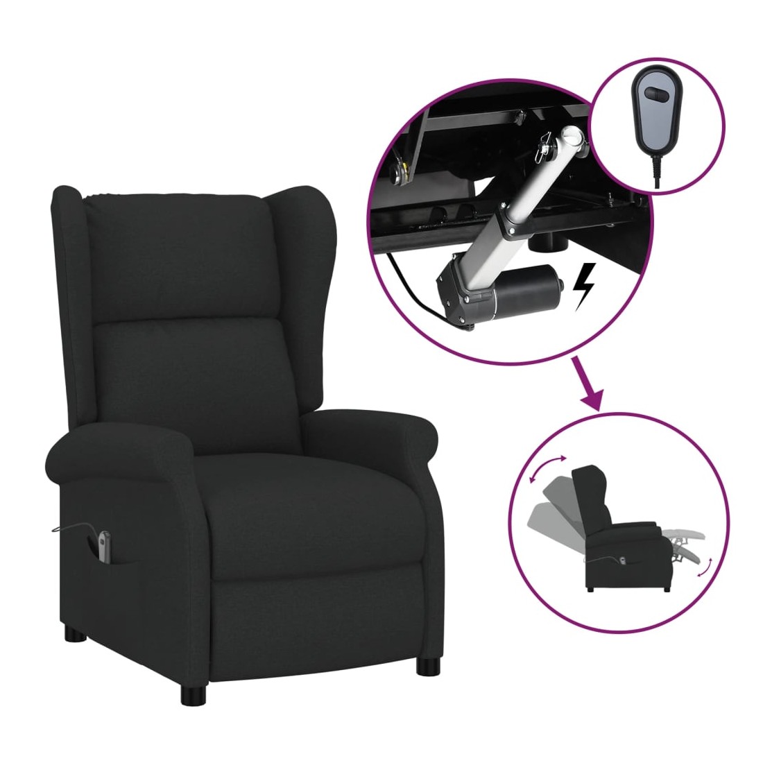 Fauteuil inclinable électrique à oreilles noir tissu