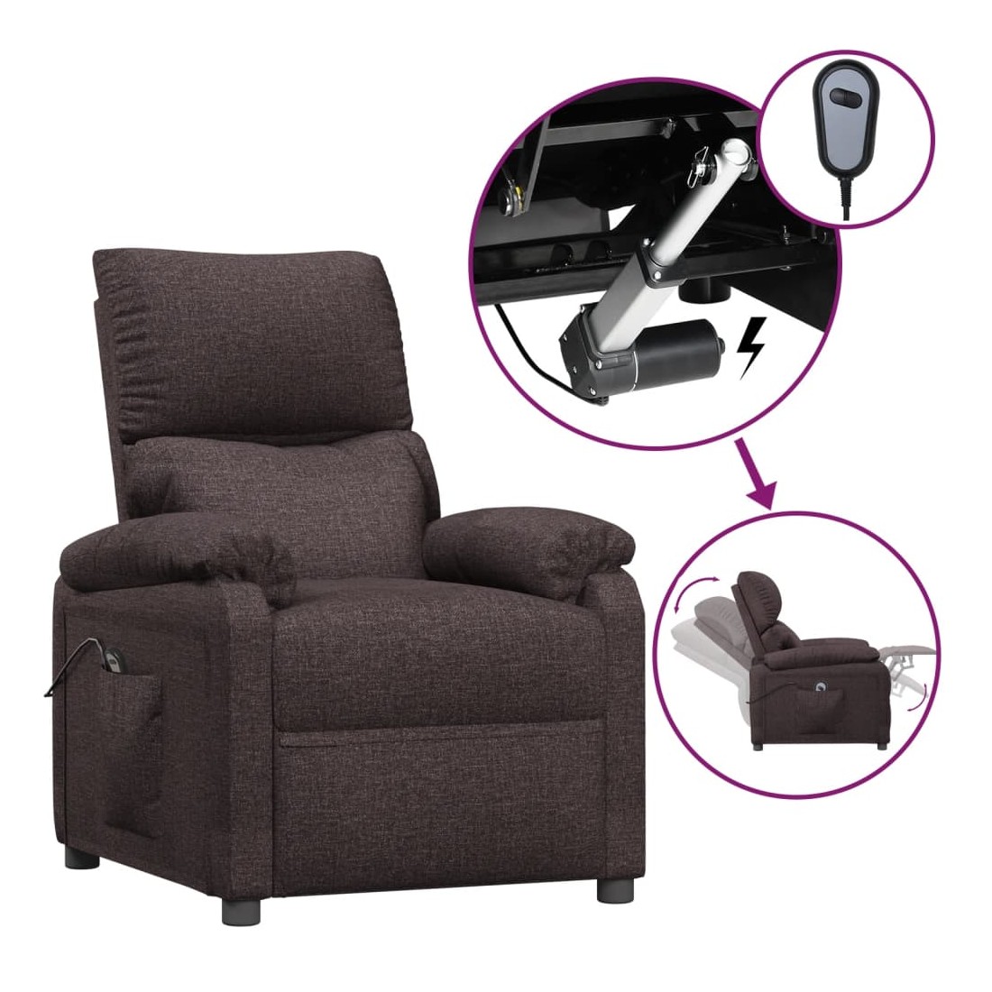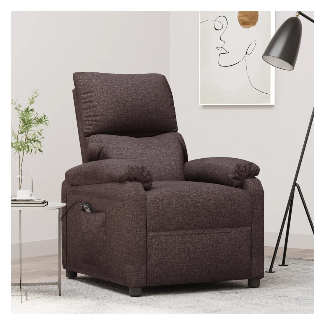 Asseyez-vous et détendez-vous dans ce fauteuil inclinable électrique très confortable ! Fonction d'inclinaison électrique : le fauteuil inclinable est équipé d'un moteur électrique pour la fonction d'inclinaison. Il offre 3 positions d'inclinaison et vous pouvez facilement régler le dossier et le repose-pied à l'aide de la commande manuelle à 2 boutons incluse, en fonction de votre confort.Expérience d'assise confortable : le siège, le dossier et les larges accoudoirs rembourrés épais recouverts de tissu procurent une sensation confortable et chaleureuse, vous permettant de vous sentir enveloppé lorsque vous êtes assis. Le tissu présente un aspect simple et épuré, et est respirant et durable.Cadre solide et stable : le cadre en bois et en métal offre une structure solide et une grande stabilité. Ce fauteuil inclinable est confortable et durable.