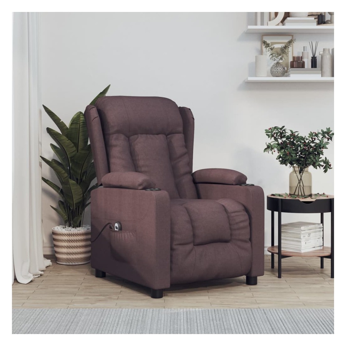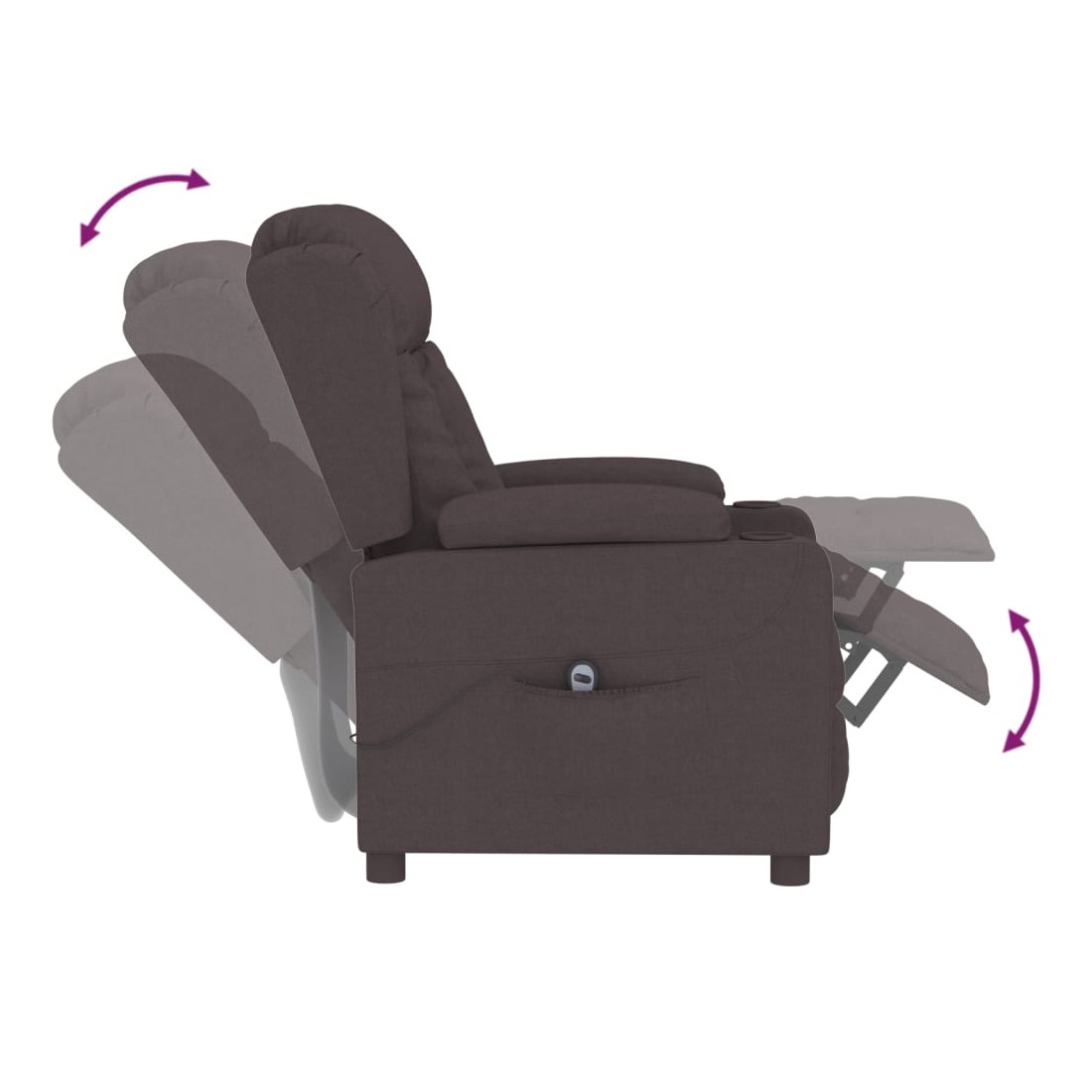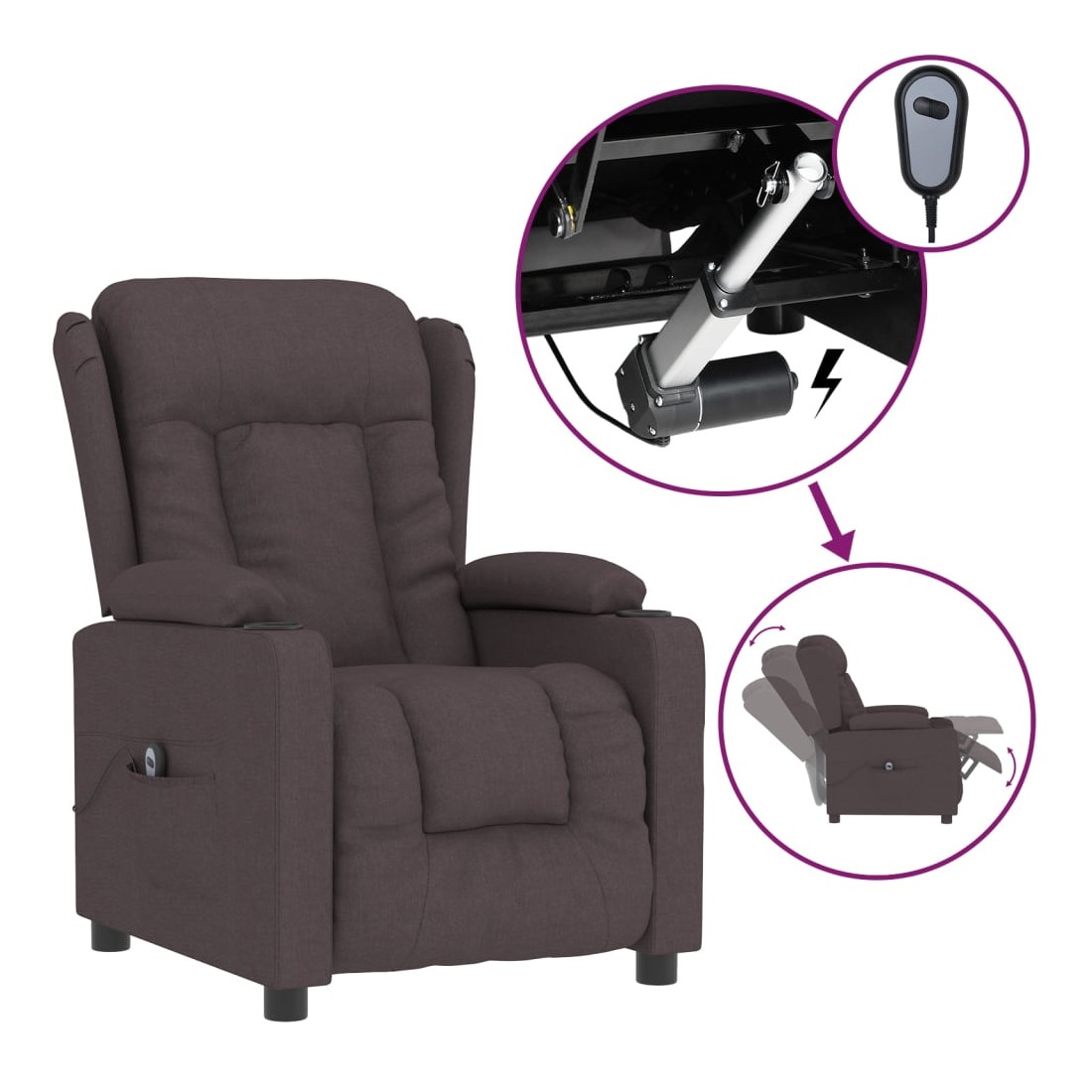 Asseyez-vous et détendez-vous dans ce fauteuil inclinable électrique très confortable ! Fonction d'inclinaison électrique : le fauteuil inclinable est équipé d'un moteur électrique pour la fonction d'inclinaison. Il offre 3 positions d'inclinaison et vous pouvez facilement régler le dossier et le repose-pied à l'aide de la commande manuelle à 2 boutons incluse, en fonction de votre confort.Expérience d'assise confortable : le siège, le dossier et les larges accoudoirs rembourrés épais recouverts de tissu procurent une sensation confortable et chaleureuse, vous permettant de vous sentir enveloppé lorsque vous êtes assis. Le tissu présente un aspect simple et épuré, et est respirant et durable.Cadre solide et stable : le cadre en bois et en métal offre une structure solide et une grande stabilité. Ce fauteuil inclinable est confortable et durable.