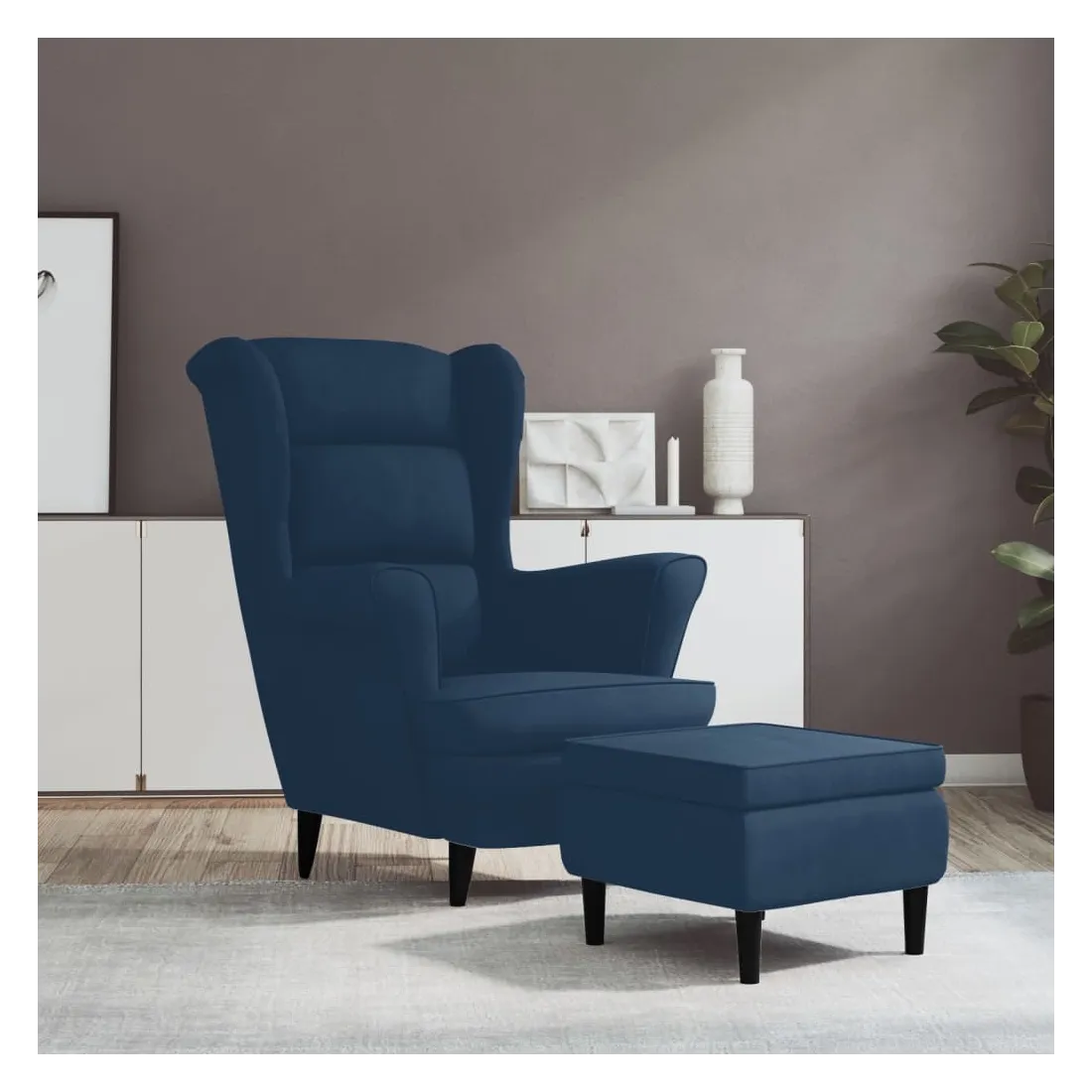 Ce fauteuil confortable avec un tabouret présente un équilibre parfait entre style et fonctionnalité. Il vous offre un endroit confortable pour travailler ou vous reposer. Matériau de qualité : le velours est un tissu doux et luxueux qui se reconnaît à son tas dense de fibres uniformément coupées qui ont une touche lisse. Le tissu en velours présente un toucher doux distinctif, ce qui le rend confortable au toucher.Confort supplémentaire : il est parfait pour vous détendre et reposer vos pieds avec le tabouret inclus. Vous pouvez placer le tabouret n'importe où, selon vos préférences. De plus, les accoudoirs permettent à vos bras de se reposer confortablement.Structure robuste et stable : soutenue par une structure en contreplaqué et des pieds en bois, la chaise de relaxation avec tabouret est solide et stable.