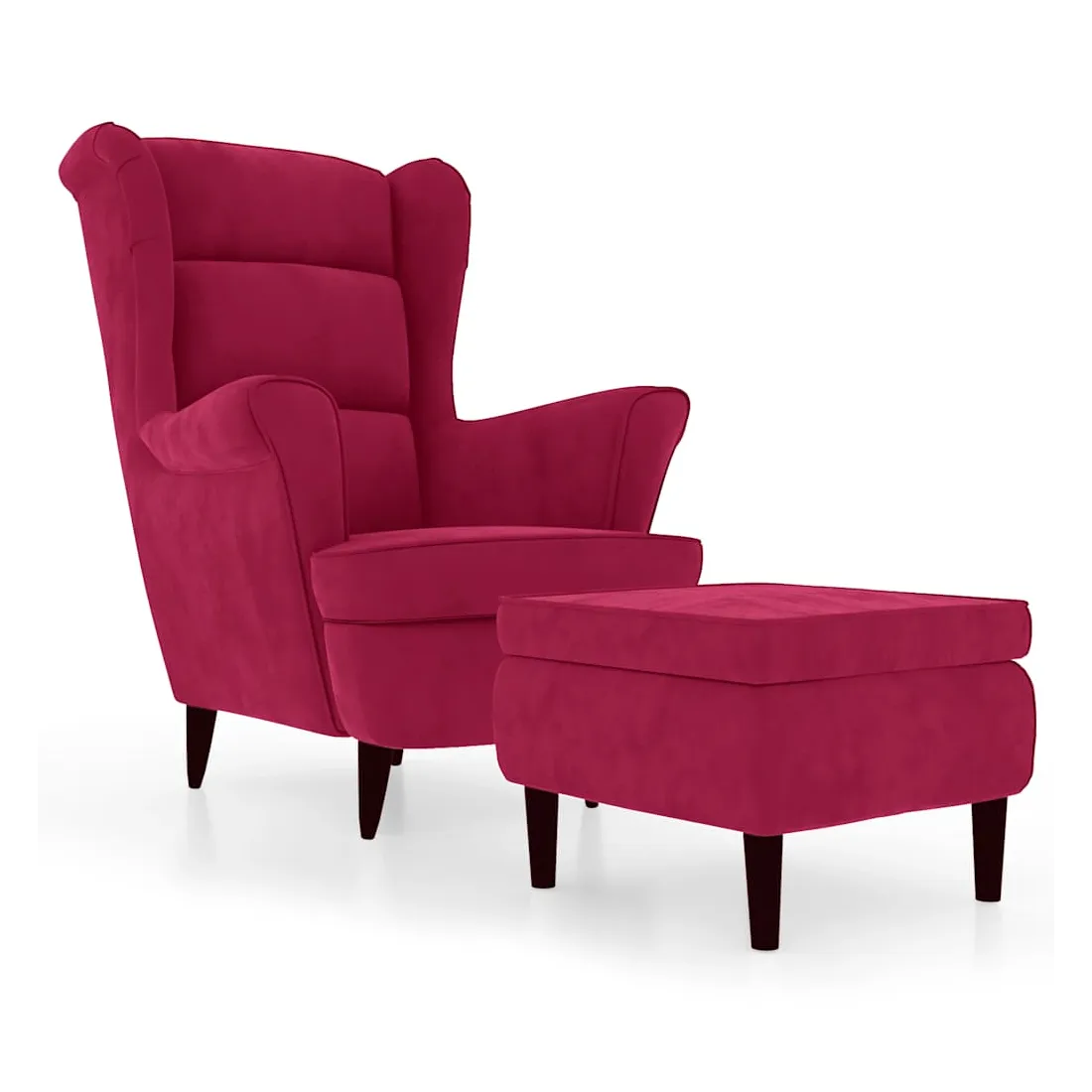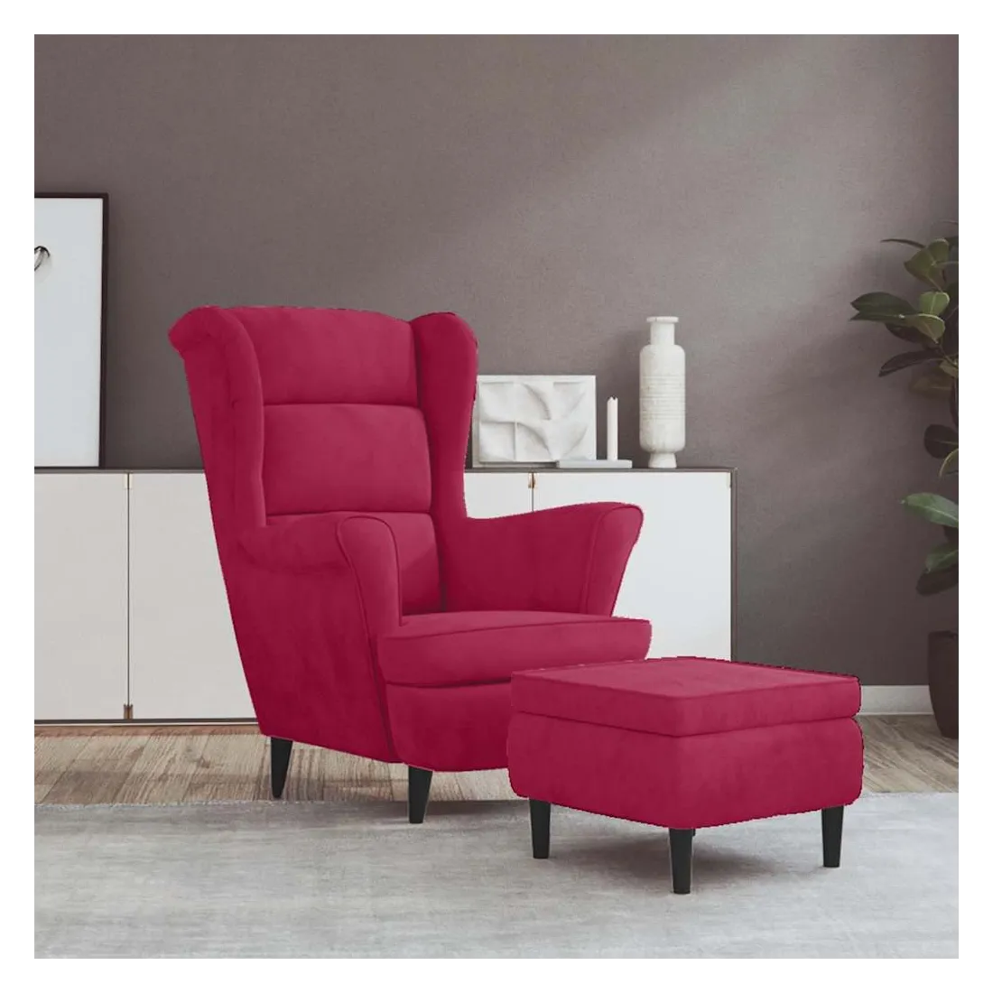 Fauteuil à oreilles avec tabouret bordeaux velours
