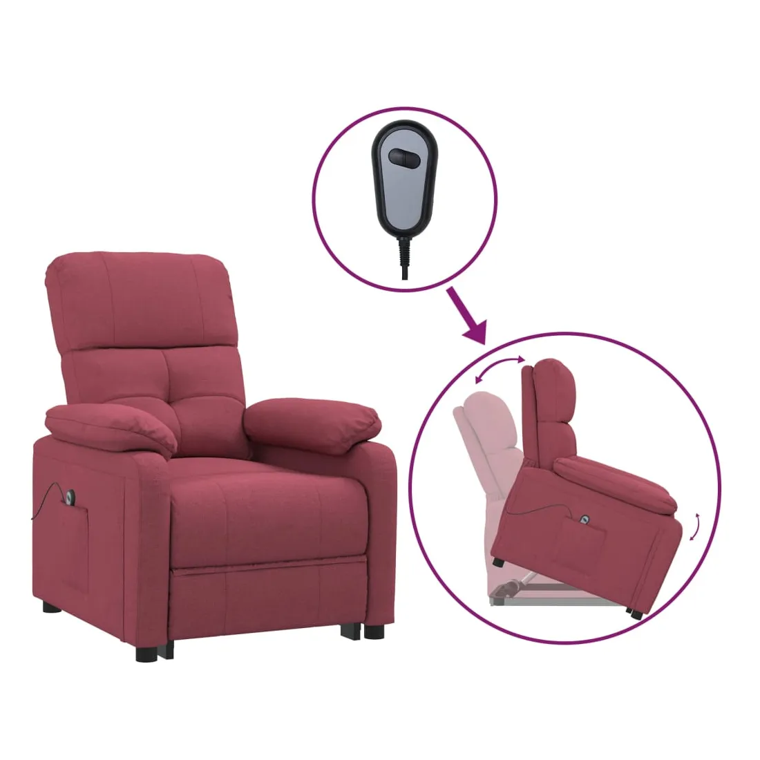 Asseyez-vous et détendez-vous dans ce fauteuil très confortable ! Fonction d'inclinaison manuelle : le fauteuil inclinable est spécialement conçu avec 3 positions d'inclinaison afin que vous puissiez régler manuellement le dossier et le repose-pieds selon votre confort. Fonction de levage électrique : ce fauteuil inclinable pour personnes âgées est équipé d'un moteur électrique pour la fonction de levage. Grâce à la fonction qui pousse toute la chaise vers le haut, vous pouvez facilement vous tenir debout sans stresser votre dos et vos genoux grâce à la commande manuelle à 2 boutons. Expérience d'assise confortable : le siège, le dossier et les larges accoudoirs rembourrés épais recouverts de tissu procurent une sensation confortable et chaleureuse, vous permettant de vous sentir envel