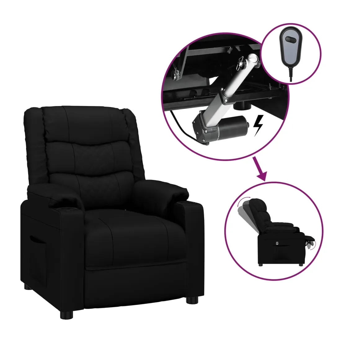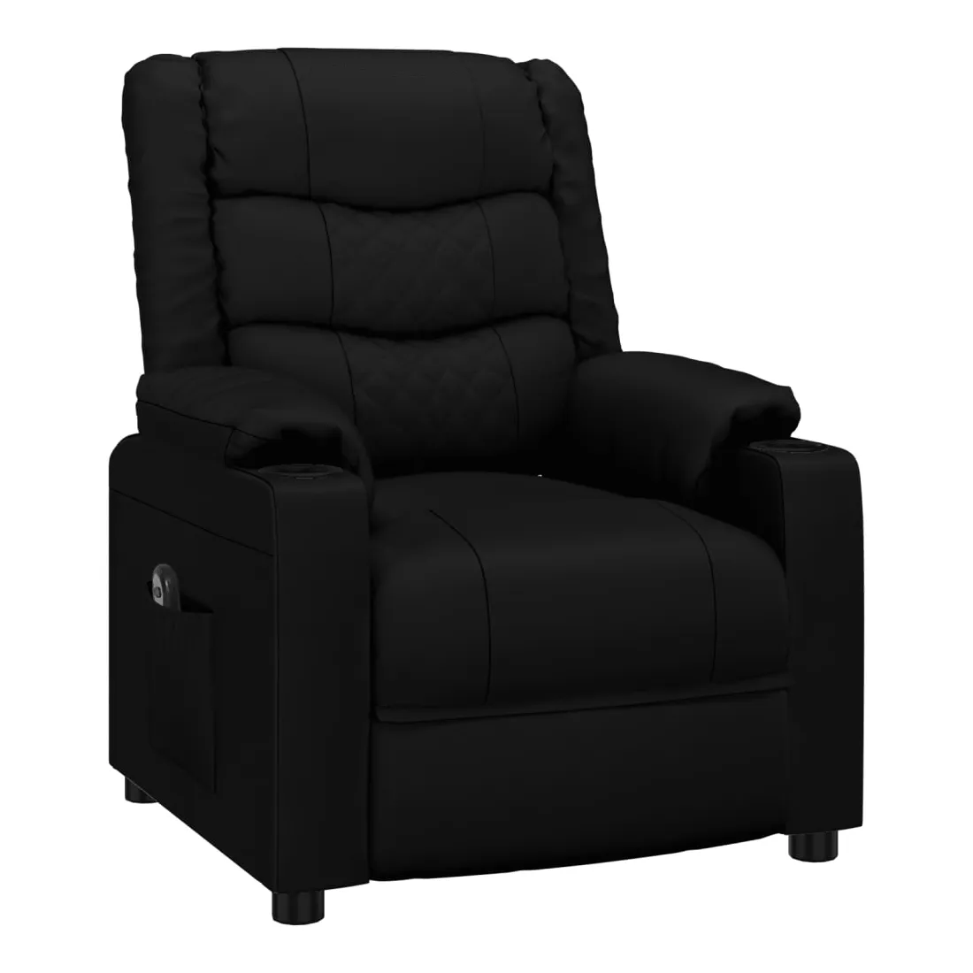 Asseyez-vous et détendez-vous dans ce fauteuil inclinable électrique très confortable ! Fonction d'inclinaison électrique : le fauteuil inclinable est équipé d'un moteur électrique pour la fonction d'inclinaison. Il offre 3 positions d'inclinaison et vous pouvez facilement régler le dossier et le repose-pied à l'aide de la commande manuelle à 2 boutons incluse, en fonction de votre confort.Expérience de siège confortable : le siège, le dossier et les larges accoudoirs rembourrés épais recouverts de similicuir procurent une sensation confortable et chaleureuse, vous faisant vous sentir enlacé lorsque vous êtes assis. Le simili cuir est un matériau très résistant. Il est résistant aux taches, ce qui le rend facile à nettoyer avec un chiffon humide. La surface lisse donne également un aspect luxueux et la beauté du cuir véritable.Cadre solide et stable : le cadre en bois et en métal offre une structure solide et une grande stabilité. Ce fauteuil inclinable est confortable et durable.