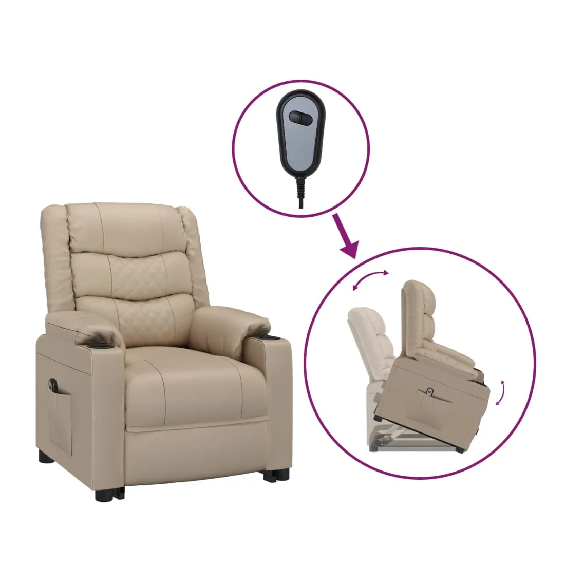 Asseyez-vous et détendez-vous dans ce fauteuil très confortable ! Fonction d'inclinaison manuelle : le fauteuil inclinable est spécialement conçu avec 3 positions d'inclinaison afin que vous puissiez régler manuellement le dossier et le repose-pieds selon votre confort.Fonction de levage électrique : ce fauteuil inclinable pour personnes âgées est équipé d'un moteur électrique pour la fonction de levage. Grâce à la fonction qui pousse toute la chaise vers le haut, vous pouvez facilement vous tenir debout sans stresser votre dos et vos genoux grâce à la commande manuelle à 2 boutons.Expérience de siège confortable : le siège, le dossier et les larges accoudoirs rembourrés épais recouverts de similicuir procurent une sensation confortable et chaleureuse, vous faisant vous sentir enlacé lorsque vous êtes assis. Le simili cuir est un matériau très résistant. Il est résistant aux taches, ce qui le rend facile à nettoyer avec un chiffon humide. La surface lisse donne également un aspect luxueux et la beauté du cuir véritable.Cadre solide et stable : le cadre en bois et en métal offre une structure solide et une grande stabilité. Ce fauteuil inclinable est confortable et durable.