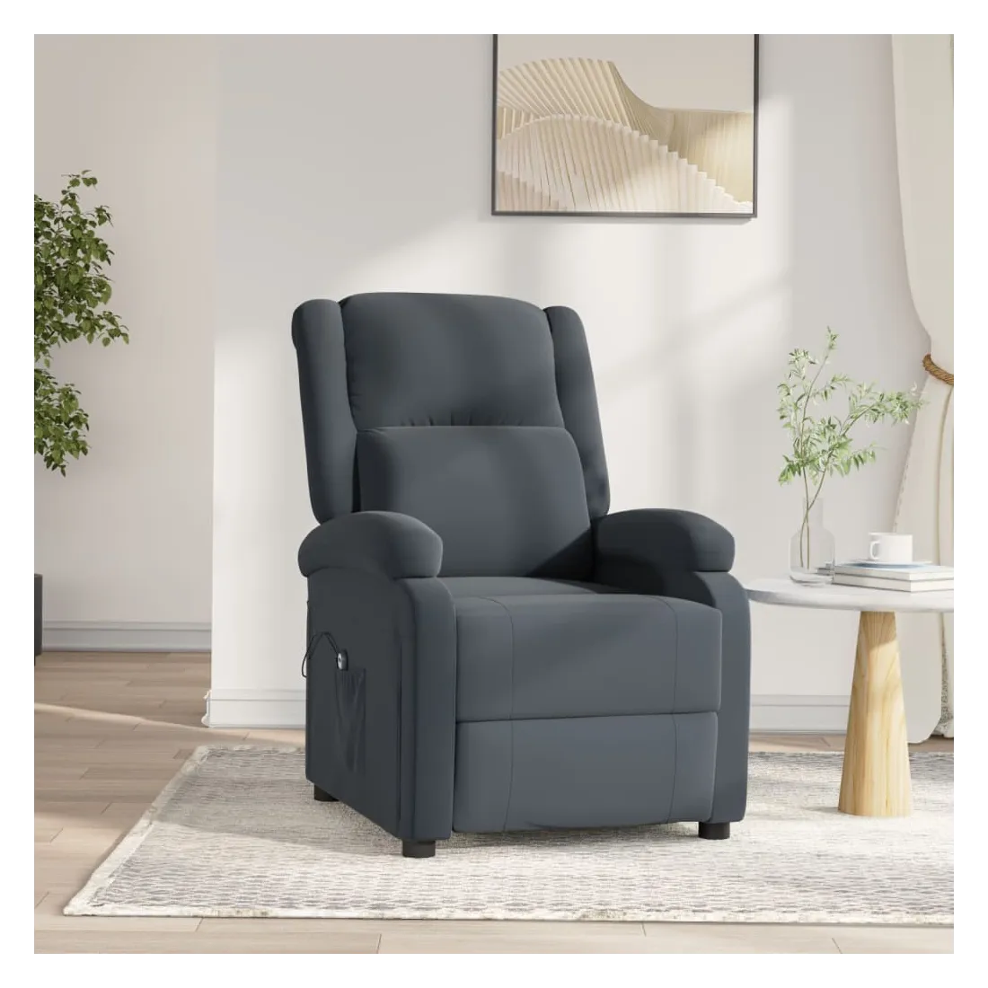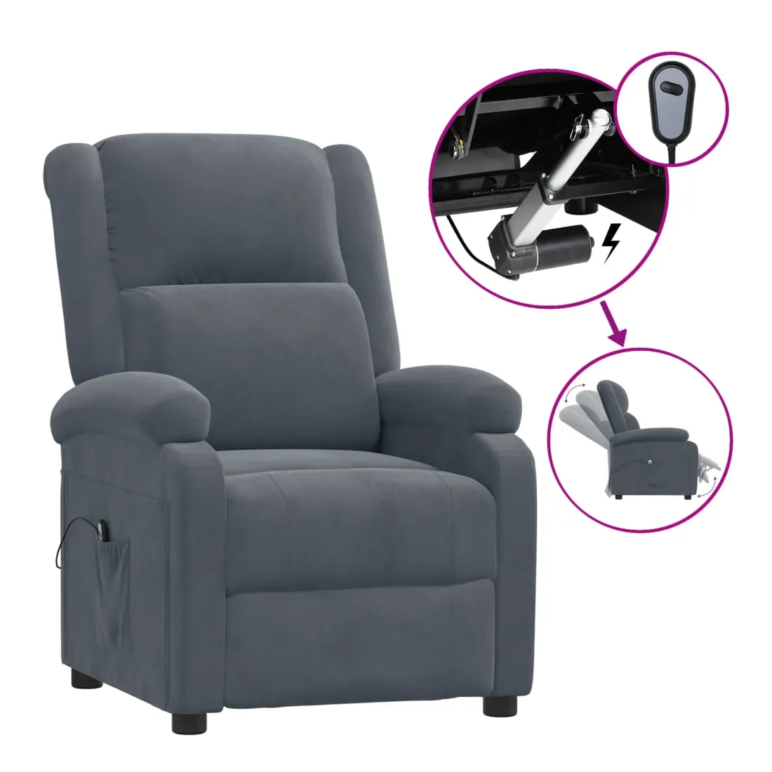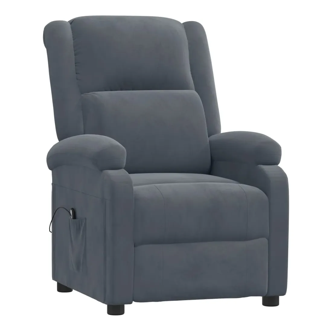 Asseyez-vous et détendez-vous dans ce fauteuil inclinable électrique très confortable ! Fonction d'inclinaison électrique : le fauteuil inclinable est équipé d'un moteur électrique pour la fonction d'inclinaison. Il offre 3 positions d'inclinaison et vous pouvez facilement régler le dossier et le repose-pied à l'aide de la commande manuelle à 2 boutons incluse, en fonction de votre confort.Expérience d'assise confortable : le siège, le dossier et les larges accoudoirs rembourrés épais recouverts de velours procurent une sensation confortable et chaleureuse, vous faisant vous sentir enlacé lorsque vous êtes assis. Le velours est un tissu doux et confortable qui est agréable sur la peau.Cadre solide et stable : le cadre en bois et en métal offre une structure solide et une grande stabilité. Ce fauteuil inclinable est confortable et durable.