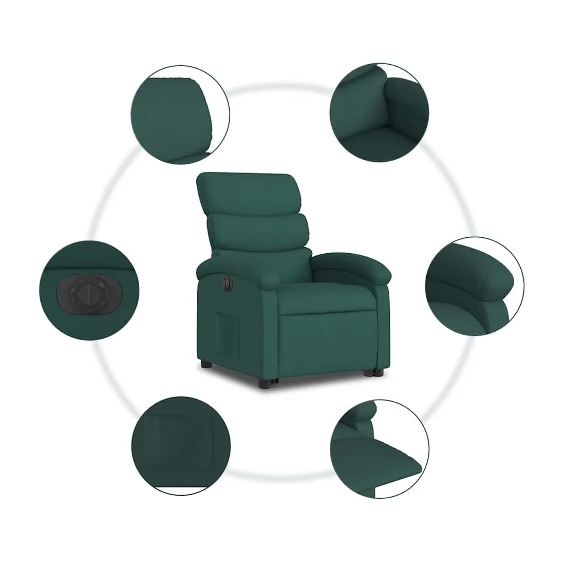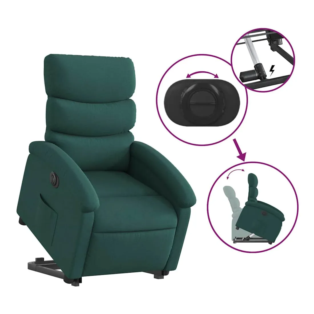 Asseyez-vous et détendez-vous dans ce fauteuil inclinable électrique très confortable ! Fonction de levage électrique : ce fauteuil inclinable pour personnes âgées est équipé d'un moteur électrique pour la fonction de levage. Grâce à la fonction qui pousse toute la chaise vers le haut, vous pouvez facilement vous tenir debout sans stresser votre dos et vos genoux en appuyant simplement sur le bouton.Fonction d'inclinaison électrique : ce fauteuil inclinable est également équipé d'un moteur électrique qui permet de régler automatiquement le repose-pied et le dossier dans n'importe quelle position, selon votre confort, en appuyant simplement sur le bouton situé sur le côté du fauteuil. Cette fonction permet une inclinaison maximale de 135 degrés. En outre, le dossier peut revenir automatiquement à sa position d'origine par une simple pression sur le bouton.Expérience d'assise confortable : le siège, le dossier et les larges accoudoirs bien rembourrés recouverts de tissu procurent une sensation confortable et chaleureuse, vous permettant de vous sentir enveloppé lorsque vous êtes assis. Le tissu présente un aspect simple et épuré et est respirant et durable.Poche latérale pratique : ce fauteuil est doté d'une poche latérale pour vous permettre de garder vos objets essentiels à portée de main.Cadre solide et stable : le cadre en bois et en métal offre une structure solide et une grande stabilité. Ce fauteuil inclinable est confortable et durable.