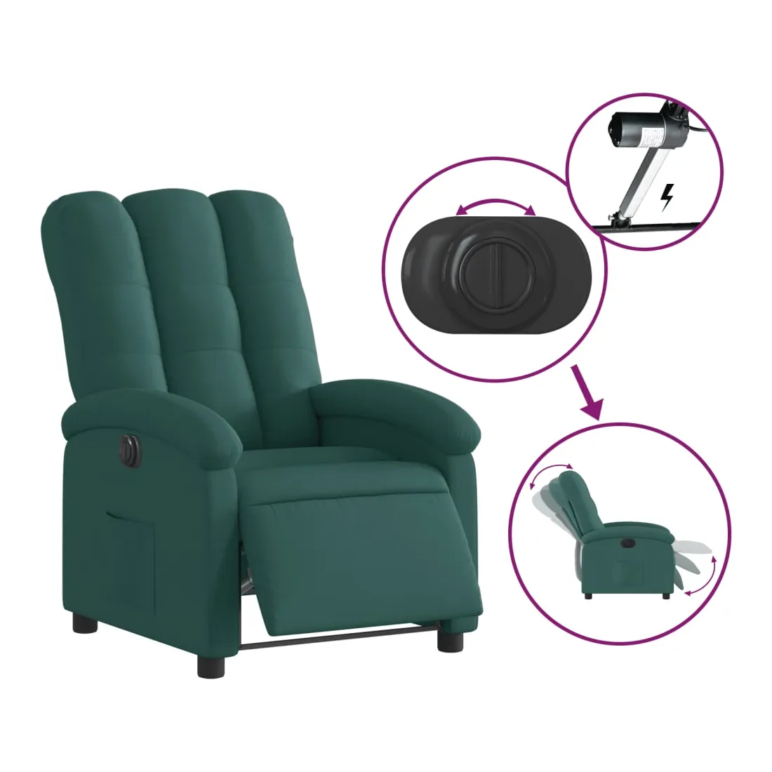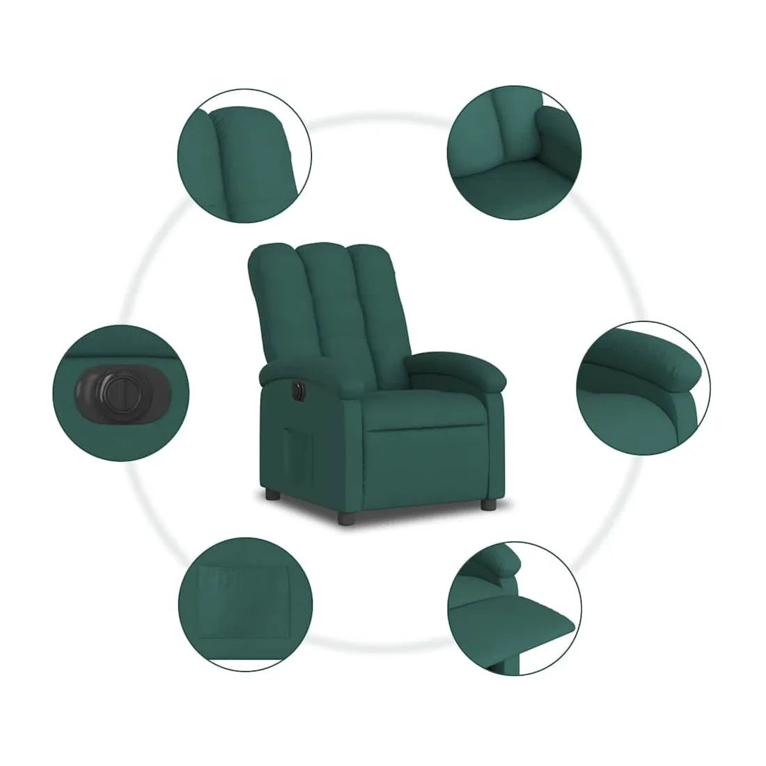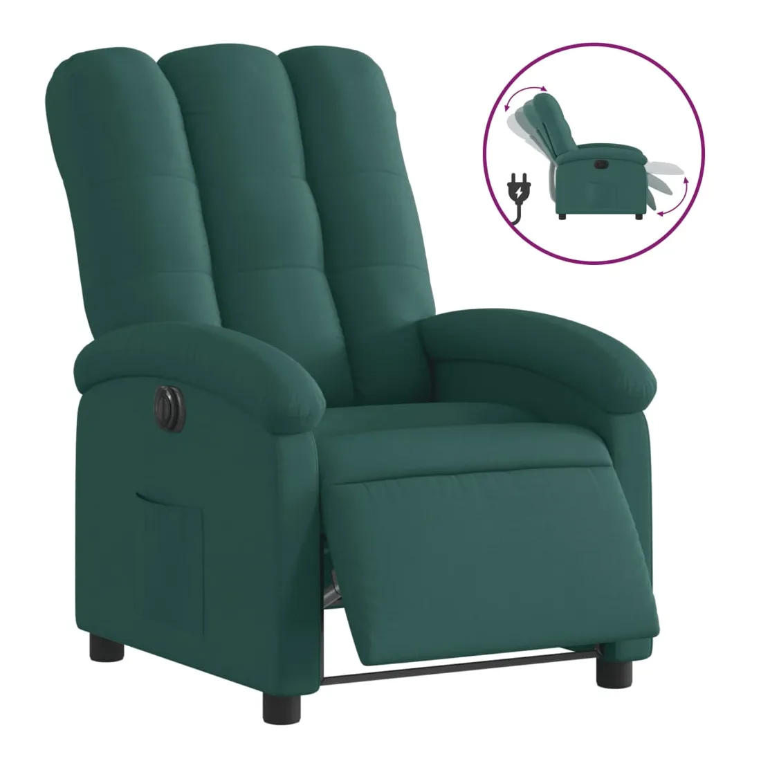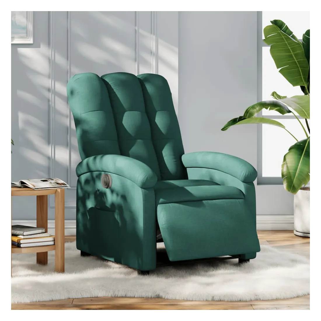 Asseyez-vous et détendez-vous dans ce fauteuil inclinable électrique très confortable ! Fonction d'inclinaison électrique : ce fauteuil inclinable est équipé d'un moteur électrique qui permet de régler automatiquement le repose-pied et le dossier dans n'importe quelle position, selon votre confort, en appuyant simplement sur le bouton situé sur le côté du fauteuil. Cette fonction permet une inclinaison maximale de 135 degrés. En outre, le dossier peut revenir automatiquement à sa position d'origine par une simple pression sur le bouton.Expérience d'assise confortable : le siège, le dossier et les larges accoudoirs bien rembourrés recouverts de tissu procurent une sensation confortable et chaleureuse, vous permettant de vous sentir enveloppé lorsque vous êtes assis. Le tissu présente un aspect simple et épuré et est respirant et durable.Poche latérale pratique : ce fauteuil est doté d'une poche latérale pour vous permettre de garder vos objets essentiels à portée de main.Cadre solide et stable : le cadre en bois et en métal offre une structure solide et une grande stabilité. Ce fauteuil inclinable est confortable et durable.