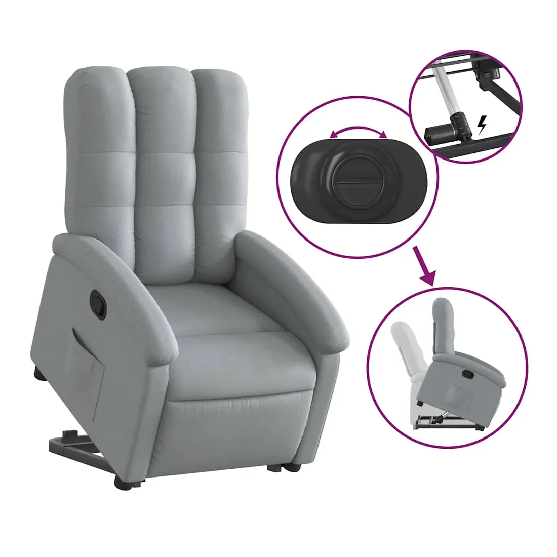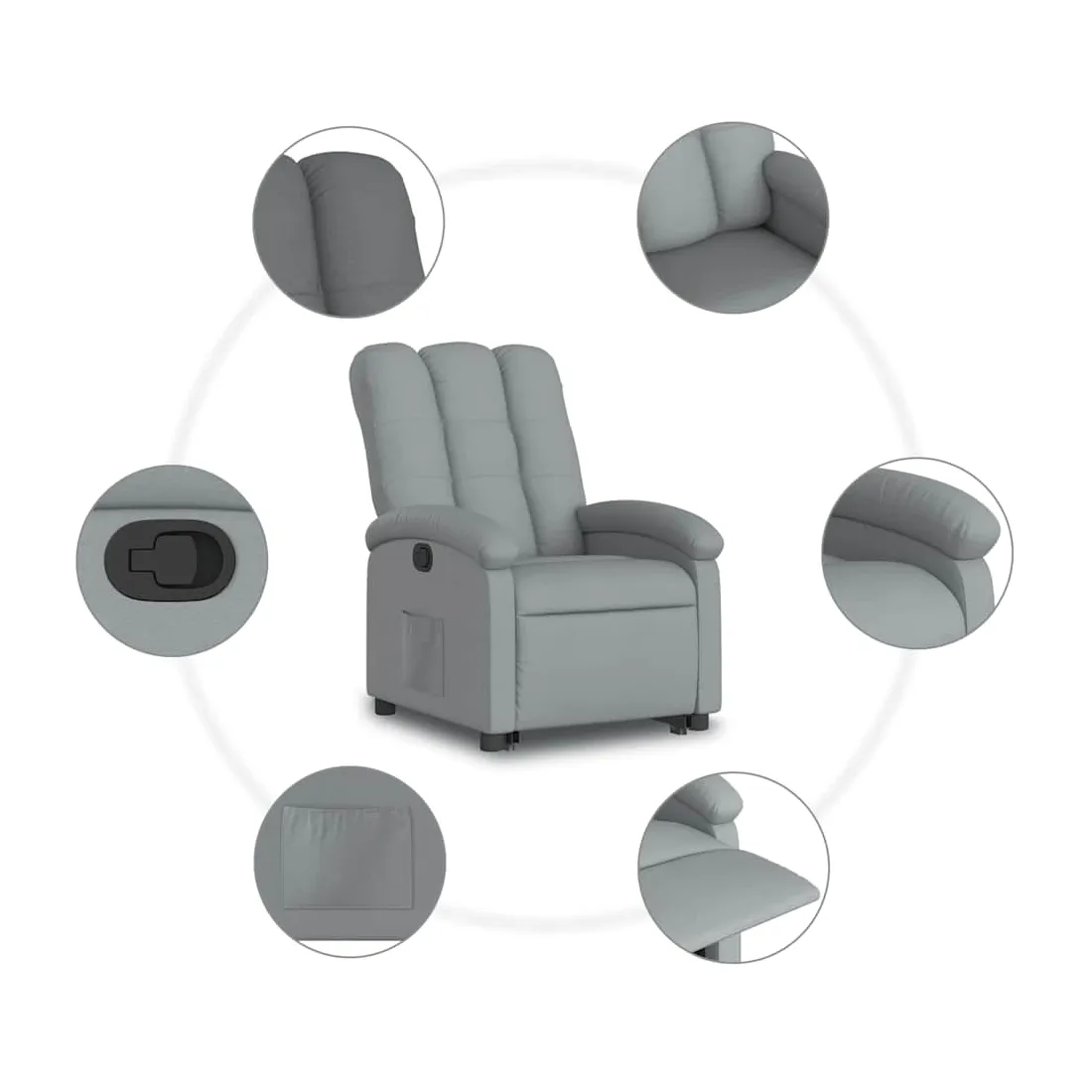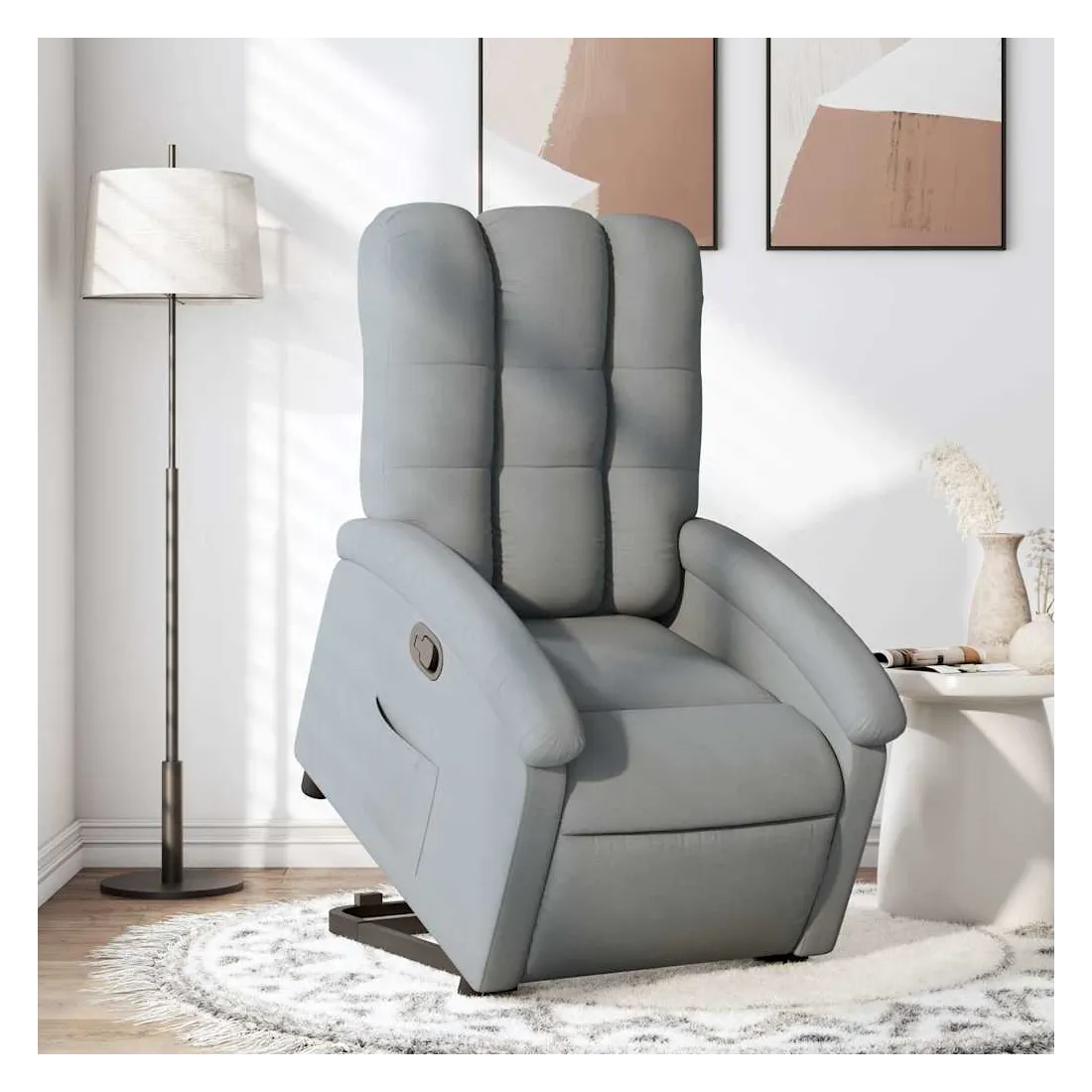 Asseyez-vous et détendez-vous dans ce fauteuil inclinable très confortable ! Fonction de levage électrique : ce fauteuil inclinable pour personnes âgées est équipé d'un moteur électrique pour la fonction de levage. Grâce à la fonction qui pousse toute la chaise vers le haut, vous pouvez facilement vous tenir debout sans stresser votre dos et vos genoux en appuyant simplement sur le bouton.Fonction d'inclinaison manuelle : ce fauteuil inclinable est doté d'une poignée du côté droit. Vous pouvez régler manuellement le repose-pieds et le dossier dans n'importe quelle position selon votre confort en tirant simplement sur la poignée. Cette fonction permet une inclinaison maximale de 135 degrés. De plus, le dossier peut revenir rapidement à sa position d'origine en tirant simplement sur la poignée.Expérience d'assise confortable : le siège, le dossier et les larges accoudoirs bien rembourrés recouverts de tissu procurent une sensation confortable et chaleureuse, vous permettant de vous sentir enveloppé lorsque vous êtes assis. Le tissu présente un aspect simple et épuré et est respirant et durable.Poche latérale pratique : ce fauteuil est doté d'une poche latérale pour vous permettre de garder vos objets essentiels à portée de main.Cadre solide et stable : le cadre en bois et en métal offre une structure solide et une grande stabilité. Ce fauteuil inclinable est confortable et durable.