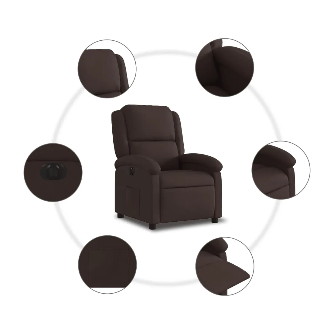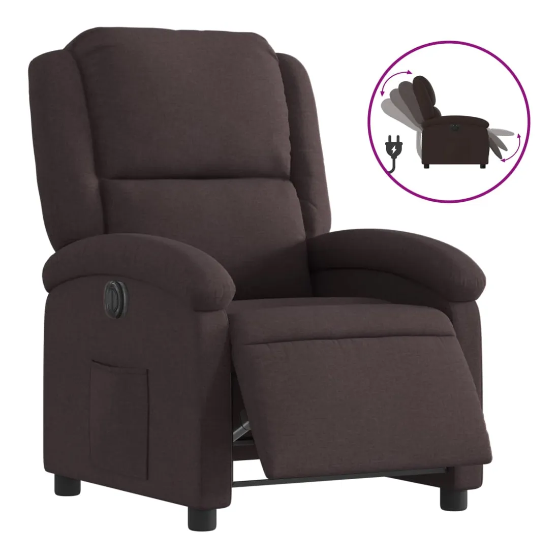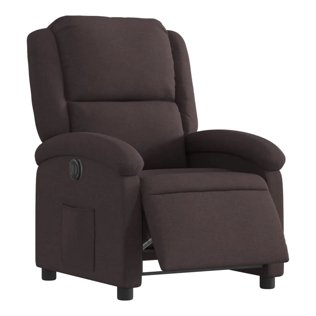 Asseyez-vous et détendez-vous dans ce fauteuil inclinable électrique très confortable ! Fonction d'inclinaison électrique : ce fauteuil inclinable est équipé d'un moteur électrique qui permet de régler automatiquement le repose-pied et le dossier dans n'importe quelle position, selon votre confort, en appuyant simplement sur le bouton situé sur le côté du fauteuil. Cette fonction permet une inclinaison maximale de 135 degrés. En outre, le dossier peut revenir automatiquement à sa position d'origine par une simple pression sur le bouton.Expérience d'assise confortable : le siège, le dossier et les larges accoudoirs bien rembourrés recouverts de tissu procurent une sensation confortable et chaleureuse, vous permettant de vous sentir enveloppé lorsque vous êtes assis. Le tissu présente un aspect simple et épuré et est respirant et durable.Poche latérale pratique : ce fauteuil est doté d'une poche latérale pour vous permettre de garder vos objets essentiels à portée de main.Cadre solide et stable : le cadre en bois et en métal offre une structure solide et une grande stabilité. Ce fauteuil inclinable est confortable et durable.