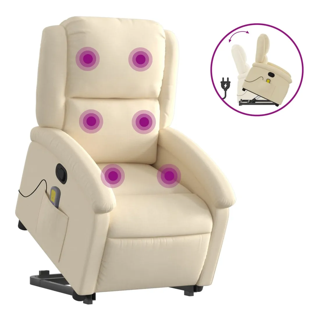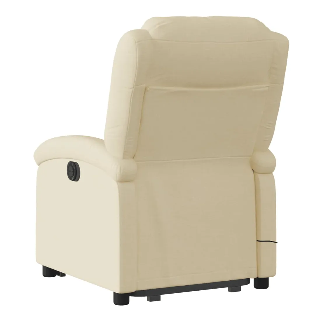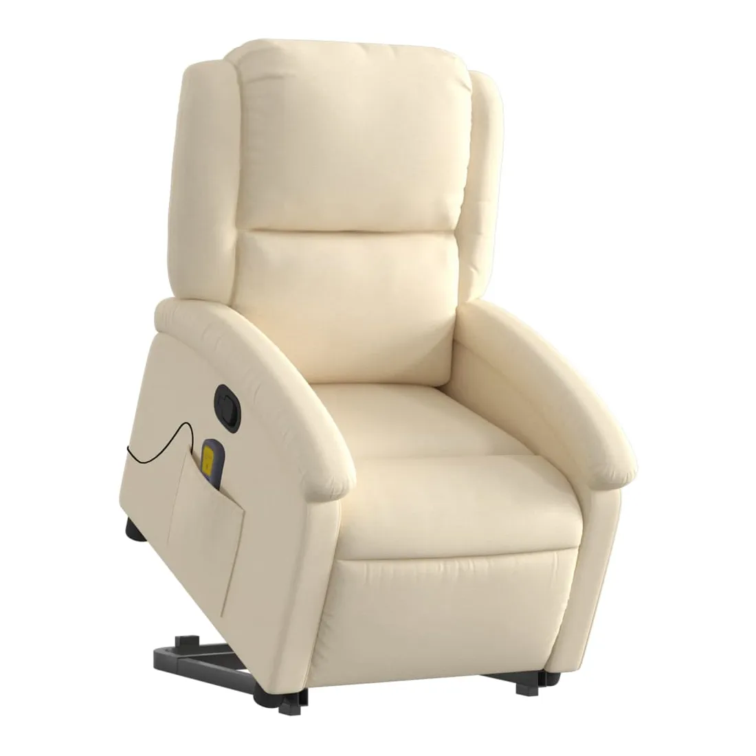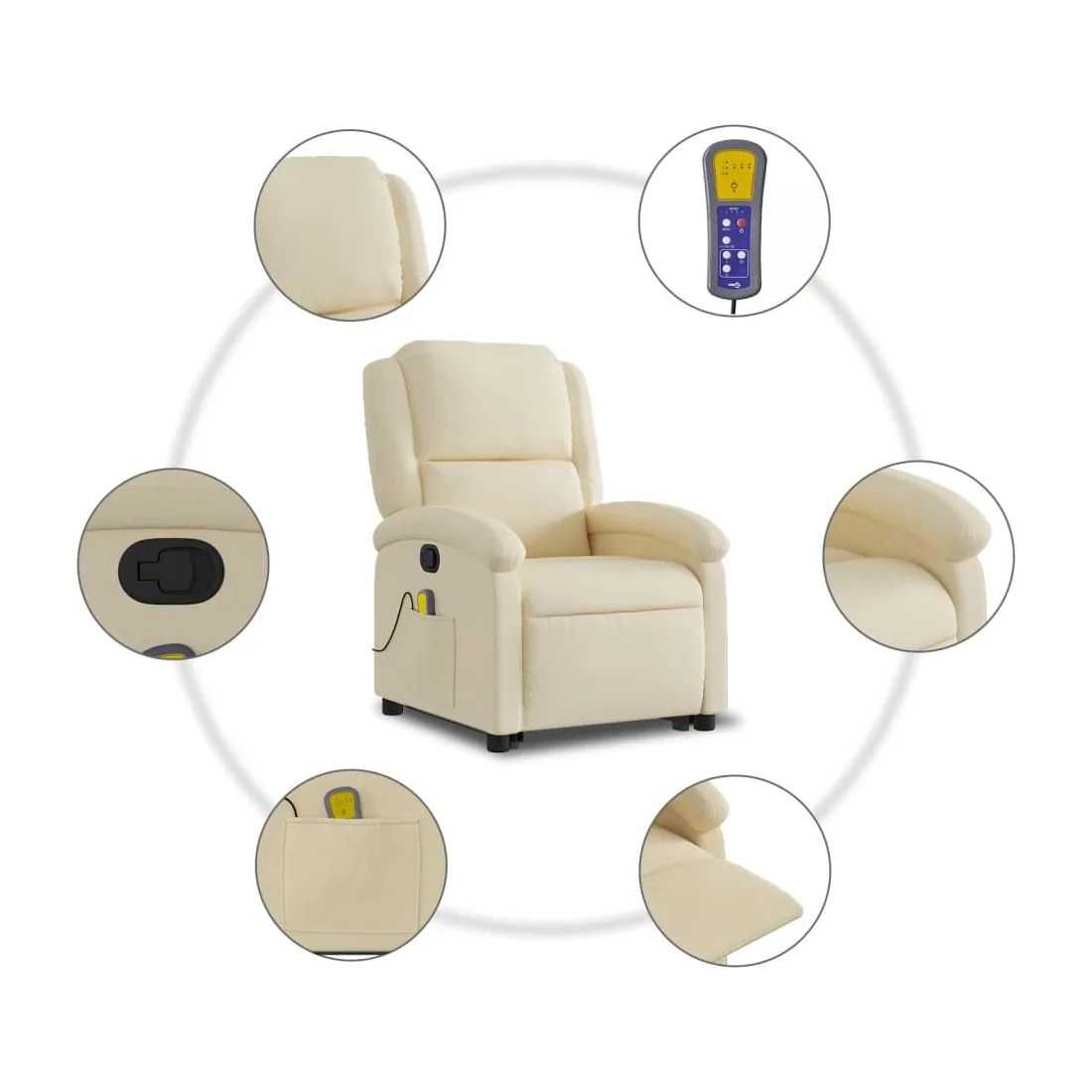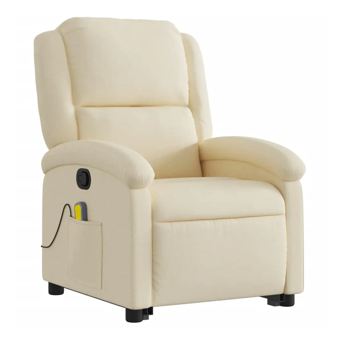 Asseyez-vous et détendez-vous dans ce fauteuil inclinable de massage très confortable ! Fonction de levage électrique : ce fauteuil inclinable pour personnes âgées est équipé d'un moteur électrique pour la fonction de levage. Grâce à la fonction qui pousse toute la chaise vers le haut, vous pouvez facilement vous tenir debout sans stresser votre dos et vos genoux en appuyant simplement sur le bouton.Fonction d'inclinaison manuelle : ce fauteuil inclinable est doté d'une poignée du côté droit. Vous pouvez régler manuellement le repose-pieds et le dossier dans n'importe quelle position selon votre confort en tirant simplement sur la poignée. Cette fonction permet une inclinaison maximale de 135 degrés. De plus, le dossier peut revenir rapidement à sa position d'origine en tirant simplement sur la poignée.Fonction de vibration : les 6 points de massage vous permettent de faire l'expérience d'un massage mieux ciblé. De plus, la télécommande incluse vous permet de choisir différents programmes de massage. La fonction de massage est alimentée par le connecteur USB qui nécessite une source d'alimentation USB certifiée de 5 V (non fournie).Expérience d'assise confortable : le siège, le dossier et les larges accoudoirs bien rembourrés recouverts de tissu procurent une sensation confortable et chaleureuse, vous permettant de vous sentir enveloppé lorsque vous êtes assis. Le tissu présente un aspect simple et épuré et est respirant et durable.Poche latérale pratique : ce fauteuil est doté d'une poche latérale pour ranger votre télécommande ou garder vos objets essentiels à portée de main.Cadre solide et stable : le cadre en bois et en métal offre une structure solide et une grande stabilité. Ce fauteuil inclinable est confortable et durable.