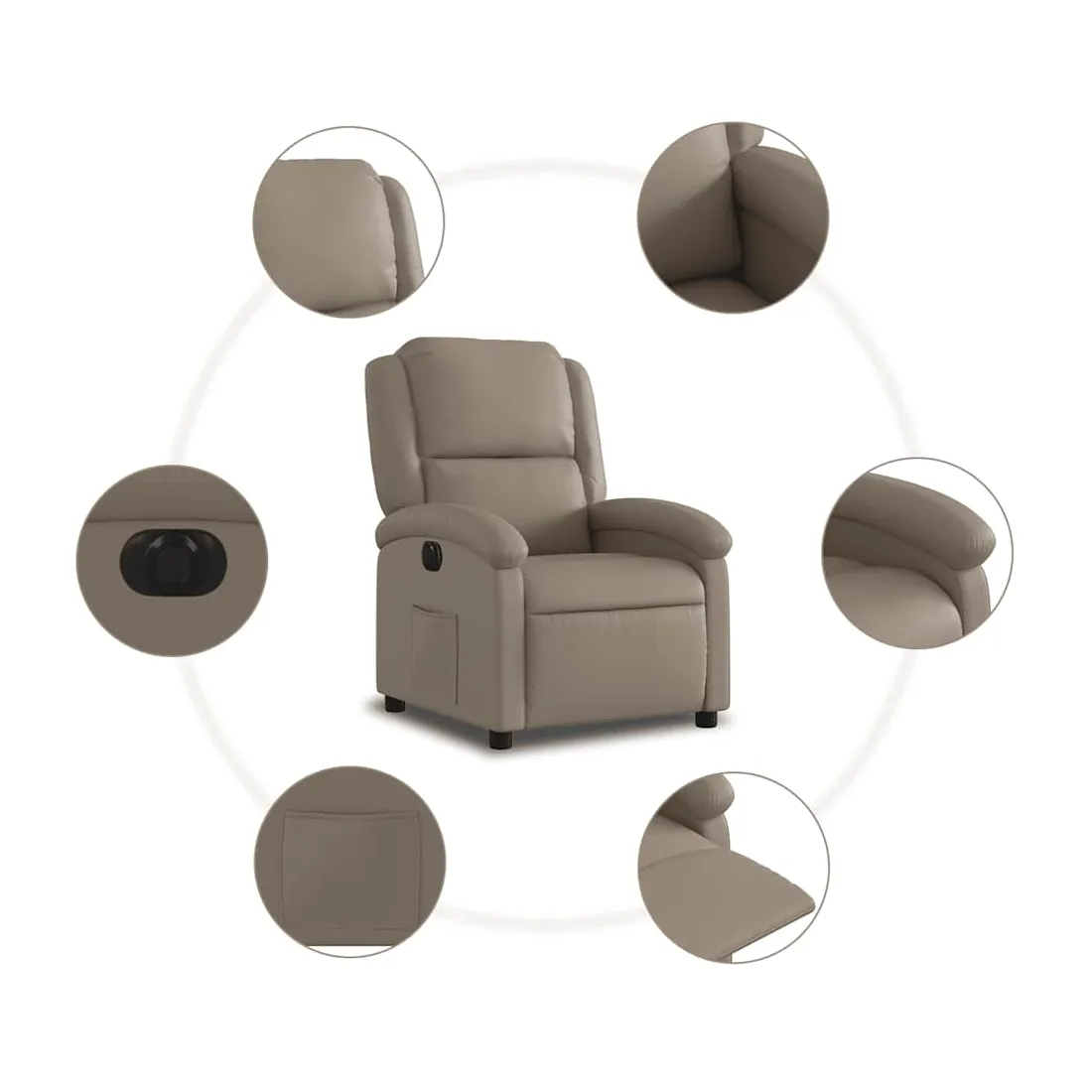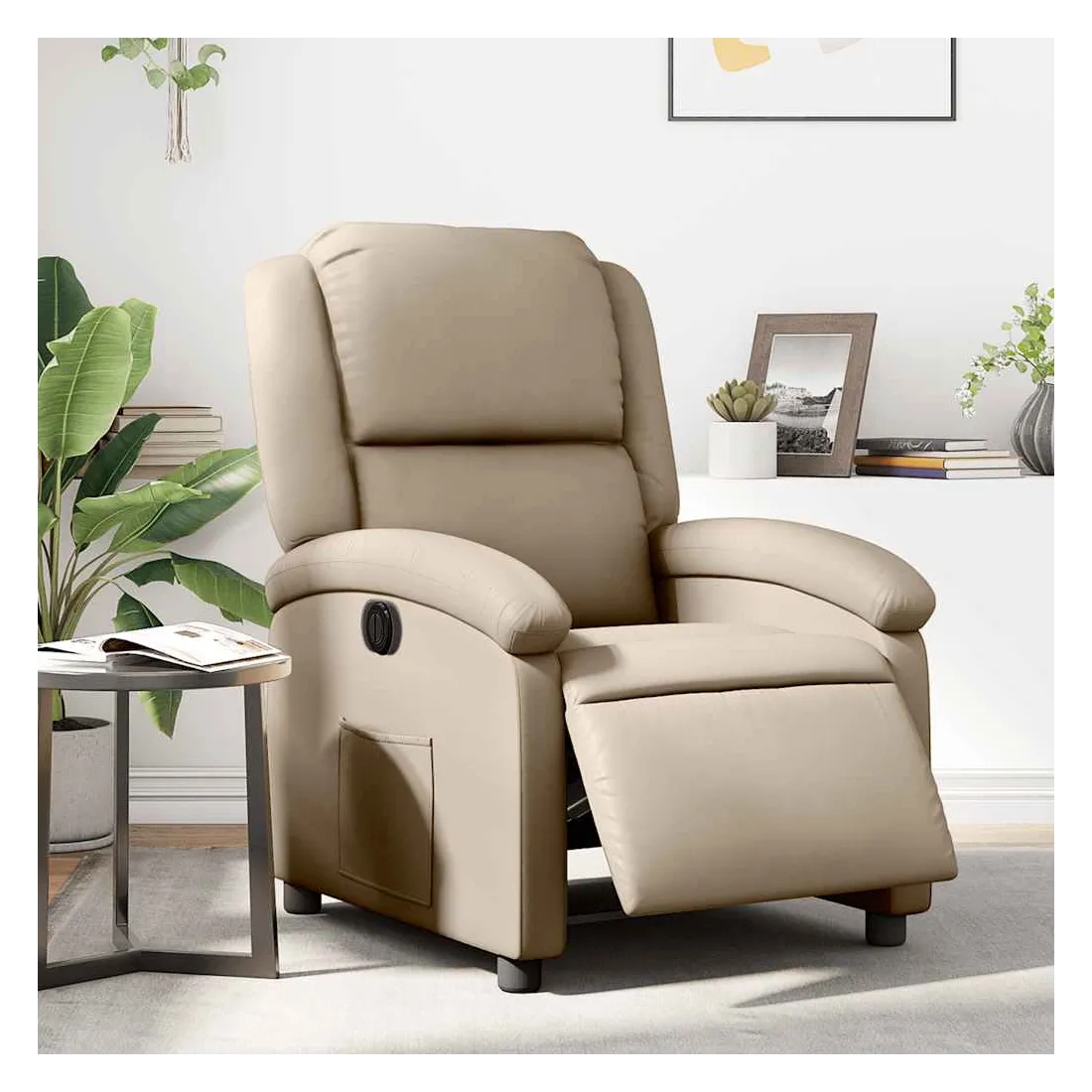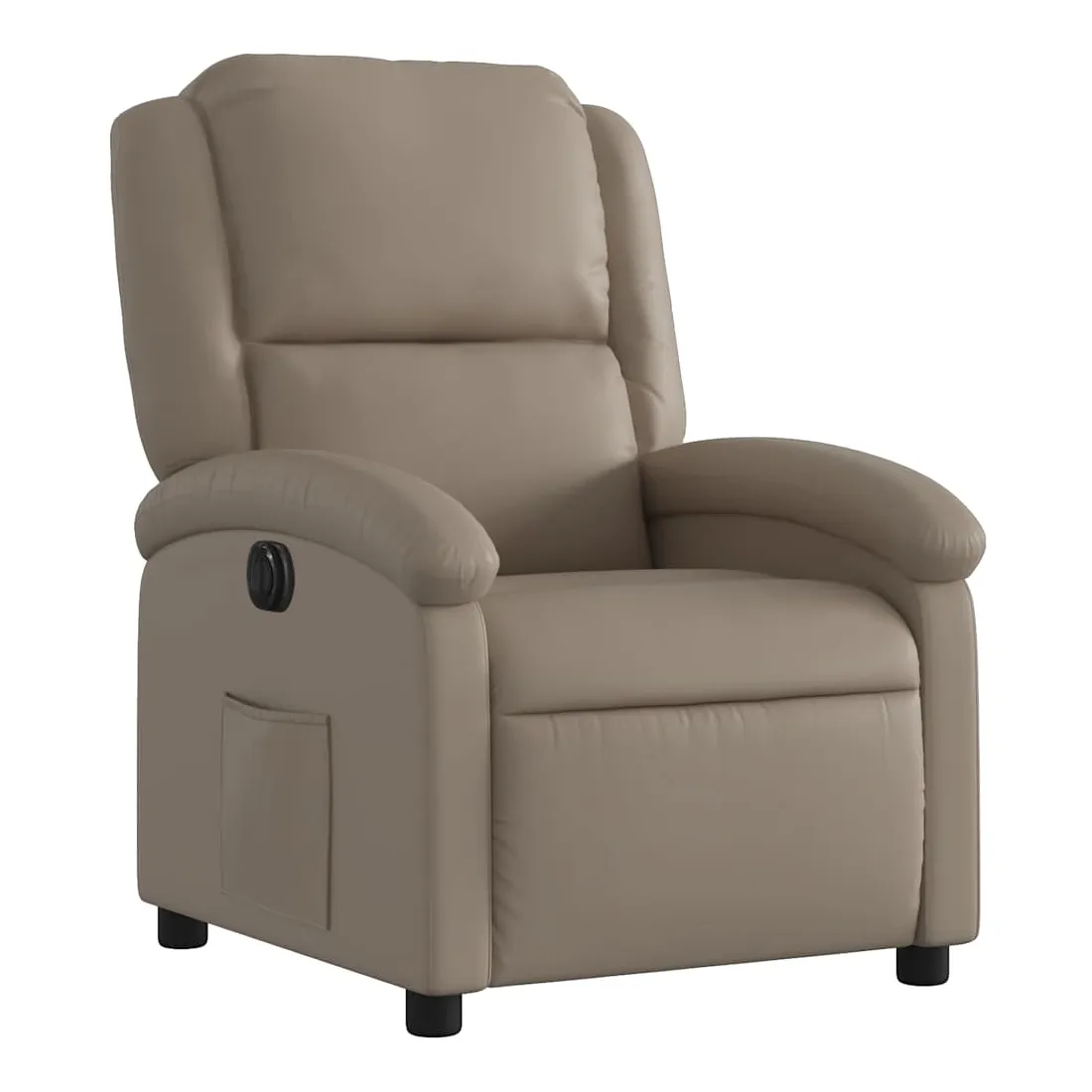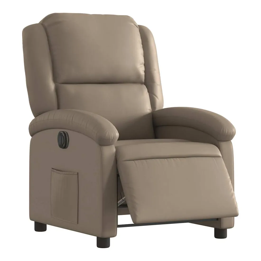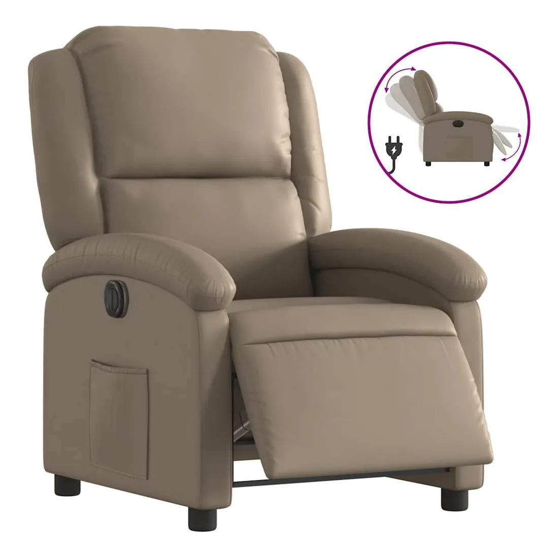 Asseyez-vous et détendez-vous dans ce fauteuil inclinable électrique très confortable ! Fonction d'inclinaison électrique : ce fauteuil inclinable est équipé d'un moteur électrique qui permet de régler automatiquement le repose-pied et le dossier dans n'importe quelle position, selon votre confort, en appuyant simplement sur le bouton situé sur le côté du fauteuil. Cette fonction permet une inclinaison maximale de 135 degrés. En outre, le dossier peut revenir automatiquement à sa position d'origine par une simple pression sur le bouton.Expérience de siège confortable : le siège, le dossier et les larges accoudoirs rembourrés épais recouverts de similicuir procurent une sensation confortable, vous faisant vous sentir enlacé lorsque vous êtes assis. Le similicuir est un matériau très résistant. Il est résistant aux taches, ce qui le rend facile à nettoyer avec un chiffon humide. La surface lisse donne également un aspect luxueux et la beauté du cuir véritable.Poche latérale pratique : ce fauteuil est doté d'une poche latérale pour vous permettre de garder vos objets essentiels à portée de main.Cadre solide et stable : le cadre en bois et en métal offre une structure solide et une grande stabilité. Ce fauteuil inclinable est confortable et durable.