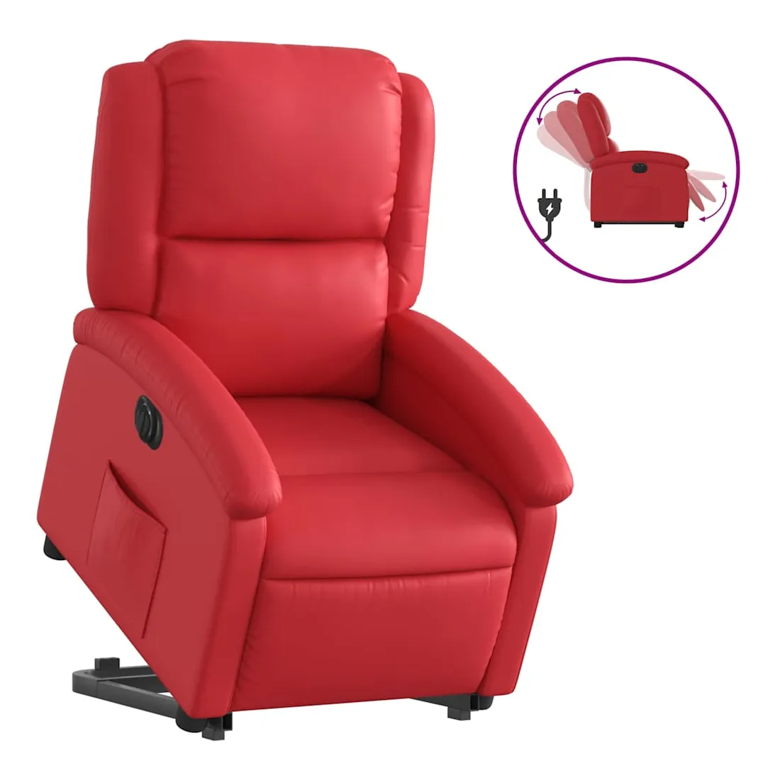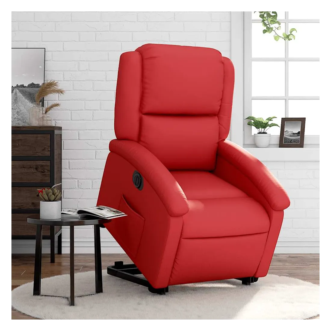 Asseyez-vous et détendez-vous dans ce fauteuil inclinable électrique très confortable ! Fonction de levage électrique : ce fauteuil inclinable pour personnes âgées est équipé d'un moteur électrique pour la fonction de levage. Grâce à la fonction qui pousse toute la chaise vers le haut, vous pouvez facilement vous tenir debout sans stresser votre dos et vos genoux en appuyant simplement sur le bouton.Fonction d'inclinaison électrique : ce fauteuil inclinable est également équipé d'un moteur électrique qui permet de régler automatiquement le repose-pied et le dossier dans n'importe quelle position, selon votre confort, en appuyant simplement sur le bouton situé sur le côté du fauteuil. Cette fonction permet une inclinaison maximale de 135 degrés. En outre, le dossier peut revenir automatiquement à sa position d'origine par une simple pression sur le bouton.Expérience de siège confortable : le siège, le dossier et les larges accoudoirs rembourrés épais recouverts de similicuir procurent une sensation confortable, vous faisant vous sentir enlacé lorsque vous êtes assis. Le similicuir est un matériau très résistant. Il est résistant aux taches, ce qui le rend facile à nettoyer avec un chiffon humide. La surface lisse donne également un aspect luxueux et la beauté du cuir véritable.Poche latérale pratique : ce fauteuil est doté d'une poche latérale pour vous permettre de garder vos objets essentiels à portée de main.Cadre solide et stable : le cadre en bois et en métal offre une structure solide et une grande stabilité. Ce fauteuil inclinable est confortable et durable.