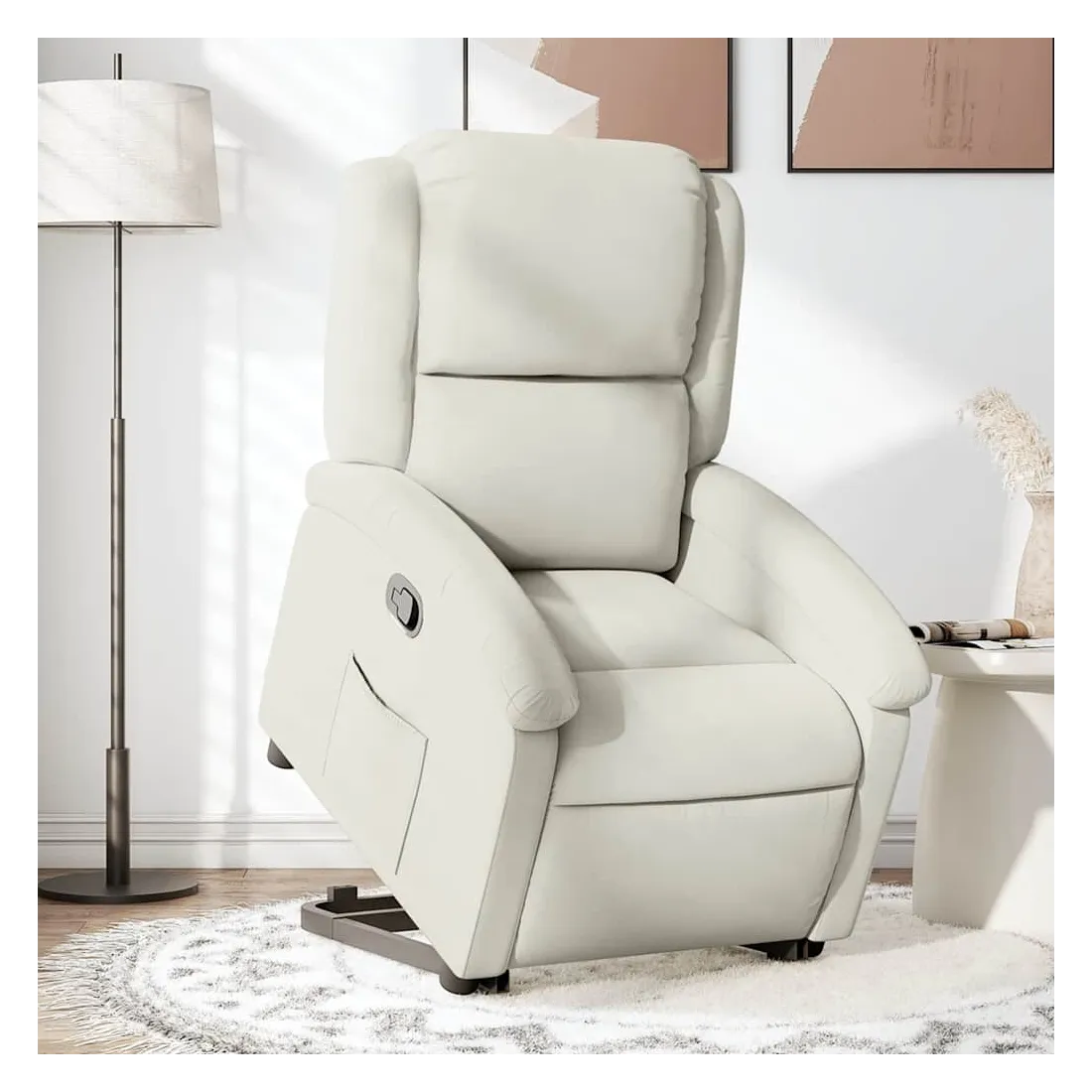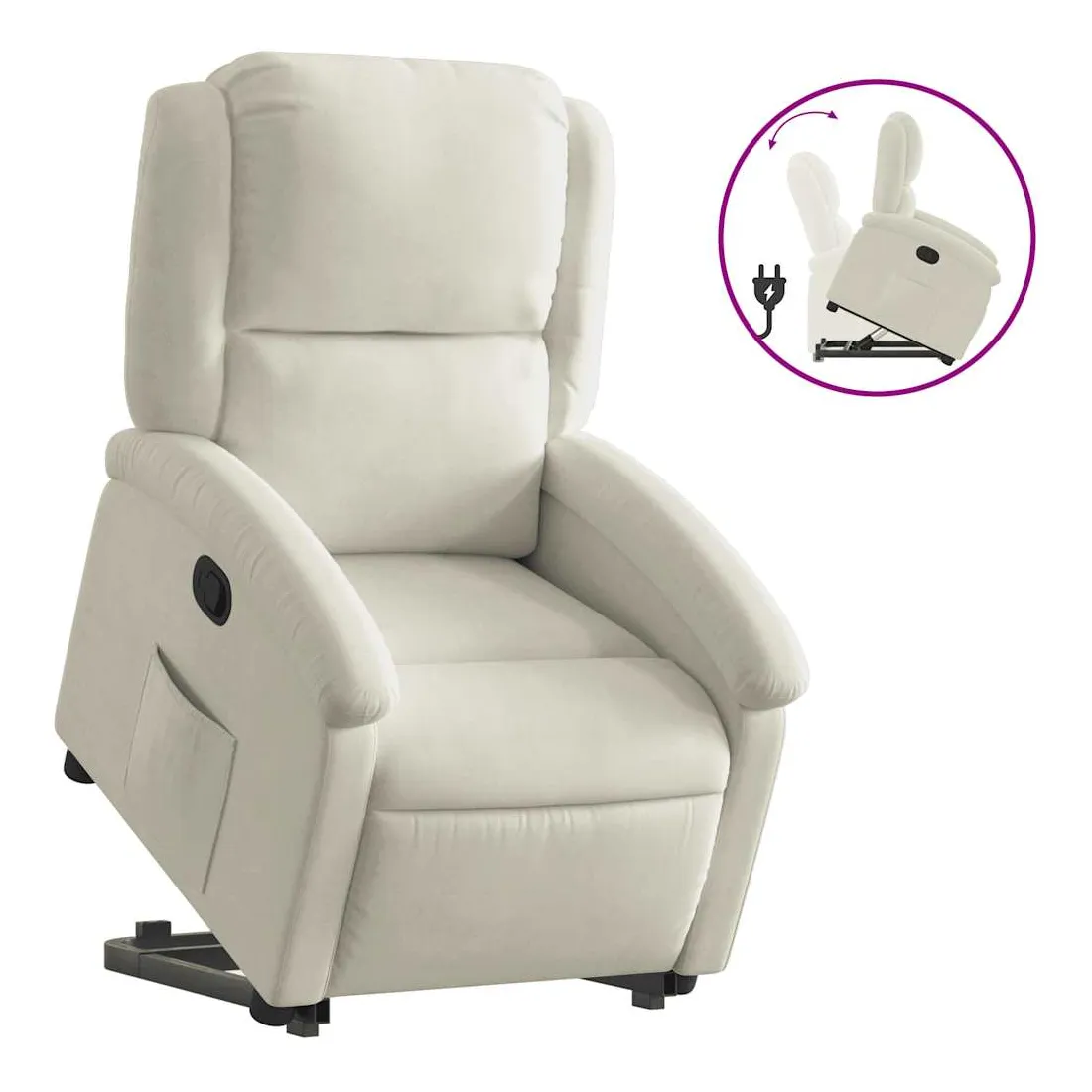 Asseyez-vous et détendez-vous dans ce fauteuil inclinable très confortable ! Fonction de levage électrique : ce fauteuil inclinable pour personnes âgées est équipé d'un moteur électrique pour la fonction de levage. Grâce à la fonction qui pousse toute la chaise vers le haut, vous pouvez facilement vous tenir debout sans stresser votre dos et vos genoux en appuyant simplement sur le bouton.Fonction d'inclinaison manuelle : ce fauteuil inclinable est doté d'une poignée du côté droit. Vous pouvez régler manuellement le repose-pieds et le dossier dans n'importe quelle position selon votre confort en tirant simplement sur la poignée. Cette fonction permet une inclinaison maximale de 135 degrés. De plus, le dossier peut revenir rapidement à sa position d'origine en tirant simplement sur la poignée.Expérience d'assise confortable : le siège, le dossier et les larges accoudoirs rembourrés épais recouverts de velours procurent une sensation confortable et chaleureuse, vous faisant vous sentir enlacé lorsque vous êtes assis. Le velours est un tissu doux et confortable qui est agréable sur la peau.Poche latérale pratique : ce fauteuil est doté d'une poche latérale pour vous permettre de garder vos objets essentiels à portée de main.Cadre solide et stable : le cadre en bois et en métal offre une structure solide et une grande stabilité. Ce fauteuil inclinable est confortable et durable.