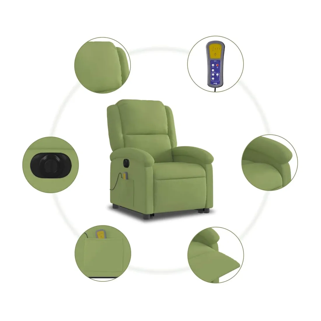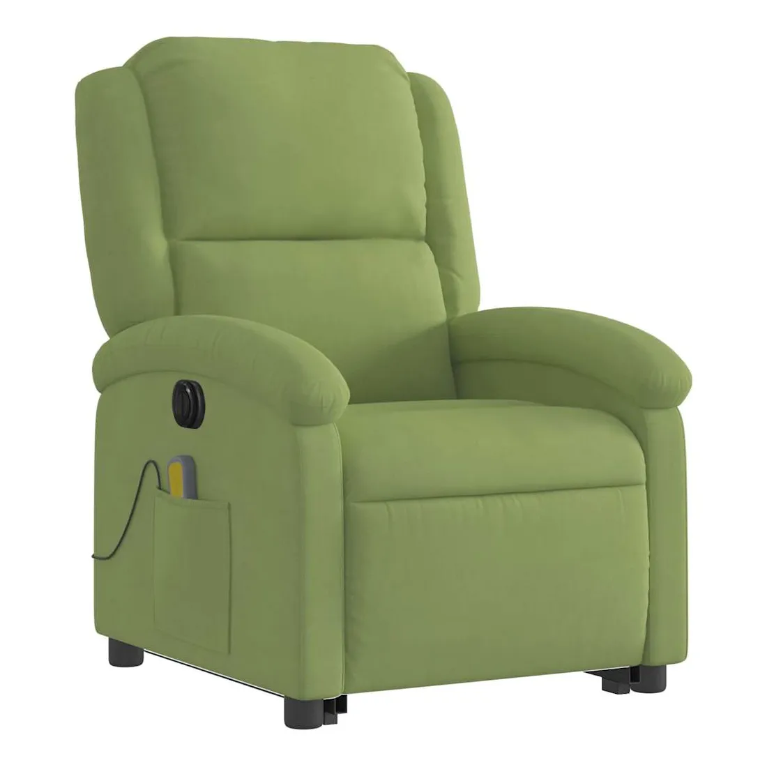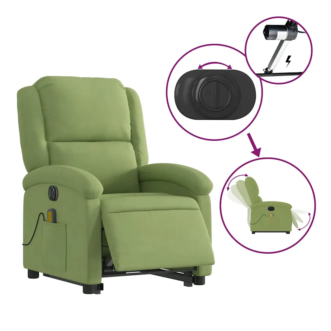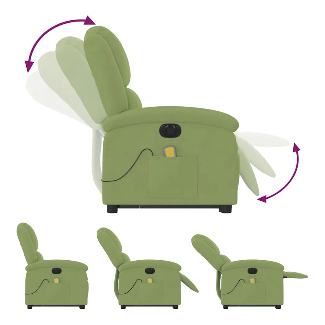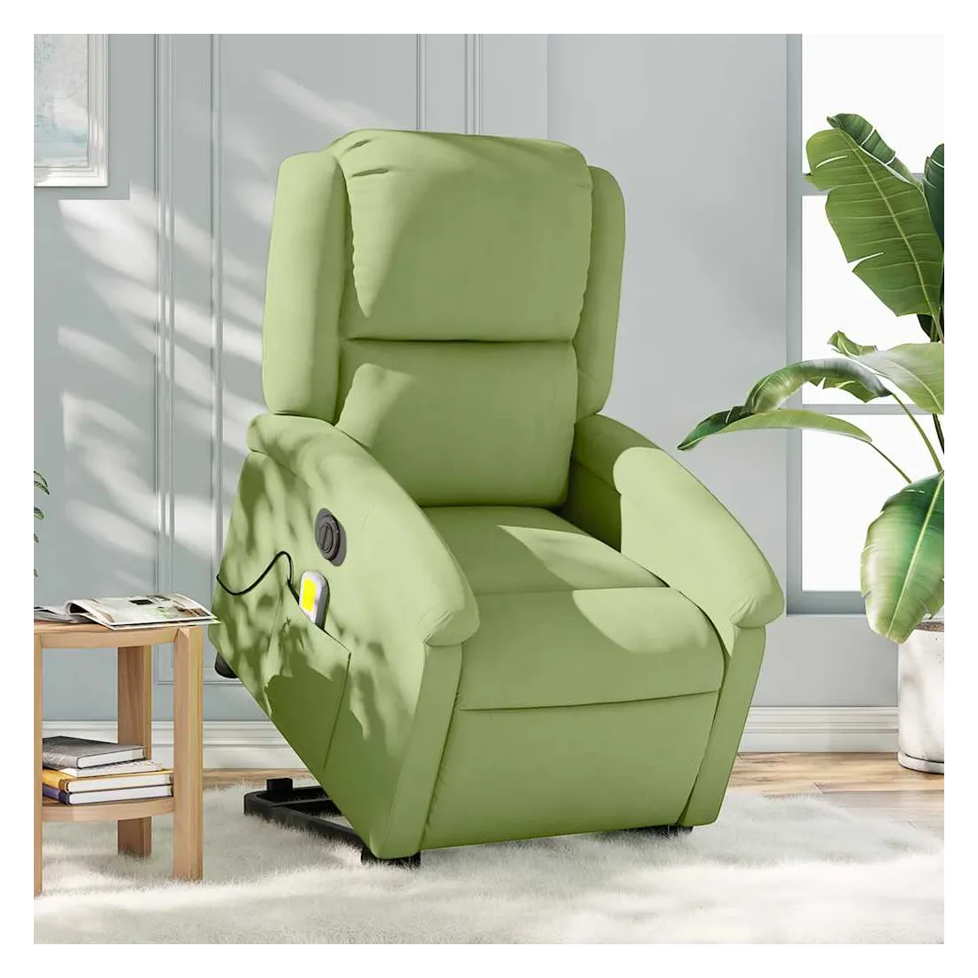 Asseyez-vous et détendez-vous dans ce fauteuil inclinable de massage électrique très confortable ! Fonction de levage électrique : ce fauteuil inclinable pour personnes âgées est équipé d'un moteur électrique pour la fonction de levage. Grâce à la fonction qui pousse toute la chaise vers le haut, vous pouvez facilement vous tenir debout sans stresser votre dos et vos genoux en appuyant simplement sur le bouton.Fonction d'inclinaison électrique : ce fauteuil inclinable est également équipé d'un moteur électrique qui permet de régler automatiquement le repose-pied et le dossier dans n'importe quelle position, selon votre confort, en appuyant simplement sur le bouton situé sur le côté du fauteuil. Cette fonction permet une inclinaison maximale de 135 degrés. En outre, le dossier peut revenir automatiquement à sa position d'origine par une simple pression sur le bouton.Fonction de vibration : les 6 points de massage vous permettent de faire l'expérience d'un massage mieux ciblé. De plus, la télécommande incluse vous permet de choisir différents programmes de massage. La fonction de massage est alimentée par le connecteur USB qui nécessite une source d'alimentation USB certifiée de 5 V (non fournie).Expérience d'assise confortable : le siège, le dossier et les larges accoudoirs rembourrés épais recouverts de velours procurent une sensation confortable et chaleureuse, vous faisant vous sentir enlacé lorsque vous êtes assis. Le velours est un tissu doux et confortable qui est agréable sur la peau.Poche latérale pratique : ce fauteuil est doté d'une poche latérale pour ranger votre télécommande ou garder vos objets essentiels à portée de main.Cadre solide et stable : le cadre en bois et en métal offre une structure solide et une grande stabilité. Ce fauteuil inclinable est confortable et durable.