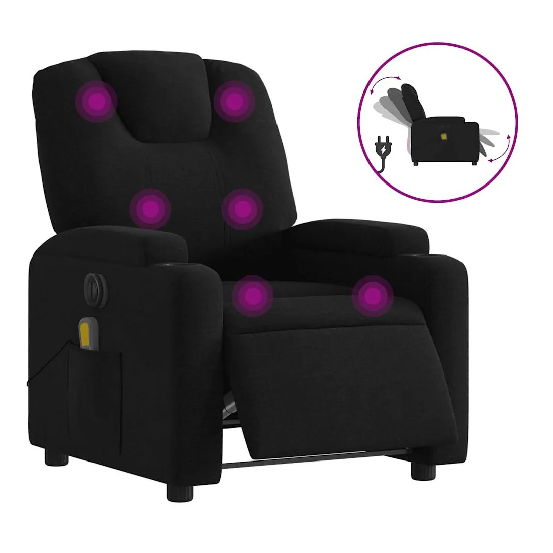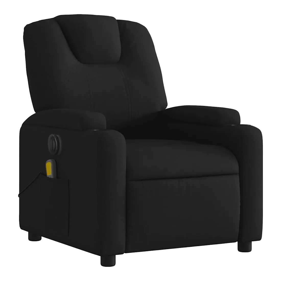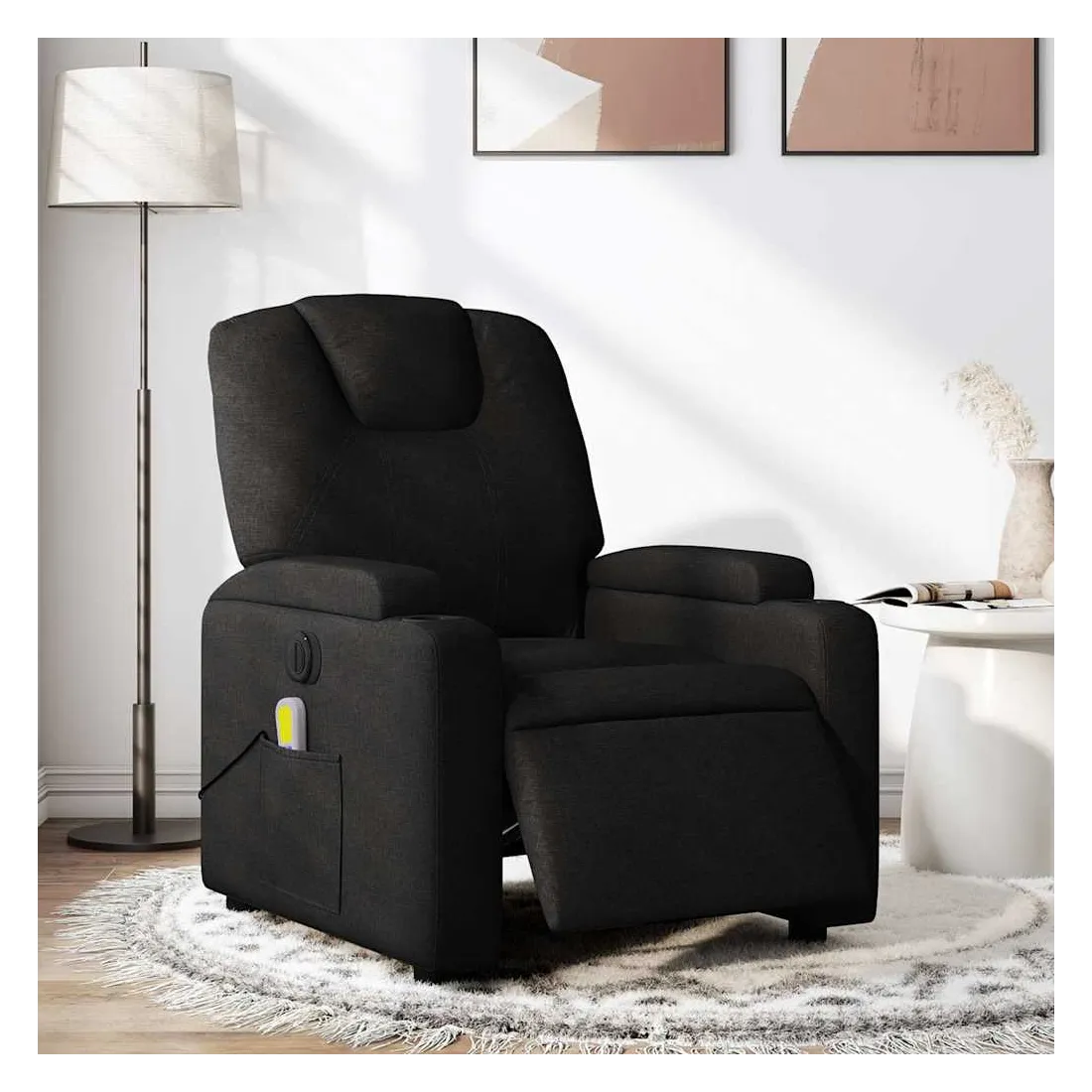 Asseyez-vous et détendez-vous dans ce fauteuil inclinable de massage électrique très confortable ! Fonction d'inclinaison électrique : ce fauteuil inclinable est équipé d'un moteur électrique qui permet de régler automatiquement le repose-pied et le dossier dans n'importe quelle position, selon votre confort, en appuyant simplement sur le bouton situé sur le côté du fauteuil. Cette fonction permet une inclinaison maximale de 135 degrés. En outre, le dossier peut revenir automatiquement à sa position d'origine par une simple pression sur le bouton.Fonction de vibration : les 6 points de massage vous permettent de faire l'expérience d'un massage mieux ciblé. De plus, la télécommande incluse vous permet de choisir différents programmes de massage. La fonction de massage est alimentée par le connecteur USB qui nécessite une source d'alimentation USB certifiée de 5 V (non fournie).Expérience d'assise confortable : le siège, le dossier et les larges accoudoirs bien rembourrés recouverts de tissu procurent une sensation confortable et chaleureuse, vous permettant de vous sentir enveloppé lorsque vous êtes assis. Le tissu présente un aspect simple et épuré et est respirant et durable.Porte-gobelets et poche latérale pratiques : ce fauteuil dispose de deux porte-gobelets pratiques pour vos boissons et d'une poche latérale pour votre télécommande ou pour garder vos objets essentiels à portée de main.Cadre solide et stable : le cadre en bois et en métal offre une structure solide et une grande stabilité. Ce fauteuil inclinable est confortable et durable.