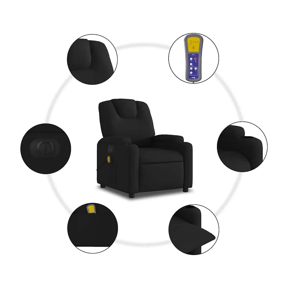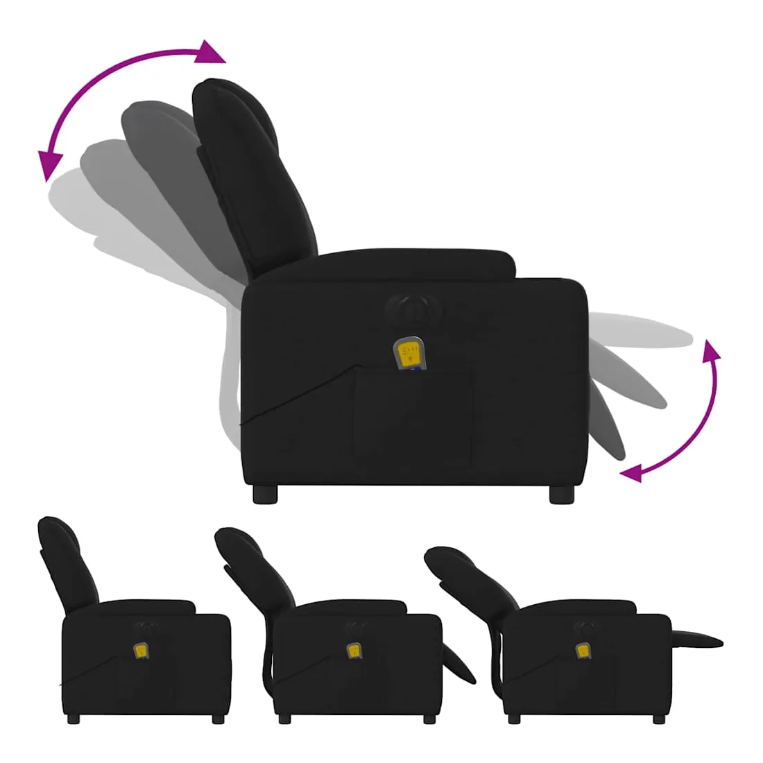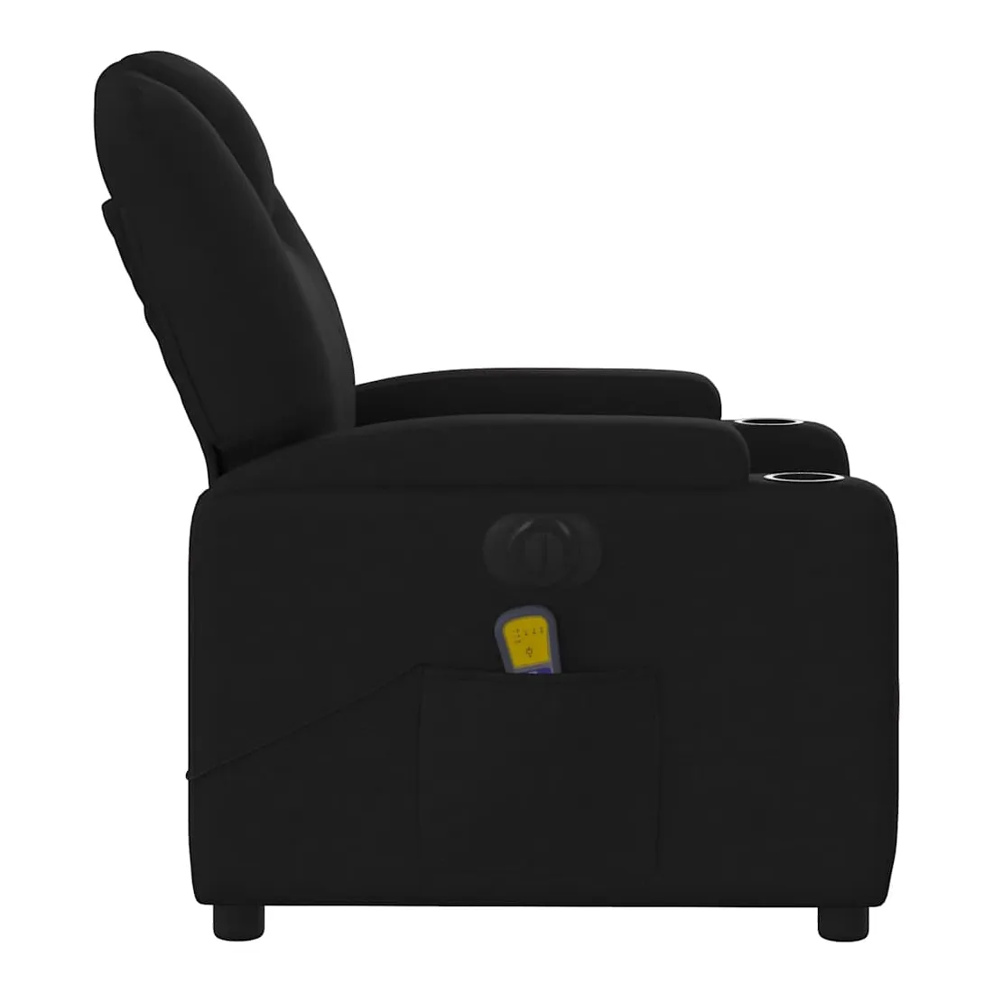 Asseyez-vous et détendez-vous dans ce fauteuil inclinable de massage électrique très confortable ! Fonction d'inclinaison électrique : ce fauteuil inclinable est équipé d'un moteur électrique qui permet de régler automatiquement le repose-pied et le dossier dans n'importe quelle position, selon votre confort, en appuyant simplement sur le bouton situé sur le côté du fauteuil. Cette fonction permet une inclinaison maximale de 135 degrés. En outre, le dossier peut revenir automatiquement à sa position d'origine par une simple pression sur le bouton.Fonction de vibration : les 6 points de massage vous permettent de faire l'expérience d'un massage mieux ciblé. De plus, la télécommande incluse vous permet de choisir différents programmes de massage. La fonction de massage est alimentée par le connecteur USB qui nécessite une source d'alimentation USB certifiée de 5 V (non fournie).Expérience d'assise confortable : le siège, le dossier et les larges accoudoirs bien rembourrés recouverts de tissu procurent une sensation confortable et chaleureuse, vous permettant de vous sentir enveloppé lorsque vous êtes assis. Le tissu présente un aspect simple et épuré et est respirant et durable.Porte-gobelets et poche latérale pratiques : ce fauteuil dispose de deux porte-gobelets pratiques pour vos boissons et d'une poche latérale pour votre télécommande ou pour garder vos objets essentiels à portée de main.Cadre solide et stable : le cadre en bois et en métal offre une structure solide et une grande stabilité. Ce fauteuil inclinable est confortable et durable.