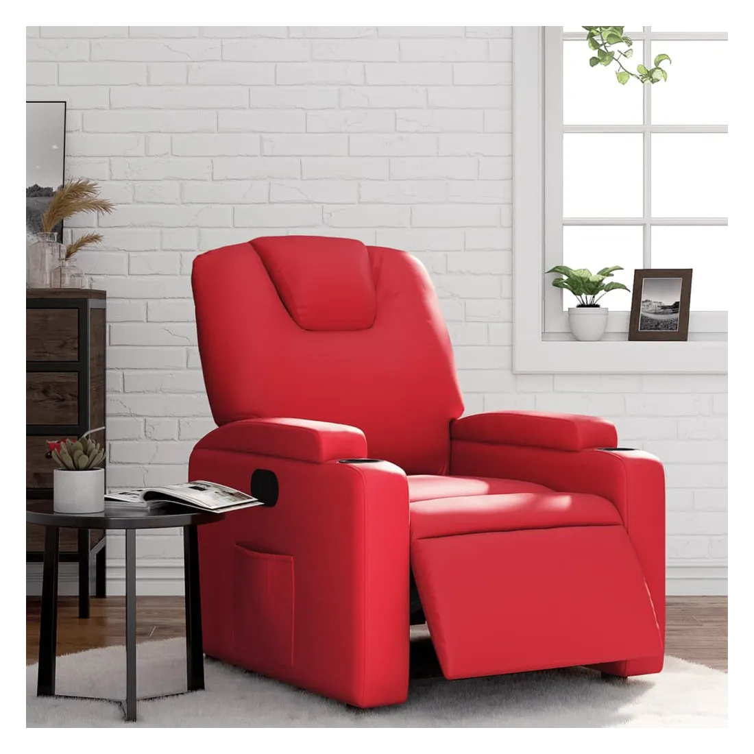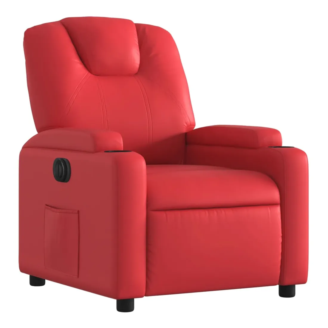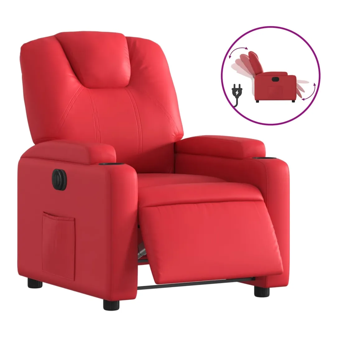 Asseyez-vous et détendez-vous dans ce fauteuil inclinable électrique très confortable ! Fonction d'inclinaison électrique : ce fauteuil inclinable est équipé d'un moteur électrique qui permet de régler automatiquement le repose-pied et le dossier dans n'importe quelle position, selon votre confort, en appuyant simplement sur le bouton situé sur le côté du fauteuil. Cette fonction permet une inclinaison maximale de 135 degrés. En outre, le dossier peut revenir automatiquement à sa position d'origine par une simple pression sur le bouton.Expérience de siège confortable : le siège, le dossier et les larges accoudoirs rembourrés épais recouverts de similicuir procurent une sensation confortable, vous faisant vous sentir enlacé lorsque vous êtes assis. Le similicuir est un matériau très résistant. Il est résistant aux taches, ce qui le rend facile à nettoyer avec un chiffon humide. La surface lisse donne également un aspect luxueux et la beauté du cuir véritable.Porte-gobelets et poche latérale pratiques : ce fauteuil dispose de deux porte-gobelets pratiques pour vos boissons et d'une poche latérale pour garder vos objets essentiels à portée de main.Cadre solide et stable : le cadre en bois et en métal offre une structure solide et une grande stabilité. Ce fauteuil inclinable est confortable et durable.