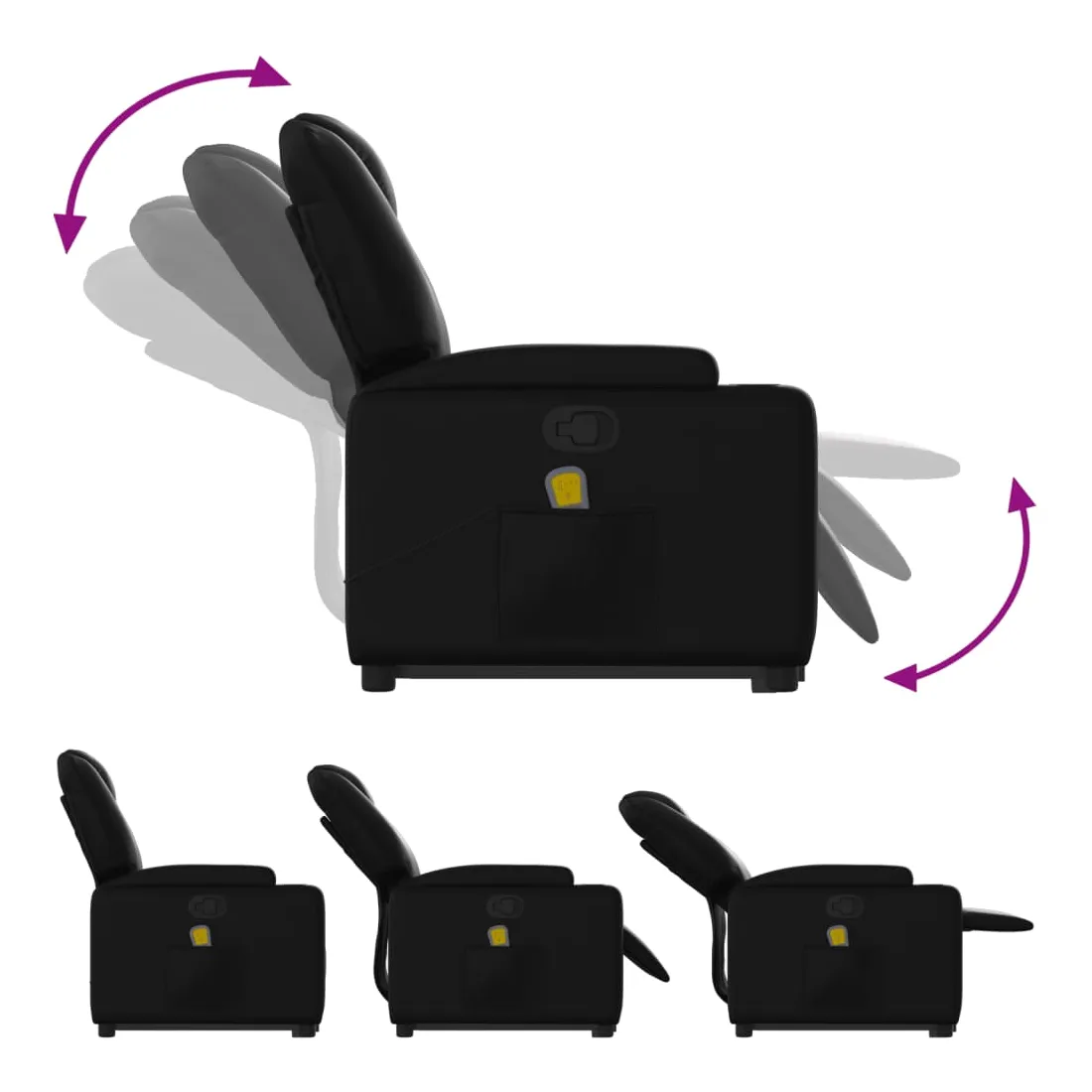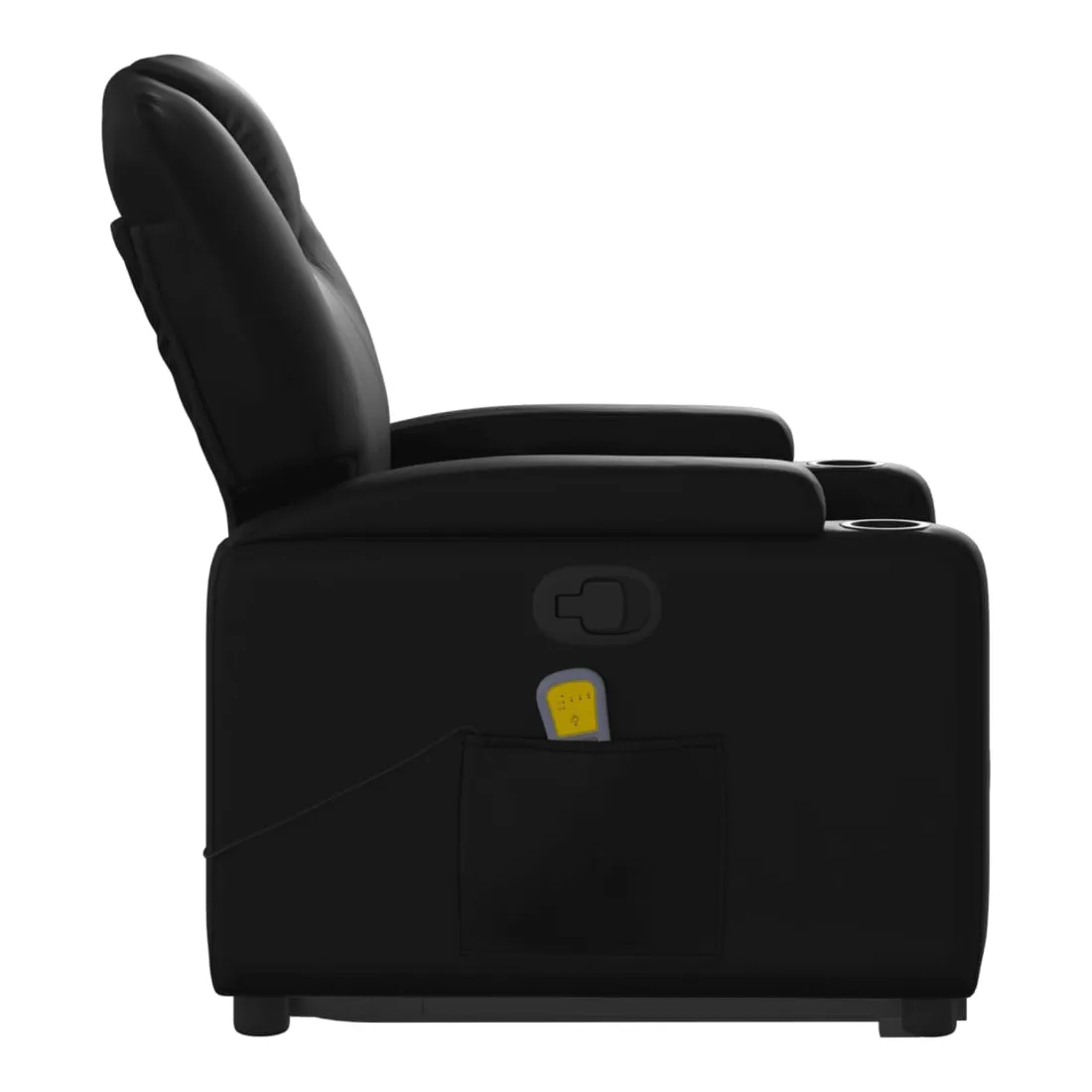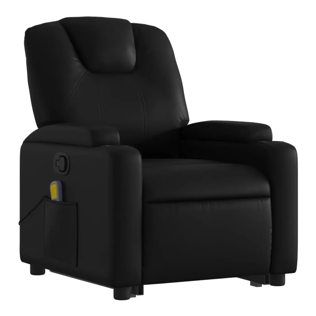 Asseyez-vous et détendez-vous dans ce fauteuil inclinable de massage très confortable ! Fonction de levage électrique : ce fauteuil inclinable pour personnes âgées est équipé d'un moteur électrique pour la fonction de levage. Grâce à la fonction qui pousse toute la chaise vers le haut, vous pouvez facilement vous tenir debout sans stresser votre dos et vos genoux en appuyant simplement sur le bouton.Fonction d'inclinaison manuelle : ce fauteuil inclinable est doté d'une poignée du côté droit. Vous pouvez régler manuellement le repose-pieds et le dossier dans n'importe quelle position selon votre confort en tirant simplement sur la poignée. Cette fonction permet une inclinaison maximale de 135 degrés. De plus, le dossier peut revenir rapidement à sa position d'origine en tirant simplement sur la poignée.Fonction de vibration : les 6 points de massage vous permettent de faire l'expérience d'un massage mieux ciblé. De plus, la télécommande incluse vous permet de choisir différents programmes de massage. La fonction de massage est alimentée par le connecteur USB qui nécessite une source d'alimentation USB certifiée de 5 V (non fournie).Expérience de siège confortable : le siège, le dossier et les larges accoudoirs rembourrés épais recouverts de similicuir procurent une sensation confortable, vous faisant vous sentir enlacé lorsque vous êtes assis. Le similicuir est un matériau très résistant. Il est résistant aux taches, ce qui le rend facile à nettoyer avec un chiffon humide. La surface lisse donne également un aspect luxueux et la beauté du cuir véritable.Porte-gobelets et poche latérale pratiques : ce fauteuil dispose de deux porte-gobelets pratiques pour vos boissons et d'une poche latérale pour votre télécommande ou pour garder vos objets essentiels à portée de main.Cadre solide et stable : le cadre en bois et en métal offre une structure solide et une grande stabilité. Ce fauteuil inclinable est confortable et durable.