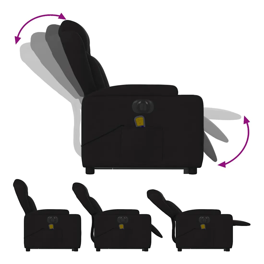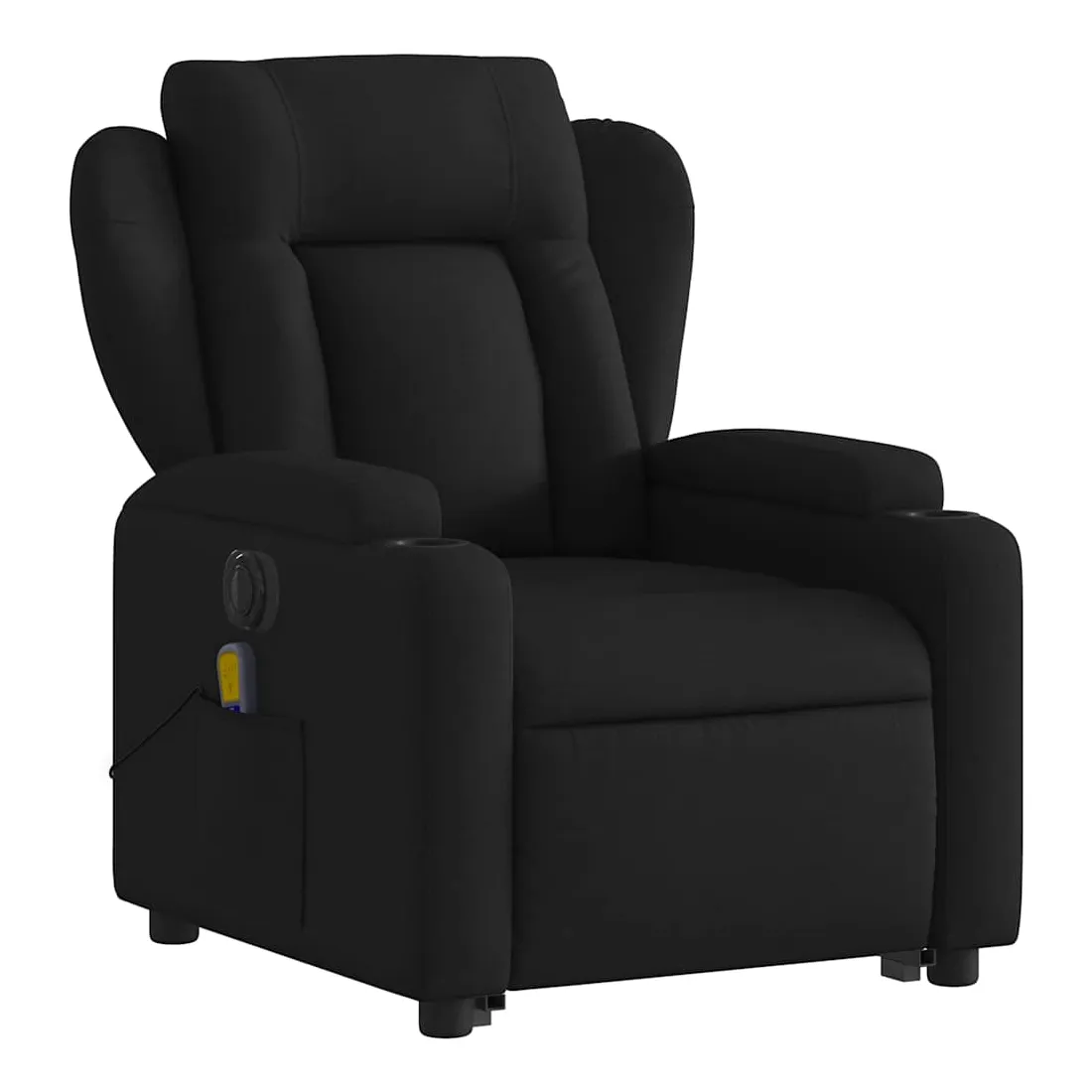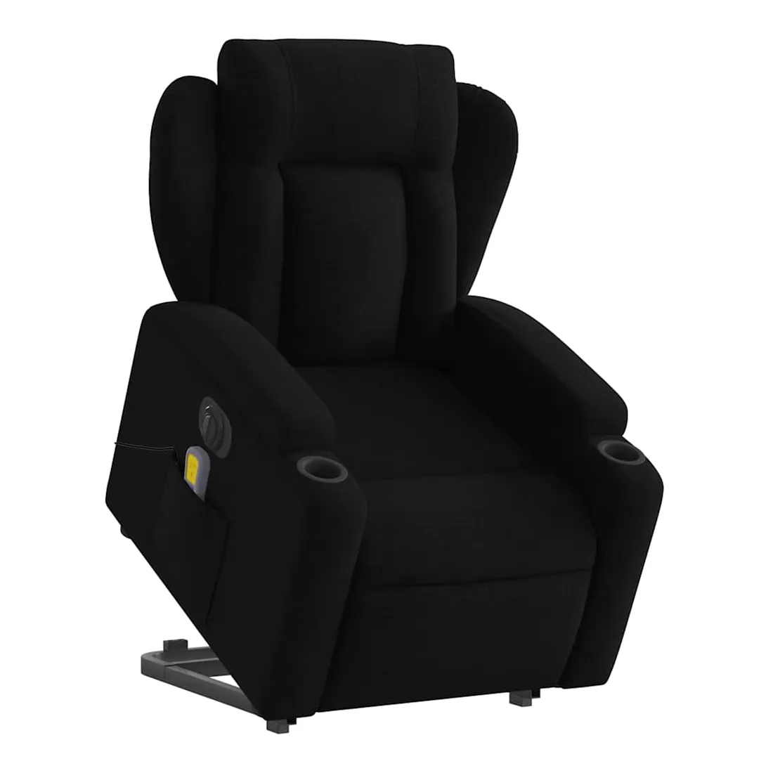 Asseyez-vous et détendez-vous dans ce fauteuil inclinable de massage électrique très confortable ! Fonction de levage électrique : ce fauteuil inclinable pour personnes âgées est équipé d'un moteur électrique pour la fonction de levage. Grâce à la fonction qui pousse toute la chaise vers le haut, vous pouvez facilement vous tenir debout sans stresser votre dos et vos genoux en appuyant simplement sur le bouton.Fonction d'inclinaison électrique : ce fauteuil inclinable est également équipé d'un moteur électrique qui permet de régler automatiquement le repose-pied et le dossier dans n'importe quelle position, selon votre confort, en appuyant simplement sur le bouton situé sur le côté du fauteuil. Cette fonction permet une inclinaison maximale de 135 degrés. En outre, le dossier peut revenir automatiquement à sa position d'origine par une simple pression sur le bouton.Fonction de vibration : les 6 points de massage vous permettent de faire l'expérience d'un massage mieux ciblé. De plus, la télécommande incluse vous permet de choisir différents programmes de massage. La fonction de massage est alimentée par le connecteur USB qui nécessite une source d'alimentation USB certifiée de 5 V (non fournie).Expérience d'assise confortable : le siège, le dossier et les larges accoudoirs bien rembourrés recouverts de tissu procurent une sensation confortable et chaleureuse, vous permettant de vous sentir enveloppé lorsque vous êtes assis. Le tissu présente un aspect simple et épuré et est respirant et durable.Porte-gobelets et poche latérale pratiques : ce fauteuil dispose de deux porte-gobelets pratiques pour vos boissons et d'une poche latérale pour garder vos objets essentiels à portée de main.Cadre solide et stable : le cadre en bois et en métal offre une structure solide et une grande stabilité. Ce fauteuil inclinable est confortable et durable.
