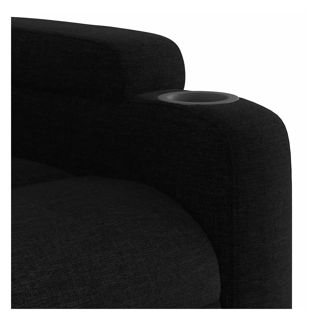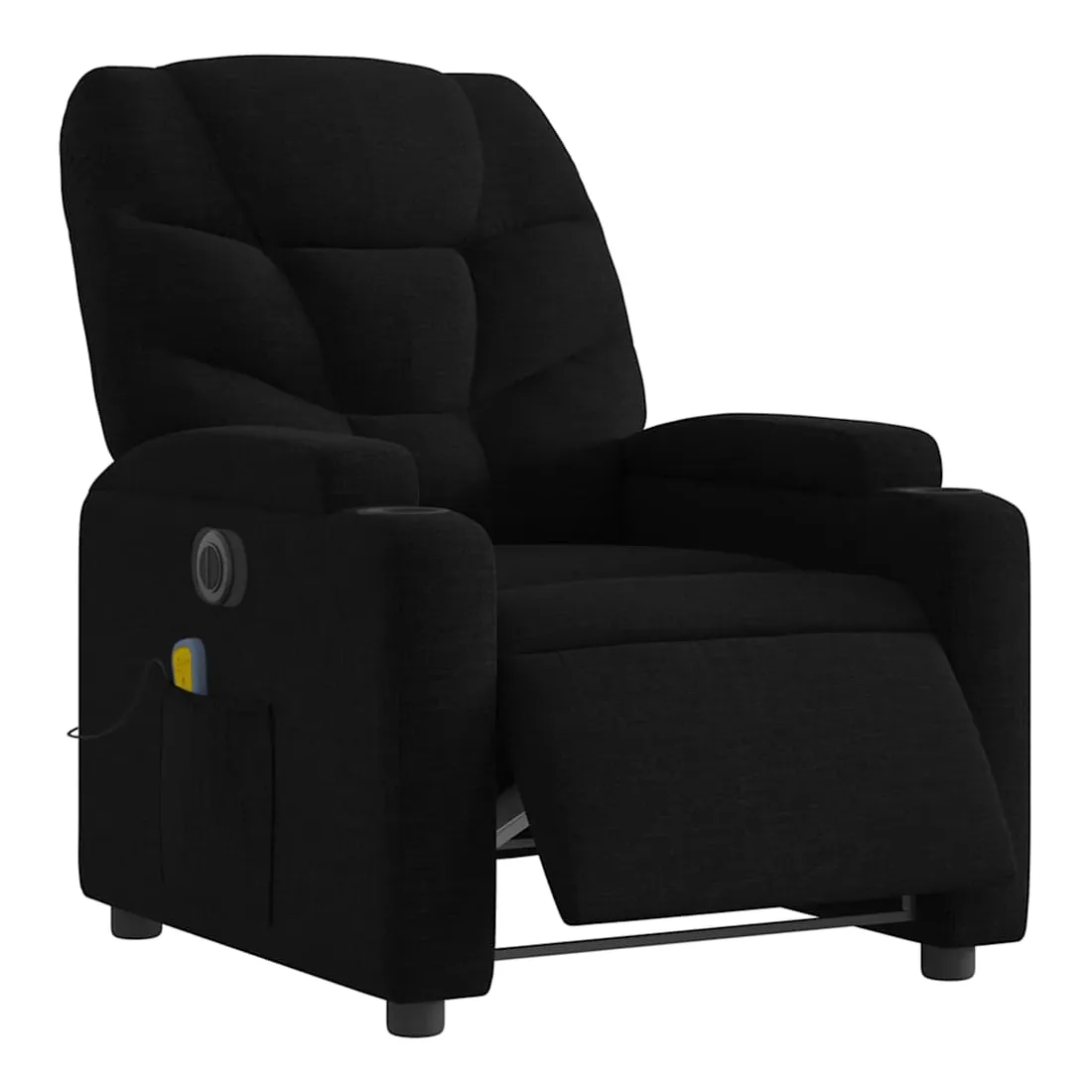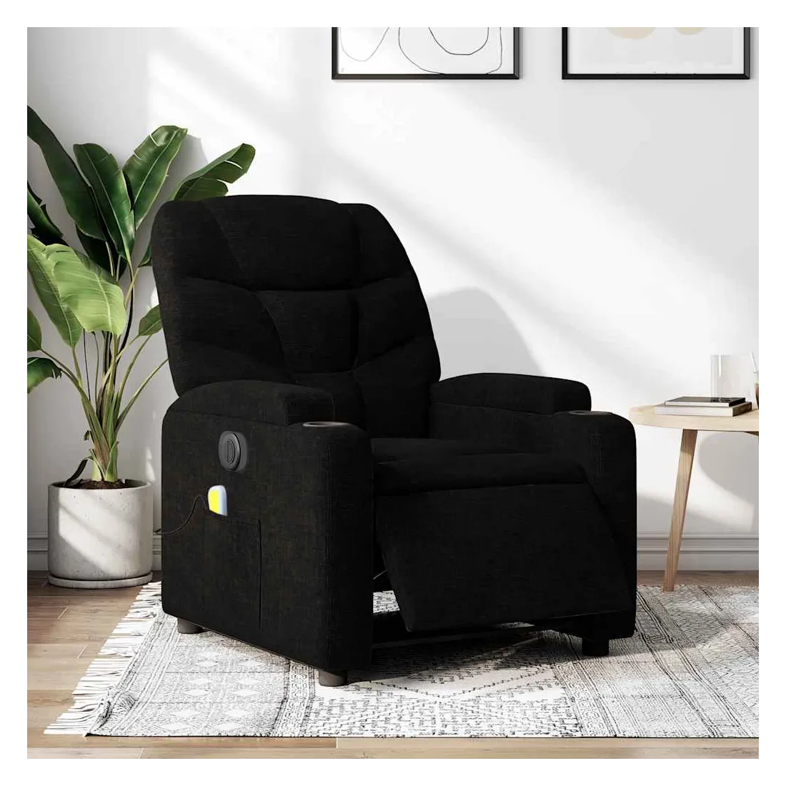 Asseyez-vous et détendez-vous dans ce fauteuil inclinable de massage électrique très confortable ! Fonction d'inclinaison électrique : ce fauteuil inclinable est équipé d'un moteur électrique qui permet de régler automatiquement le repose-pied et le dossier dans n'importe quelle position, selon votre confort, en appuyant simplement sur le bouton situé sur le côté du fauteuil. Cette fonction permet une inclinaison maximale de 135 degrés. En outre, le dossier peut revenir automatiquement à sa position d'origine par une simple pression sur le bouton.Fonction de vibration : les 6 points de massage vous permettent de faire l'expérience d'un massage mieux ciblé. De plus, la télécommande incluse vous permet de choisir différents programmes de massage. La fonction de massage est alimentée par le connecteur USB qui nécessite une source d'alimentation USB certifiée de 5 V (non fournie).Expérience d'assise confortable : le siège, le dossier et les larges accoudoirs bien rembourrés recouverts de tissu procurent une sensation confortable et chaleureuse, vous permettant de vous sentir enveloppé lorsque vous êtes assis. Le tissu présente un aspect simple et épuré et est respirant et durable.Porte-gobelets et poche latérale pratiques : ce fauteuil dispose de deux porte-gobelets pratiques pour vos boissons et d'une poche latérale pour garder vos objets essentiels à portée de main.Cadre solide et stable : le cadre en bois et en métal offre une structure solide et une grande stabilité. Ce fauteuil inclinable est confortable et durable.