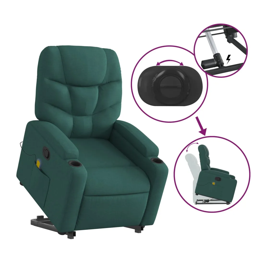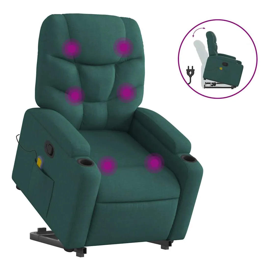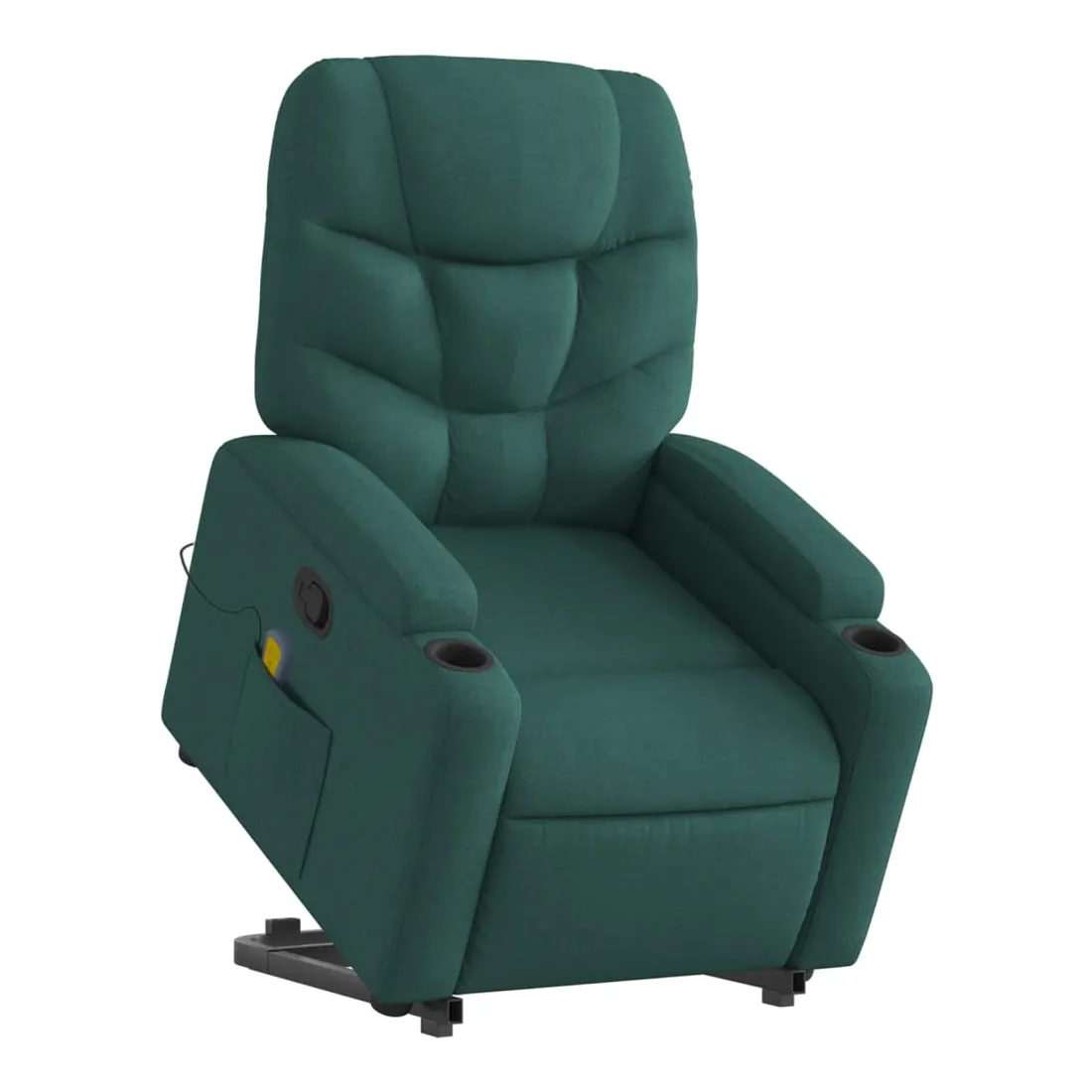 Asseyez-vous et détendez-vous dans ce fauteuil inclinable de massage très confortable ! Fonction de levage électrique : ce fauteuil inclinable pour personnes âgées est équipé d'un moteur électrique pour la fonction de levage. Grâce à la fonction qui pousse toute la chaise vers le haut, vous pouvez facilement vous tenir debout sans stresser votre dos et vos genoux en appuyant simplement sur le bouton.Fonction d'inclinaison manuelle : ce fauteuil inclinable est doté d'une poignée du côté droit. Vous pouvez régler manuellement le repose-pieds et le dossier dans n'importe quelle position selon votre confort en tirant simplement sur la poignée. Cette fonction permet une inclinaison maximale de 135 degrés. De plus, le dossier peut revenir rapidement à sa position d'origine en tirant simplement sur la poignée.Fonction de vibration : les 6 points de massage vous permettent de faire l'expérience d'un massage mieux ciblé. De plus, la télécommande incluse vous permet de choisir différents programmes de massage. La fonction de massage est alimentée par le connecteur USB qui nécessite une source d'alimentation USB certifiée de 5 V (non fournie).Expérience d'assise confortable : le siège, le dossier et les larges accoudoirs bien rembourrés recouverts de tissu procurent une sensation confortable et chaleureuse, vous permettant de vous sentir enveloppé lorsque vous êtes assis. Le tissu présente un aspect simple et épuré et est respirant et durable.Porte-gobelets et poche latérale pratiques : ce fauteuil dispose de deux porte-gobelets pratiques pour vos boissons et d'une poche latérale pour garder vos objets essentiels à portée de main.Cadre solide et stable : le cadre en bois et en métal offre une structure solide et une grande stabilité. Ce fauteuil inclinable est confortable et durable.