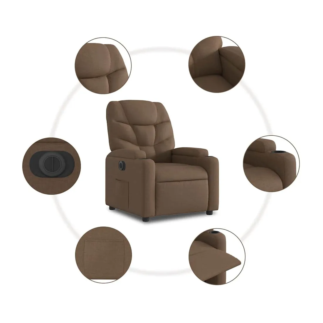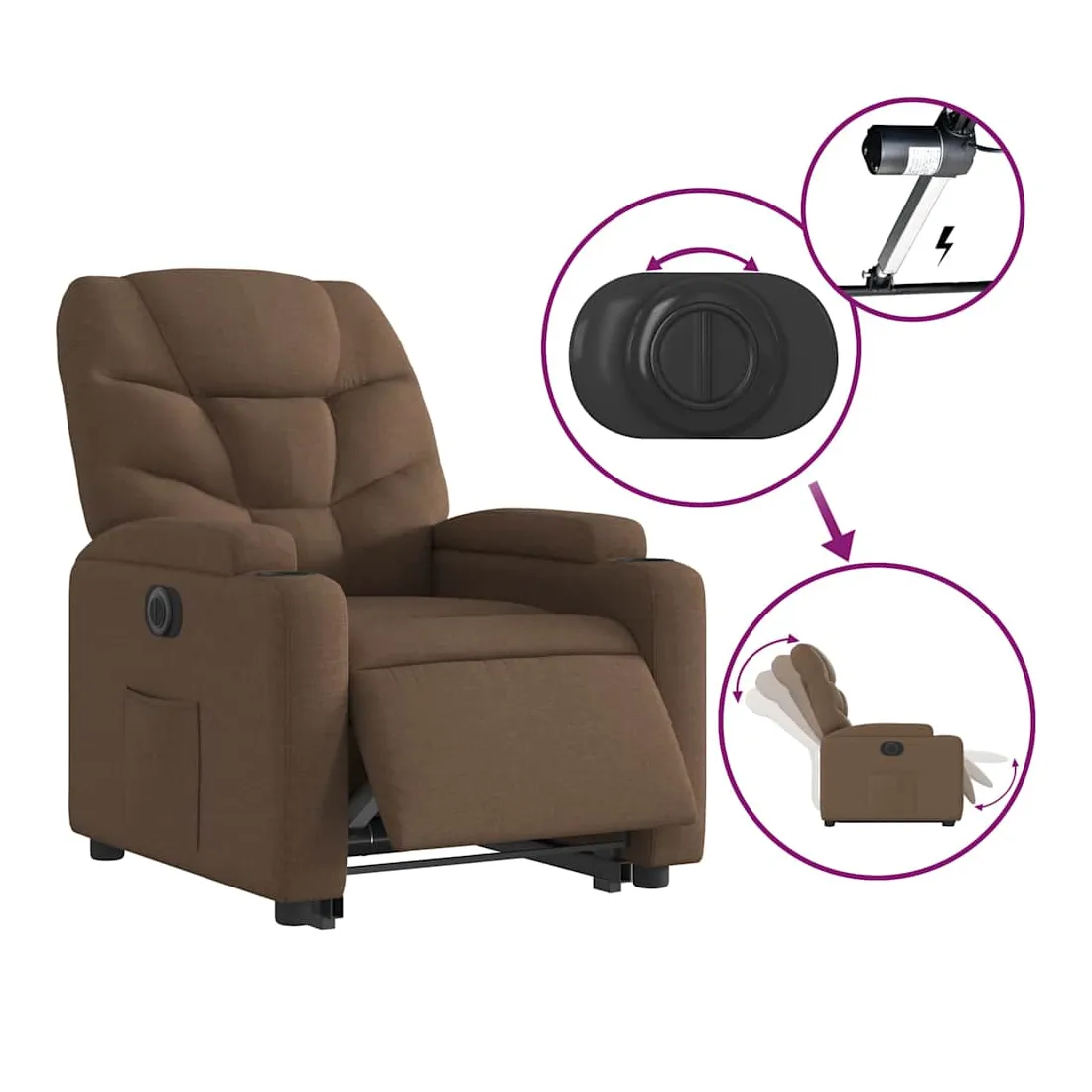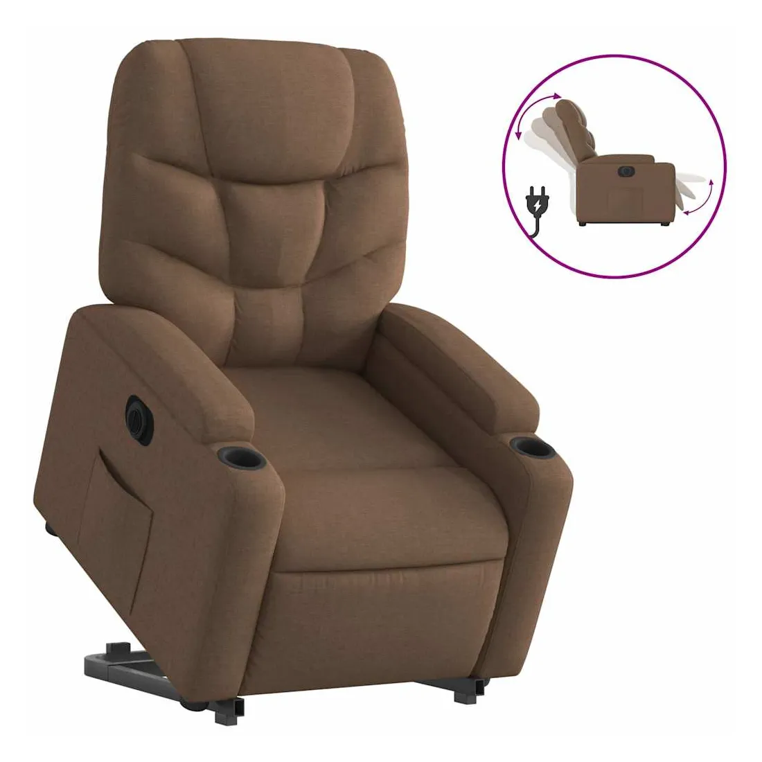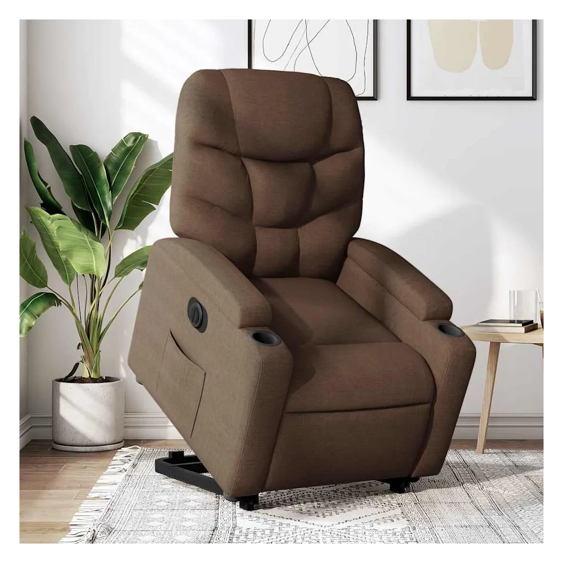 Asseyez-vous et détendez-vous dans ce fauteuil inclinable électrique très confortable ! Fonction de levage électrique : ce fauteuil inclinable pour personnes âgées est équipé d'un moteur électrique pour la fonction de levage. Grâce à la fonction qui pousse toute la chaise vers le haut, vous pouvez facilement vous tenir debout sans stresser votre dos et vos genoux en appuyant simplement sur le bouton.Fonction d'inclinaison électrique : ce fauteuil inclinable est également équipé d'un moteur électrique qui permet de régler automatiquement le repose-pied et le dossier dans n'importe quelle position, selon votre confort, en appuyant simplement sur le bouton situé sur le côté du fauteuil. Cette fonction permet une inclinaison maximale de 135 degrés. En outre, le dossier peut revenir automatiquement à sa position d'origine par une simple pression sur le bouton.Expérience d'assise confortable : le siège, le dossier et les larges accoudoirs bien rembourrés recouverts de tissu procurent une sensation confortable et chaleureuse, vous permettant de vous sentir enveloppé lorsque vous êtes assis. Le tissu présente un aspect simple et épuré et est respirant et durable.Porte-gobelets et poche latérale pratiques : ce fauteuil dispose de deux porte-gobelets pratiques pour vos boissons et d'une poche latérale pour garder vos objets essentiels à portée de main.Cadre solide et stable : le cadre en bois et en métal offre une structure solide et une grande stabilité. Ce fauteuil inclinable est confortable et durable.