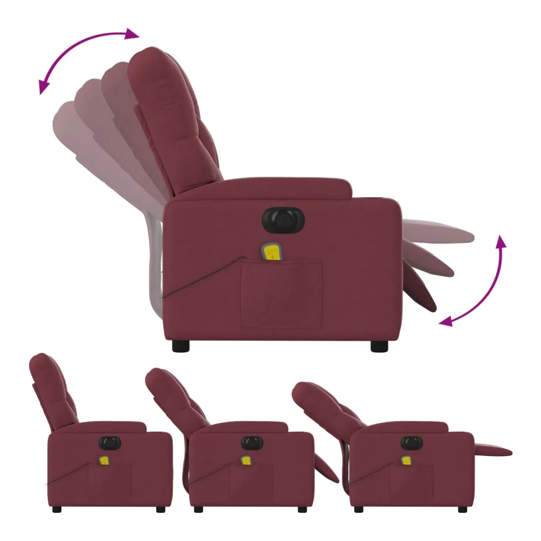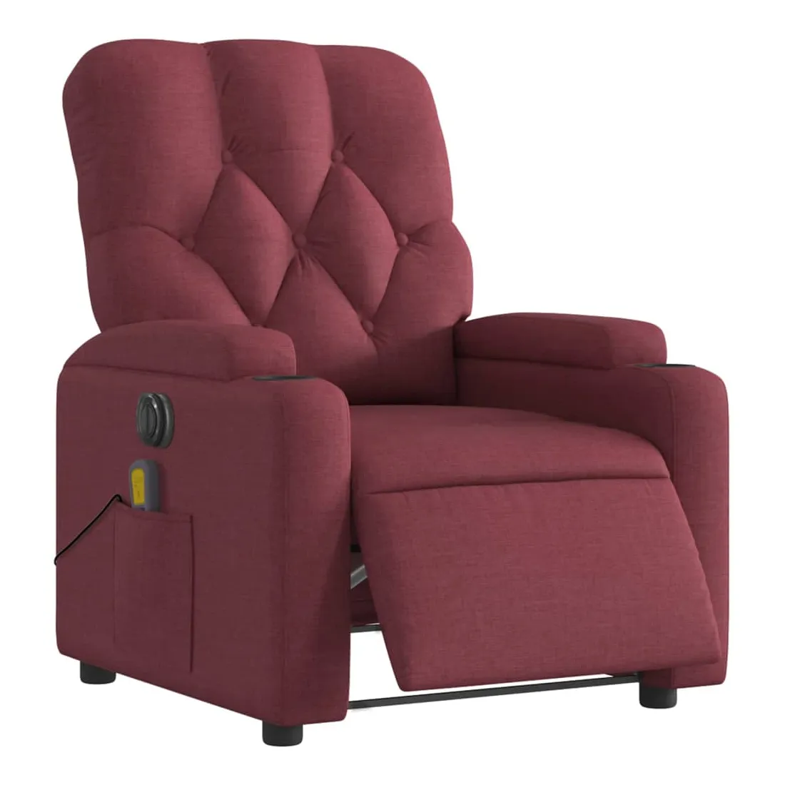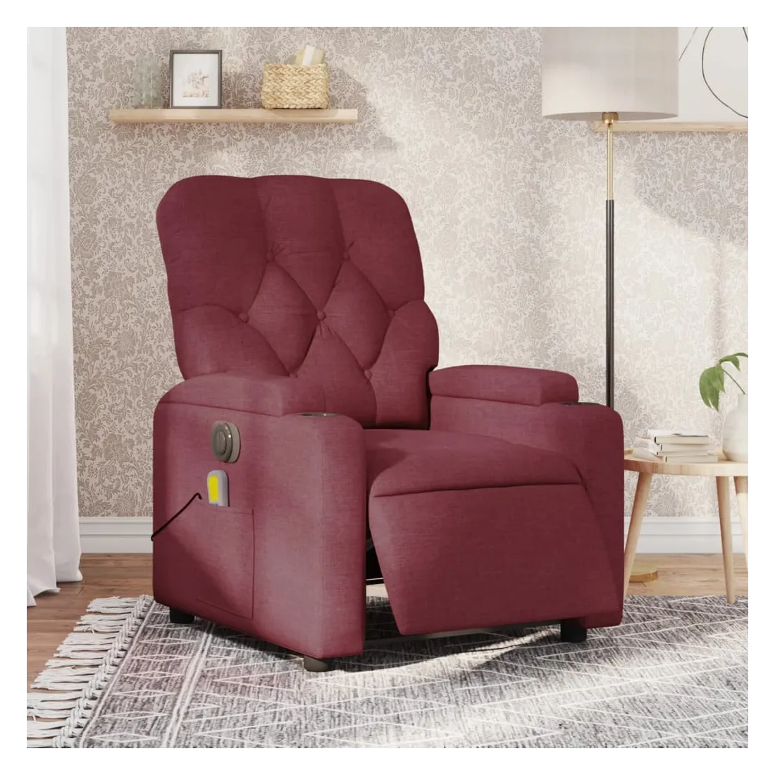 Asseyez-vous et détendez-vous dans ce fauteuil inclinable de massage électrique très confortable ! Fonction d'inclinaison électrique : ce fauteuil inclinable est équipé d'un moteur électrique qui permet de régler automatiquement le repose-pied et le dossier dans n'importe quelle position, selon votre confort, en appuyant simplement sur le bouton situé sur le côté du fauteuil. Cette fonction permet une inclinaison maximale de 135 degrés. En outre, le dossier peut revenir automatiquement à sa position d'origine par une simple pression sur le bouton.Fonction de vibration : les 6 points de massage vous permettent de faire l'expérience d'un massage mieux ciblé. De plus, la télécommande incluse vous permet de choisir différents programmes de massage. La fonction de massage est alimentée par le connecteur USB qui nécessite une source d'alimentation USB certifiée de 5 V (non fournie).Expérience d'assise confortable : le siège, le dossier et les larges accoudoirs bien rembourrés recouverts de tissu procurent une sensation confortable et chaleureuse, vous permettant de vous sentir enveloppé lorsque vous êtes assis. Le tissu présente un aspect simple et épuré et est respirant et durable.Porte-gobelets et poche latérale pratiques : ce fauteuil dispose de deux porte-gobelets pratiques pour vos boissons et d'une poche latérale pour garder vos objets essentiels à portée de main.Cadre solide et stable : le cadre en bois et en métal offre une structure solide et une grande stabilité. Ce fauteuil inclinable est confortable et durable.