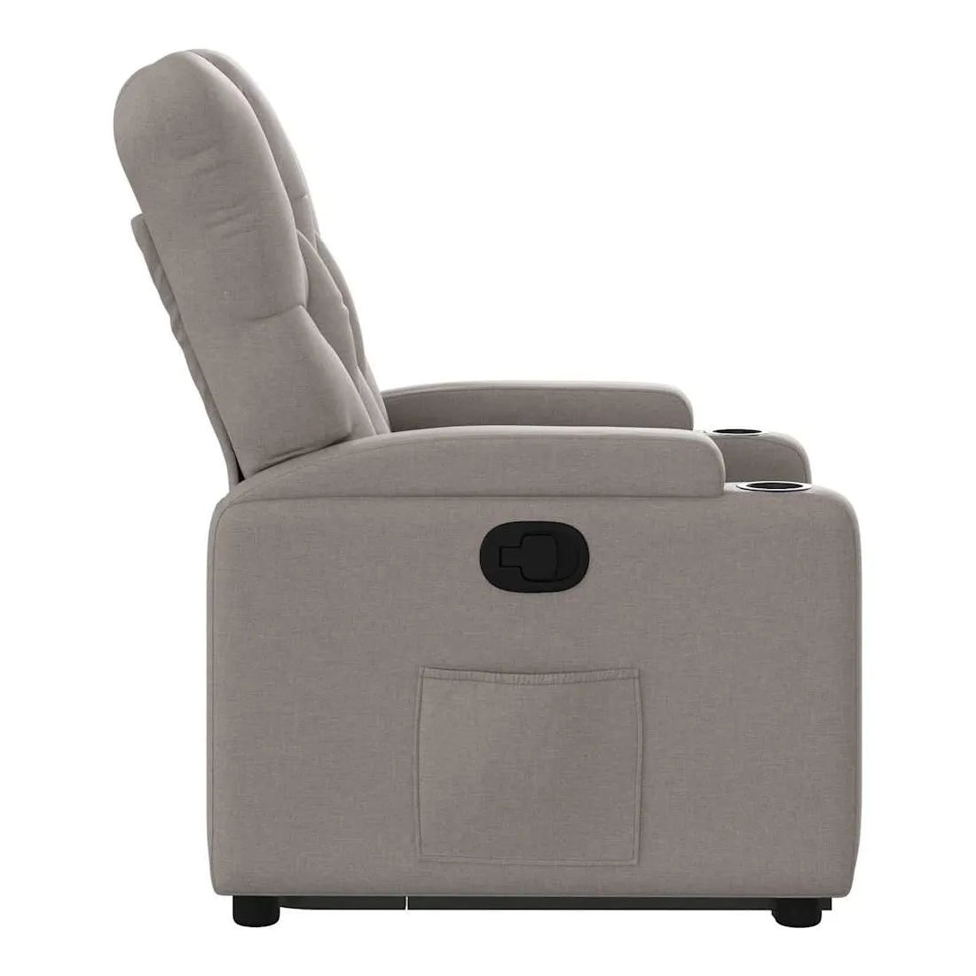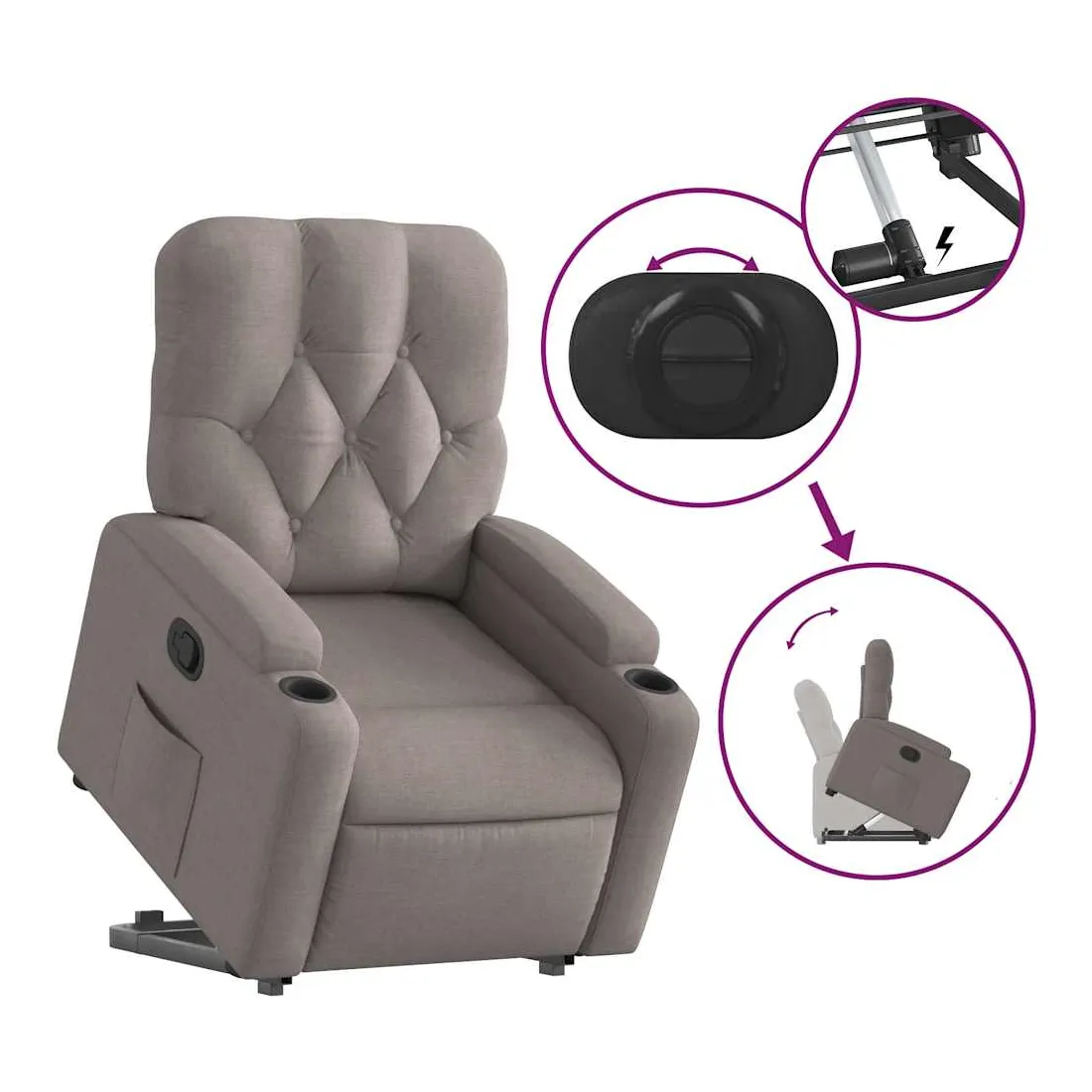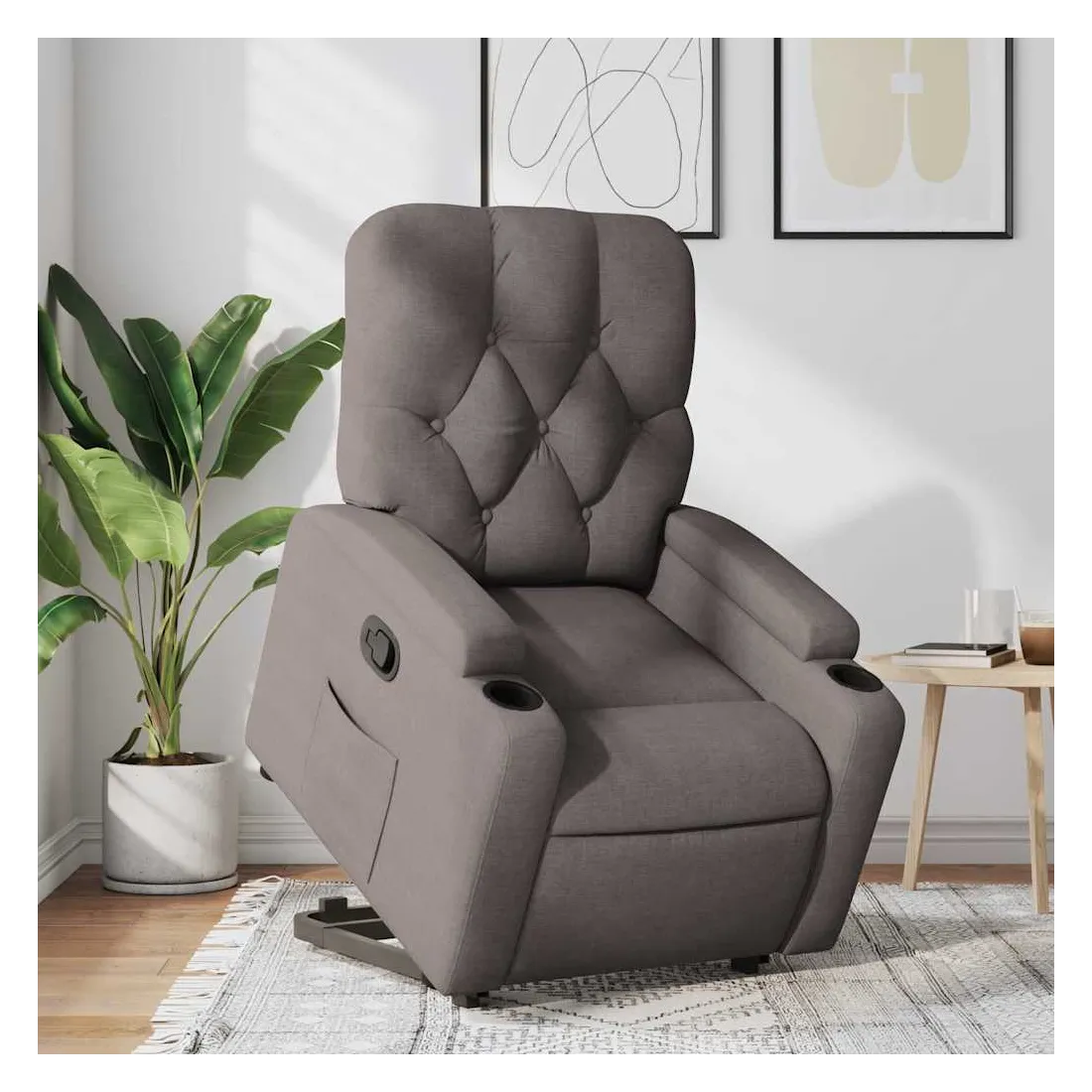 Asseyez-vous et détendez-vous dans ce fauteuil inclinable très confortable ! Fonction de levage électrique : ce fauteuil inclinable pour personnes âgées est équipé d'un moteur électrique pour la fonction de levage. Grâce à la fonction qui pousse toute la chaise vers le haut, vous pouvez facilement vous tenir debout sans stresser votre dos et vos genoux en appuyant simplement sur le bouton.Fonction d'inclinaison manuelle : ce fauteuil inclinable est doté d'une poignée du côté droit. Vous pouvez régler manuellement le repose-pieds et le dossier dans n'importe quelle position selon votre confort en tirant simplement sur la poignée. Cette fonction permet une inclinaison maximale de 135 degrés. De plus, le dossier peut revenir rapidement à sa position d'origine en tirant simplement sur la poignée.Expérience d'assise confortable : le siège, le dossier et les larges accoudoirs bien rembourrés recouverts de tissu procurent une sensation confortable et chaleureuse, vous permettant de vous sentir enveloppé lorsque vous êtes assis. Le tissu présente un aspect simple et épuré et est respirant et durable.Porte-gobelets et poche latérale pratiques : ce fauteuil dispose de deux porte-gobelets pratiques pour vos boissons et d'une poche latérale pour garder vos objets essentiels à portée de main.Cadre solide et stable : le cadre en bois et en métal offre une structure solide et une grande stabilité. Ce fauteuil inclinable est confortable et durable.