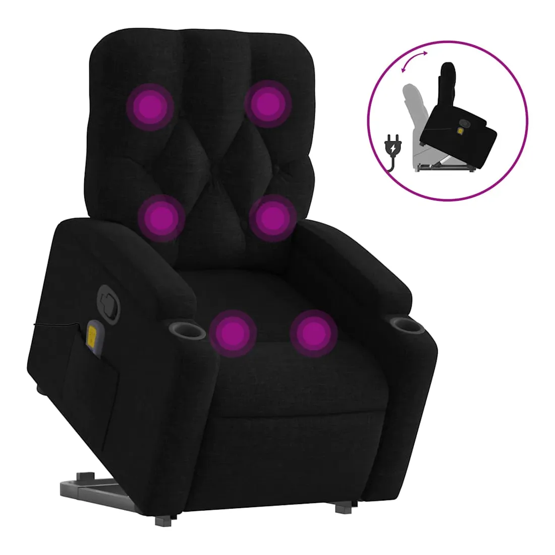 Asseyez-vous et détendez-vous dans ce fauteuil inclinable de massage très confortable ! Fonction de levage électrique : ce fauteuil inclinable pour personnes âgées est équipé d'un moteur électrique pour la fonction de levage. Grâce à la fonction qui pousse toute la chaise vers le haut, vous pouvez facilement vous tenir debout sans stresser votre dos et vos genoux en appuyant simplement sur le bouton.Fonction d'inclinaison manuelle : ce fauteuil inclinable est doté d'une poignée du côté droit. Vous pouvez régler manuellement le repose-pieds et le dossier dans n'importe quelle position selon votre confort en tirant simplement sur la poignée. Cette fonction permet une inclinaison maximale de 135 degrés. De plus, le dossier peut revenir rapidement à sa position d'origine en tirant simplement sur la poignée.Fonction de vibration : les 6 points de massage vous permettent de faire l'expérience d'un massage mieux ciblé. De plus, la télécommande incluse vous permet de choisir différents programmes de massage. La fonction de massage est alimentée par le connecteur USB qui nécessite une source d'alimentation USB certifiée de 5 V (non fournie).Expérience d'assise confortable : le siège, le dossier et les larges accoudoirs bien rembourrés recouverts de tissu procurent une sensation confortable et chaleureuse, vous permettant de vous sentir enveloppé lorsque vous êtes assis. Le tissu présente un aspect simple et épuré et est respirant et durable.Porte-gobelets et poche latérale pratiques : ce fauteuil dispose de deux porte-gobelets pratiques pour vos boissons et d'une poche latérale pour garder vos objets essentiels à portée de main.Cadre solide et stable : le cadre en bois et en métal offre une structure solide et une grande stabilité. Ce fauteuil inclinable est confortable et durable.