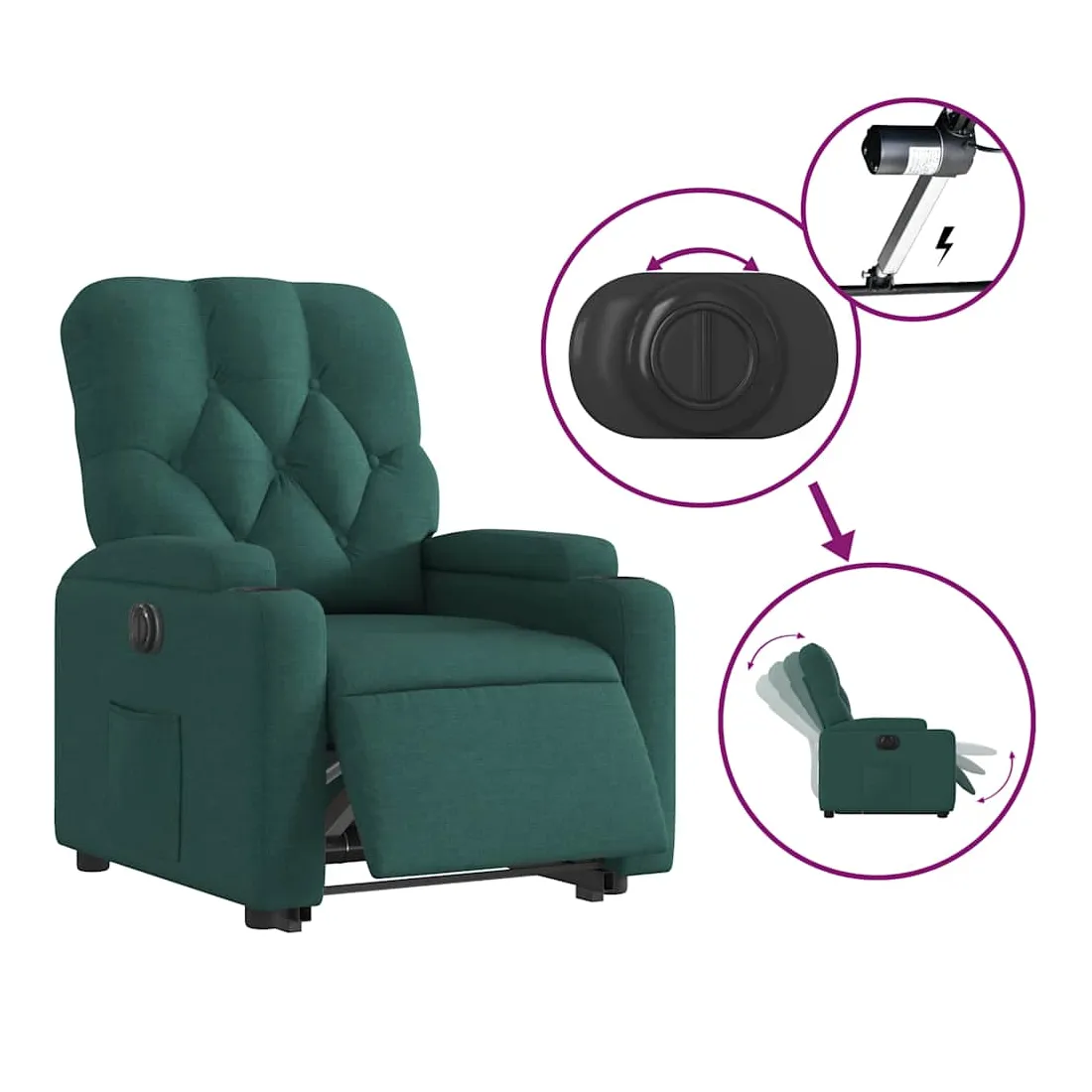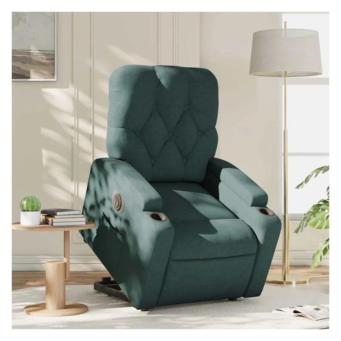 Asseyez-vous et détendez-vous dans ce fauteuil inclinable électrique très confortable ! Fonction de levage électrique : ce fauteuil inclinable pour personnes âgées est équipé d'un moteur électrique pour la fonction de levage. Grâce à la fonction qui pousse toute la chaise vers le haut, vous pouvez facilement vous tenir debout sans stresser votre dos et vos genoux en appuyant simplement sur le bouton.Fonction d'inclinaison électrique : ce fauteuil inclinable est également équipé d'un moteur électrique qui permet de régler automatiquement le repose-pied et le dossier dans n'importe quelle position, selon votre confort, en appuyant simplement sur le bouton situé sur le côté du fauteuil. Cette fonction permet une inclinaison maximale de 135 degrés. En outre, le dossier peut revenir automatiquement à sa position d'origine par une simple pression sur le bouton.Expérience d'assise confortable : le siège, le dossier et les larges accoudoirs bien rembourrés recouverts de tissu procurent une sensation confortable et chaleureuse, vous permettant de vous sentir enveloppé lorsque vous êtes assis. Le tissu présente un aspect simple et épuré et est respirant et durable.Porte-gobelets et poche latérale pratiques : ce fauteuil dispose de deux porte-gobelets pratiques pour vos boissons et d'une poche latérale pour garder vos objets essentiels à portée de main.Cadre solide et stable : le cadre en bois et en métal offre une structure solide et une grande stabilité. Ce fauteuil inclinable est confortable et durable.
