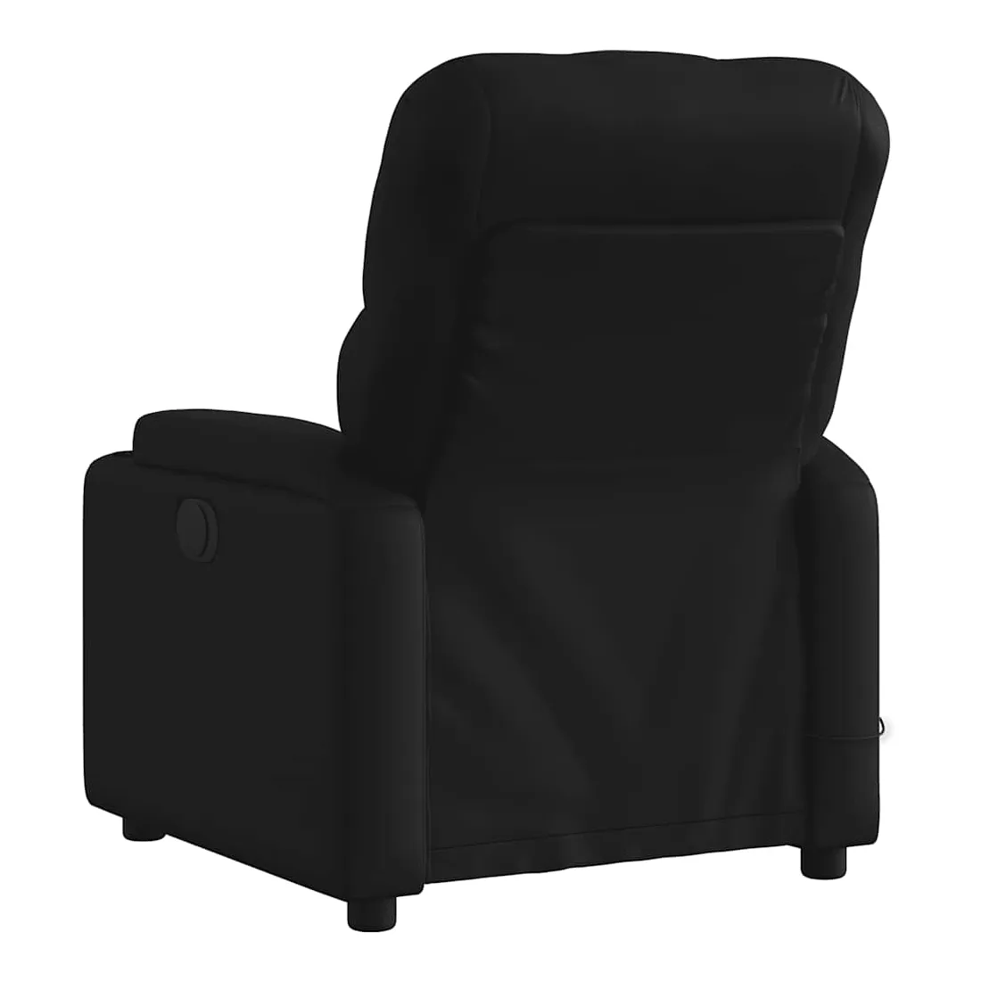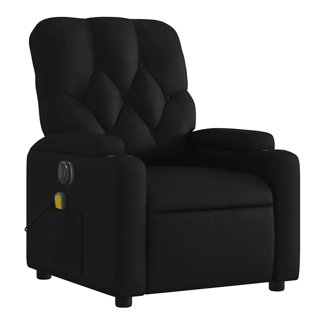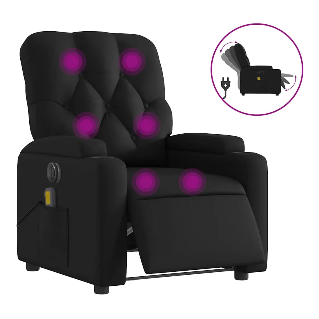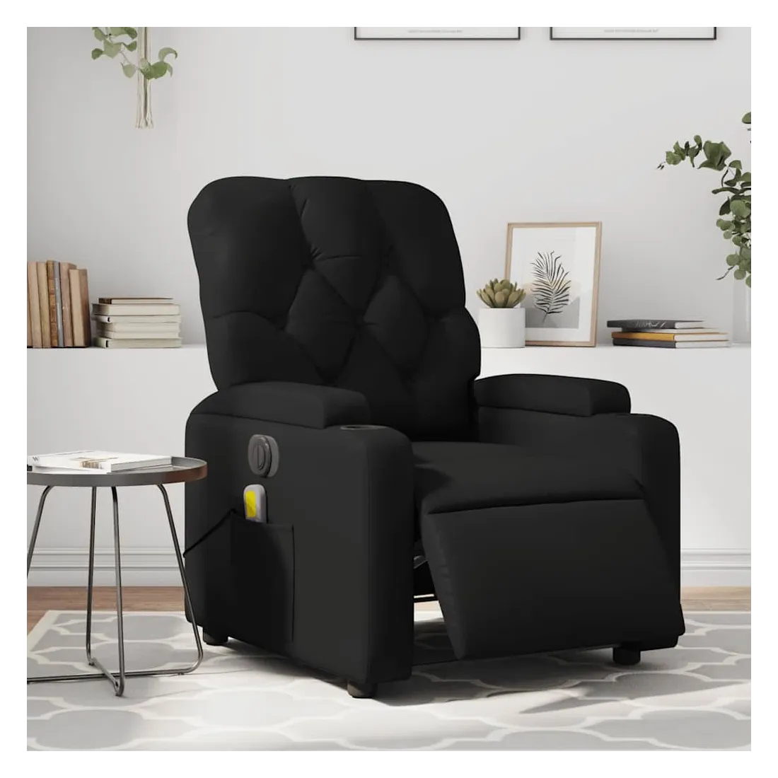Asseyez-vous et détendez-vous dans ce fauteuil inclinable de massage électrique très confortable ! Fonction d'inclinaison électrique : ce fauteuil inclinable est équipé d'un moteur électrique qui permet de régler automatiquement le repose-pied et le dossier dans n'importe quelle position, selon votre confort, en appuyant simplement sur le bouton situé sur le côté du fauteuil. Cette fonction permet une inclinaison maximale de 135 degrés. En outre, le dossier peut revenir automatiquement à sa position d'origine par une simple pression sur le bouton.Fonction de vibration : les 6 points de massage vous permettent de faire l'expérience d'un massage mieux ciblé. De plus, la télécommande incluse vous permet de choisir différents programmes de massage. La fonction de massage est alimentée par le connecteur USB qui nécessite une source d'alimentation USB certifiée de 5 V (non fournie).Expérience de siège confortable : le siège, le dossier et les larges accoudoirs rembourrés épais recouverts de similicuir procurent une sensation confortable, vous faisant vous sentir enlacé lorsque vous êtes assis. Le similicuir est un matériau très résistant. Il est résistant aux taches, ce qui le rend facile à nettoyer avec un chiffon humide. La surface lisse donne également un aspect luxueux et la beauté du cuir véritable.Poche latérale pratique : ce fauteuil est doté d'une poche latérale pour ranger votre télécommande ou garder vos objets essentiels à portée de main.Cadre solide et stable : le cadre en bois et en métal offre une structure solide et une grande stabilité. Ce fauteuil inclinable est confortable et durable.