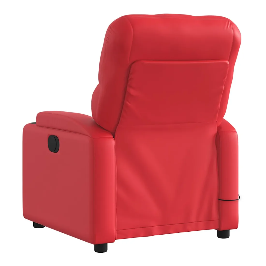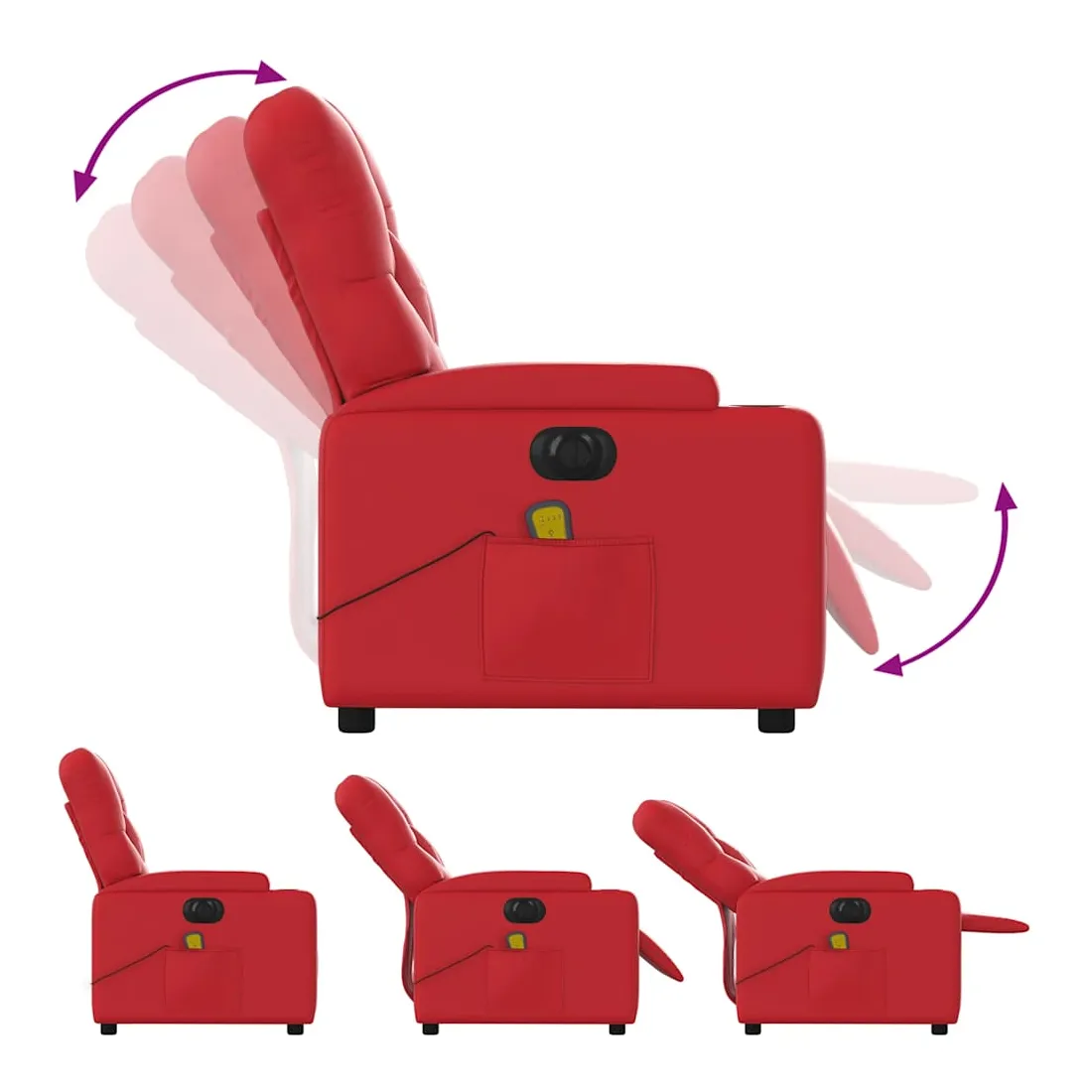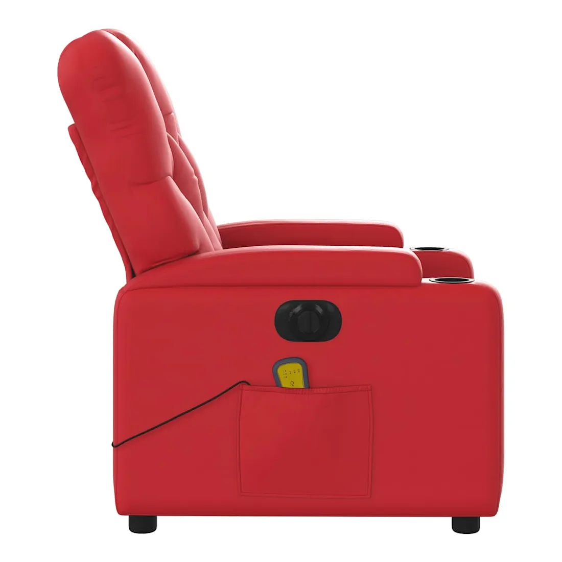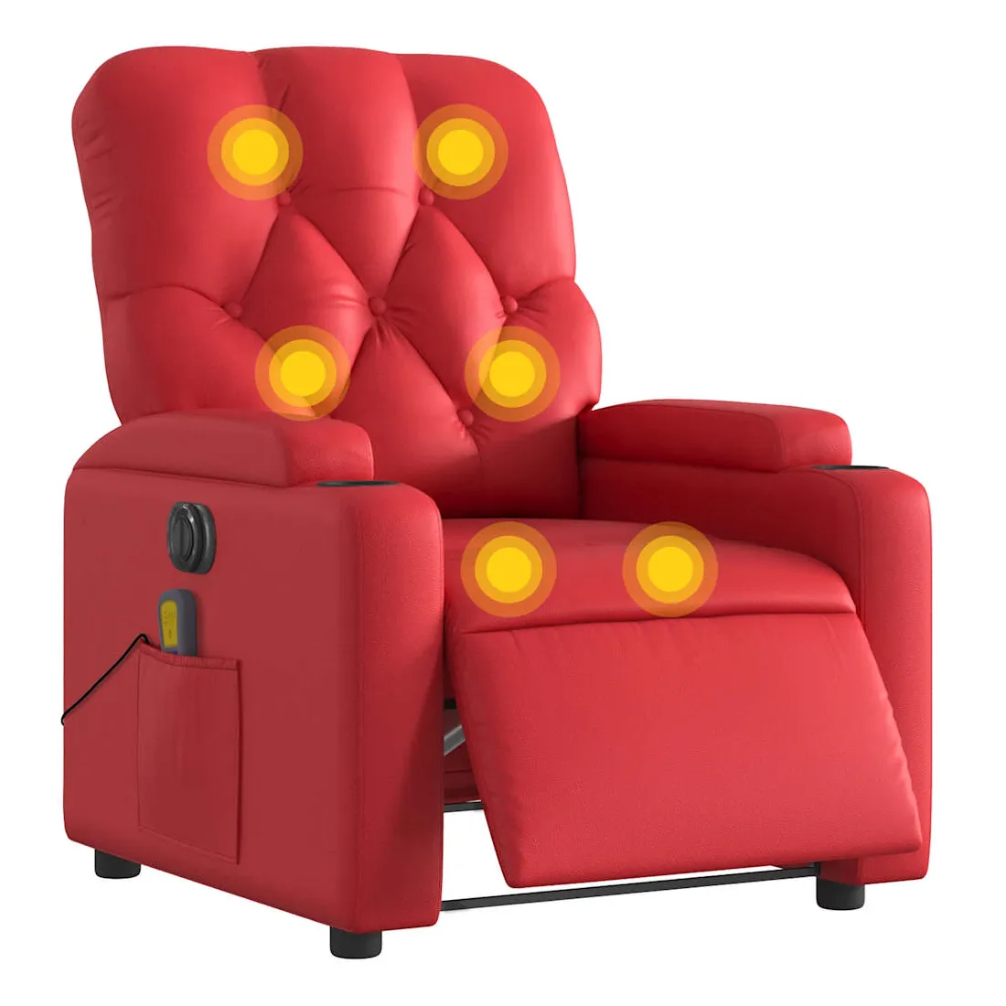 Asseyez-vous et détendez-vous dans ce fauteuil inclinable de massage électrique très confortable ! Fonction d'inclinaison électrique : ce fauteuil inclinable est équipé d'un moteur électrique qui permet de régler automatiquement le repose-pied et le dossier dans n'importe quelle position, selon votre confort, en appuyant simplement sur le bouton situé sur le côté du fauteuil. Cette fonction permet une inclinaison maximale de 135 degrés. En outre, le dossier peut revenir automatiquement à sa position d'origine par une simple pression sur le bouton.Fonction de vibration : les 6 points de massage vous permettent de faire l'expérience d'un massage mieux ciblé. De plus, la télécommande incluse vous permet de choisir différents programmes de massage. La fonction de massage est alimentée par le connecteur USB qui nécessite une source d'alimentation USB certifiée de 5 V (non fournie).Expérience de siège confortable : le siège, le dossier et les larges accoudoirs rembourrés épais recouverts de similicuir procurent une sensation confortable, vous faisant vous sentir enlacé lorsque vous êtes assis. Le similicuir est un matériau très résistant. Il est résistant aux taches, ce qui le rend facile à nettoyer avec un chiffon humide. La surface lisse donne également un aspect luxueux et la beauté du cuir véritable.Poche latérale pratique : ce fauteuil est doté d'une poche latérale pour ranger votre télécommande ou garder vos objets essentiels à portée de main.Cadre solide et stable : le cadre en bois et en métal offre une structure solide et une grande stabilité. Ce fauteuil inclinable est confortable et durable.