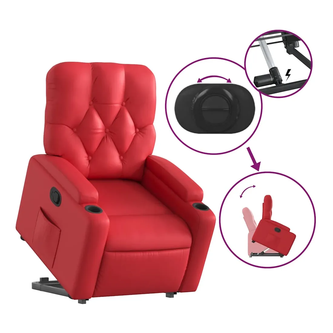 Asseyez-vous et détendez-vous dans ce fauteuil inclinable très confortable ! Fonction de levage électrique : ce fauteuil inclinable pour personnes âgées est équipé d'un moteur électrique pour la fonction de levage. Grâce à la fonction qui pousse toute la chaise vers le haut, vous pouvez facilement vous tenir debout sans stresser votre dos et vos genoux en appuyant simplement sur le bouton.Fonction d'inclinaison manuelle : ce fauteuil inclinable est doté d'une poignée du côté droit. Vous pouvez régler manuellement le repose-pieds et le dossier dans n'importe quelle position selon votre confort en tirant simplement sur la poignée. Cette fonction permet une inclinaison maximale de 135 degrés. De plus, le dossier peut revenir rapidement à sa position d'origine en tirant simplement sur la poignée.Expérience de siège confortable : le siège, le dossier et les larges accoudoirs rembourrés épais recouverts de similicuir procurent une sensation confortable, vous faisant vous sentir enlacé lorsque vous êtes assis. Le similicuir est un matériau très résistant. Il est résistant aux taches, ce qui le rend facile à nettoyer avec un chiffon humide. La surface lisse donne également un aspect luxueux et la beauté du cuir véritable.Poche latérale pratique : ce fauteuil est doté d'une poche latérale pour vous permettre de garder vos objets essentiels à portée de main.Cadre solide et stable : le cadre en bois et en métal offre une structure solide et une grande stabilité. Ce fauteuil inclinable est confortable et durable.