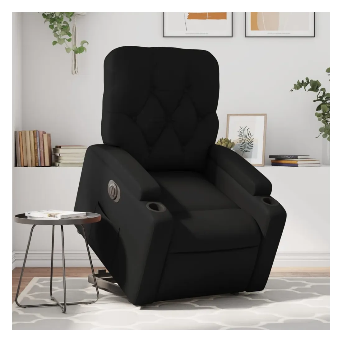 Asseyez-vous et détendez-vous dans ce fauteuil inclinable électrique très confortable ! Fonction de levage électrique : ce fauteuil inclinable pour personnes âgées est équipé d'un moteur électrique pour la fonction de levage. Grâce à la fonction qui pousse toute la chaise vers le haut, vous pouvez facilement vous tenir debout sans stresser votre dos et vos genoux en appuyant simplement sur le bouton.Fonction d'inclinaison électrique : ce fauteuil inclinable est également équipé d'un moteur électrique qui permet de régler automatiquement le repose-pied et le dossier dans n'importe quelle position, selon votre confort, en appuyant simplement sur le bouton situé sur le côté du fauteuil. Cette fonction permet une inclinaison maximale de 135 degrés. En outre, le dossier peut revenir automatiquement à sa position d'origine par une simple pression sur le bouton.Expérience de siège confortable : le siège, le dossier et les larges accoudoirs rembourrés épais recouverts de similicuir procurent une sensation confortable, vous faisant vous sentir enlacé lorsque vous êtes assis. Le similicuir est un matériau très résistant. Il est résistant aux taches, ce qui le rend facile à nettoyer avec un chiffon humide. La surface lisse donne également un aspect luxueux et la beauté du cuir véritable.Poche latérale pratique : ce fauteuil est doté d'une poche latérale pour vous permettre de garder vos objets essentiels à portée de main.Cadre solide et stable : le cadre en bois et en métal offre une structure solide et une grande stabilité. Ce fauteuil inclinable est confortable et durable.