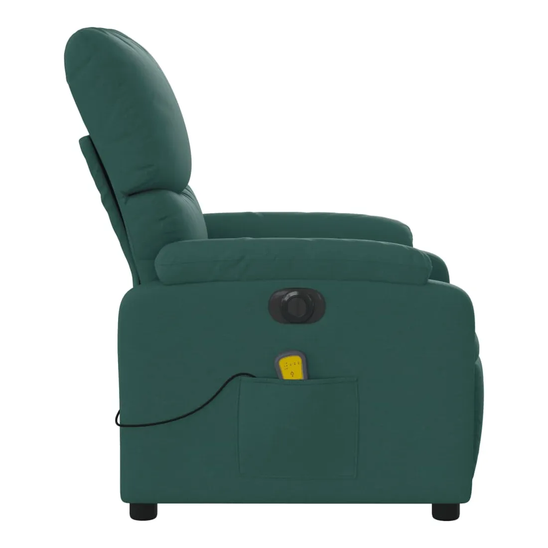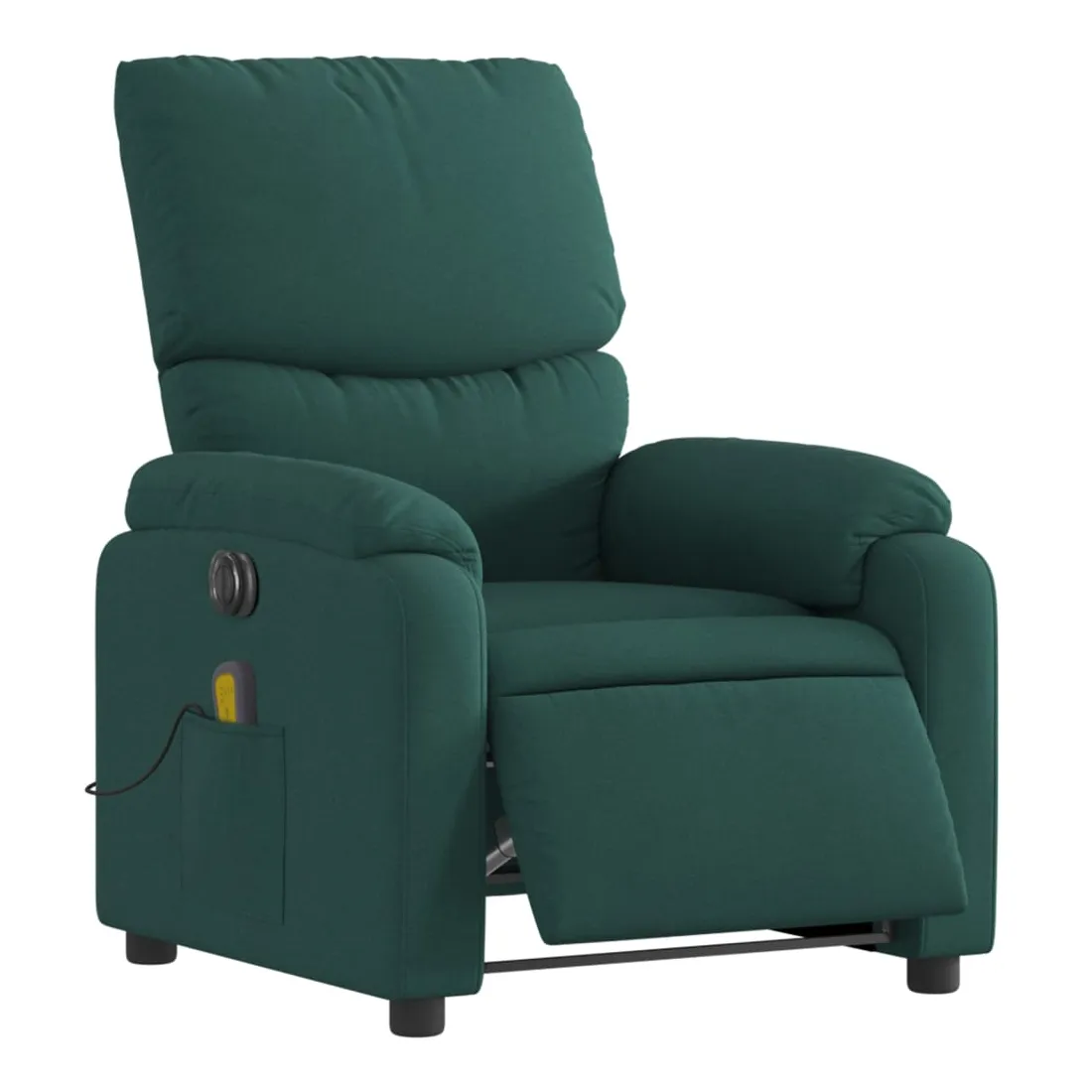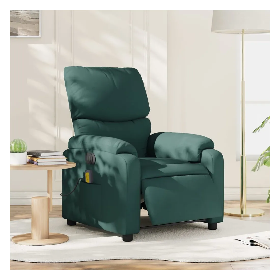 Asseyez-vous et détendez-vous dans ce fauteuil inclinable de massage électrique très confortable ! Fonction d'inclinaison électrique : ce fauteuil inclinable est équipé d'un moteur électrique qui permet de régler automatiquement le repose-pied et le dossier dans n'importe quelle position, selon votre confort, en appuyant simplement sur le bouton situé sur le côté du fauteuil. Cette fonction permet une inclinaison maximale de 135 degrés. En outre, le dossier peut revenir automatiquement à sa position d'origine par une simple pression sur le bouton.Fonction de vibration : les 6 points de massage vous permettent de faire l'expérience d'un massage mieux ciblé. De plus, la télécommande incluse vous permet de choisir différents programmes de massage. La fonction de massage est alimentée par le connecteur USB qui nécessite une source d'alimentation USB certifiée de 5 V (non fournie).Expérience d'assise confortable : le siège, le dossier et les larges accoudoirs bien rembourrés recouverts de tissu procurent une sensation confortable et chaleureuse, vous permettant de vous sentir enveloppé lorsque vous êtes assis. Le tissu présente un aspect simple et épuré et est respirant et durable.Poche latérale pratique : ce fauteuil est doté d'une poche latérale pour ranger votre télécommande ou garder vos objets essentiels à portée de main.Cadre solide et stable : le cadre en bois et en métal offre une structure solide et une grande stabilité. Ce fauteuil inclinable est confortable et durable.