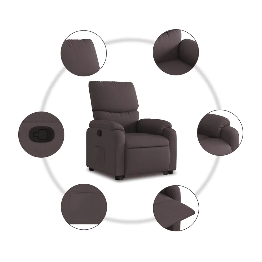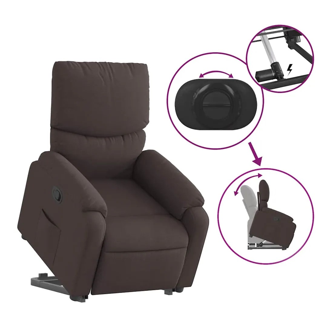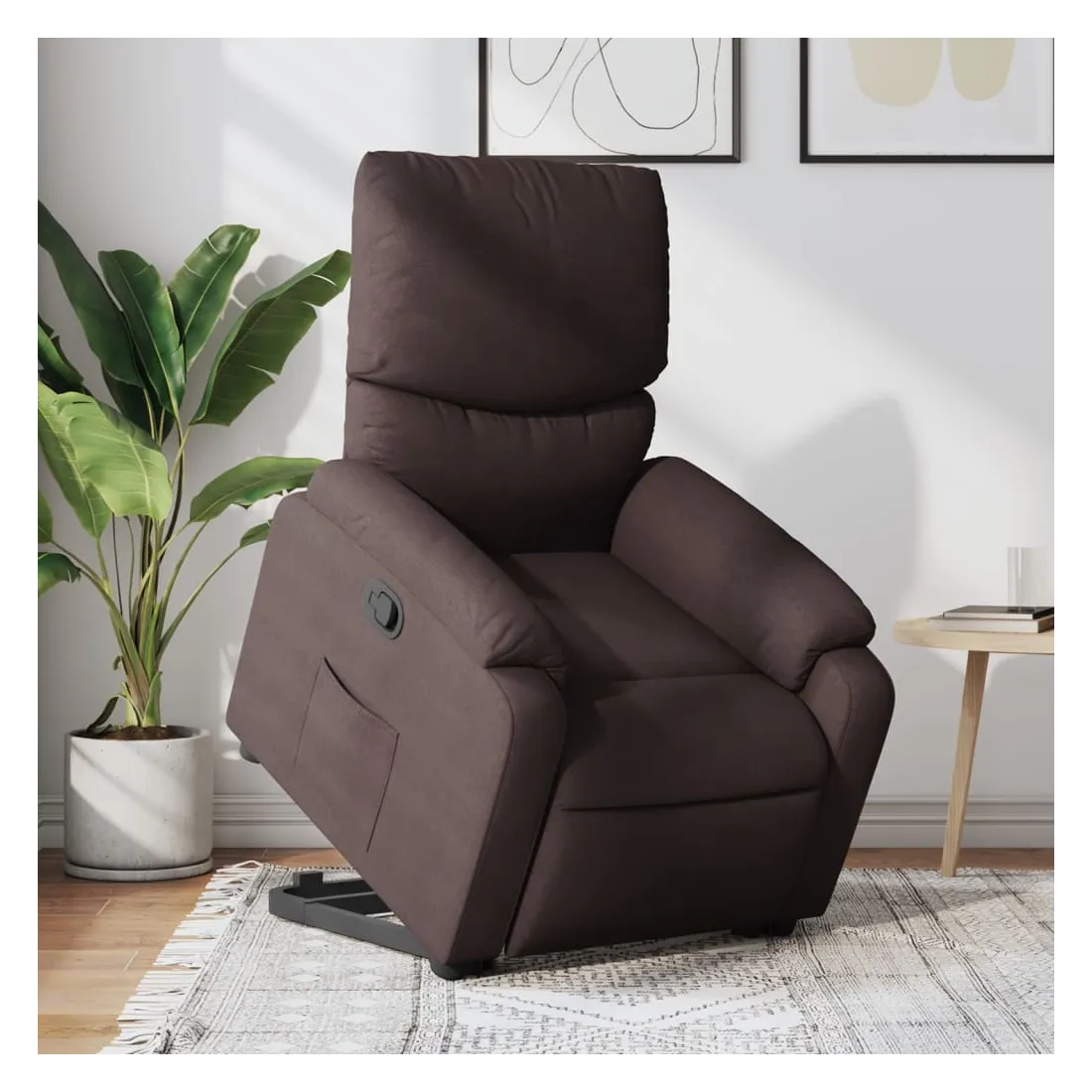 Asseyez-vous et détendez-vous dans ce fauteuil inclinable très confortable ! Fonction de levage électrique : ce fauteuil inclinable pour personnes âgées est équipé d'un moteur électrique pour la fonction de levage. Grâce à la fonction qui pousse toute la chaise vers le haut, vous pouvez facilement vous tenir debout sans stresser votre dos et vos genoux en appuyant simplement sur le bouton.Fonction d'inclinaison manuelle : ce fauteuil inclinable est doté d'une poignée du côté droit. Vous pouvez régler manuellement le repose-pieds et le dossier dans n'importe quelle position selon votre confort en tirant simplement sur la poignée. Cette fonction permet une inclinaison maximale de 135 degrés. De plus, le dossier peut revenir rapidement à sa position d'origine en tirant simplement sur la poignée.Expérience d'assise confortable : le siège, le dossier et les larges accoudoirs bien rembourrés recouverts de tissu procurent une sensation confortable et chaleureuse, vous permettant de vous sentir enveloppé lorsque vous êtes assis. Le tissu présente un aspect simple et épuré et est respirant et durable.Poche latérale pratique : ce fauteuil est doté d'une poche latérale pour vous permettre de garder vos objets essentiels à portée de main.Cadre solide et stable : le cadre en bois et en métal offre une structure solide et une grande stabilité. Ce fauteuil inclinable est confortable et durable.