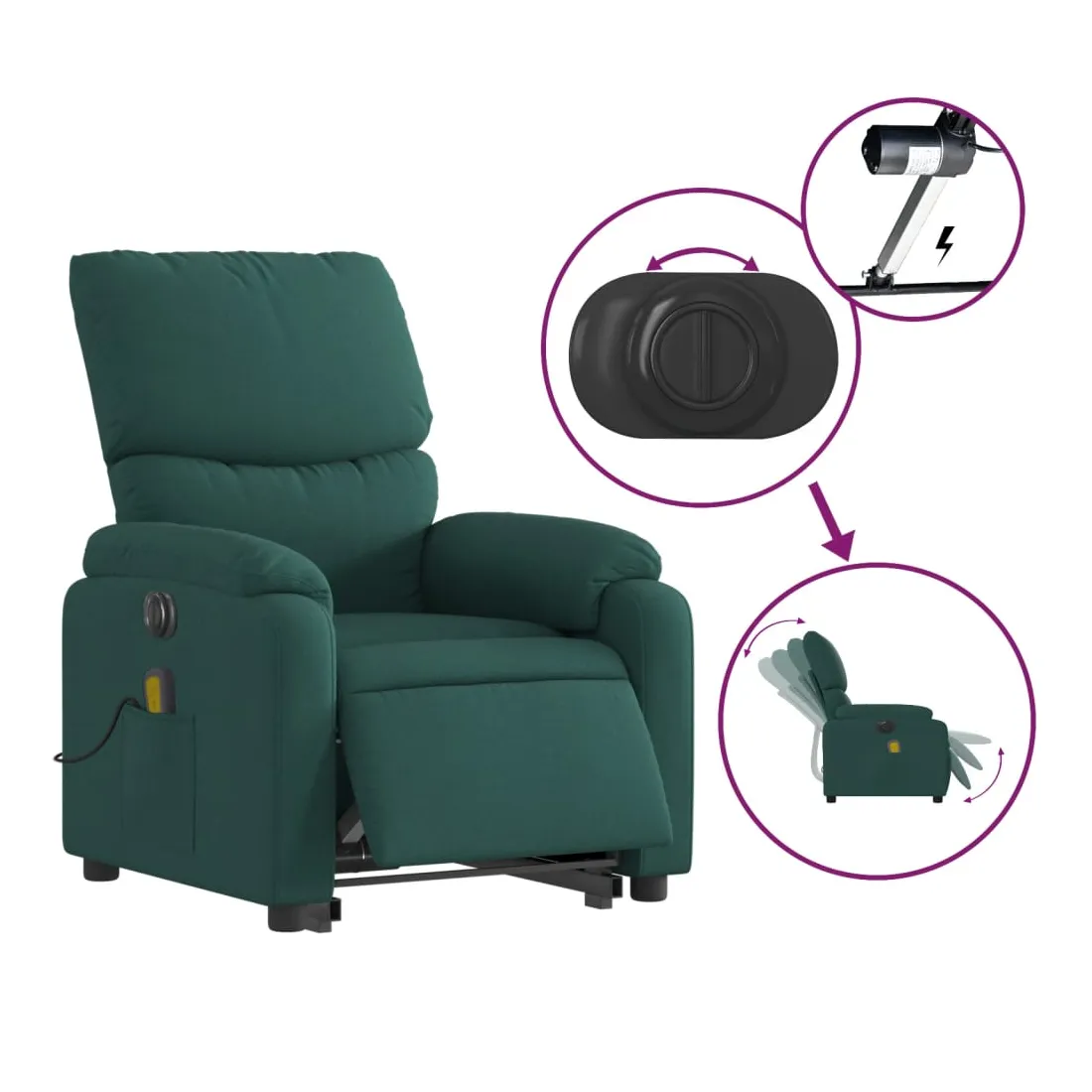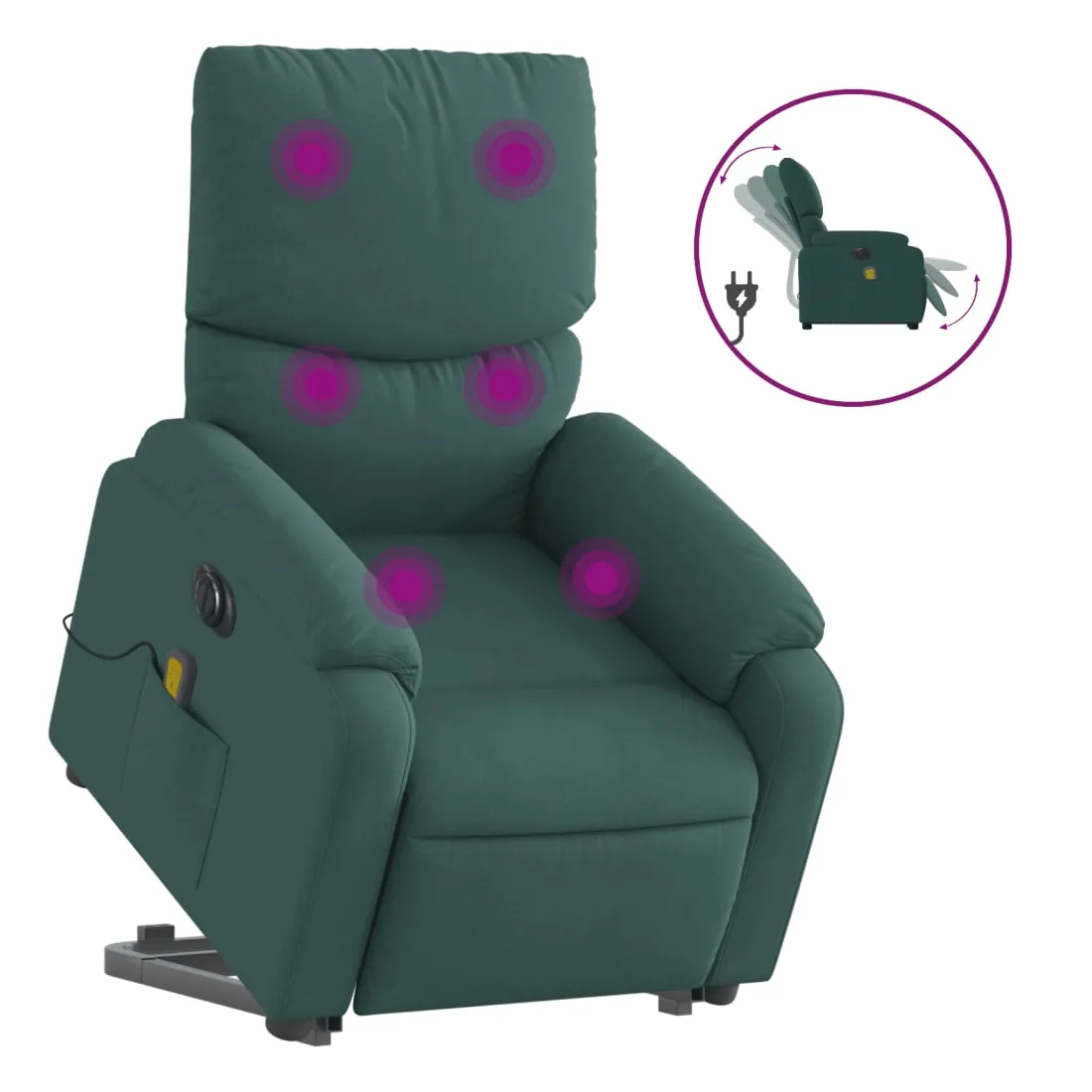 Asseyez-vous et détendez-vous dans ce fauteuil inclinable de massage électrique très confortable ! Fonction de levage électrique : ce fauteuil inclinable pour personnes âgées est équipé d'un moteur électrique pour la fonction de levage. Grâce à la fonction qui pousse toute la chaise vers le haut, vous pouvez facilement vous tenir debout sans stresser votre dos et vos genoux en appuyant simplement sur le bouton.Fonction d'inclinaison électrique : ce fauteuil inclinable est également équipé d'un moteur électrique qui permet de régler automatiquement le repose-pied et le dossier dans n'importe quelle position, selon votre confort, en appuyant simplement sur le bouton situé sur le côté du fauteuil. Cette fonction permet une inclinaison maximale de 135 degrés. En outre, le dossier peut revenir automatiquement à sa position d'origine par une simple pression sur le bouton.Fonction de vibration : les 6 points de massage vous permettent de faire l'expérience d'un massage mieux ciblé. De plus, la télécommande incluse vous permet de choisir différents programmes de massage. La fonction de massage est alimentée par le connecteur USB qui nécessite une source d'alimentation USB certifiée de 5 V (non fournie).Expérience d'assise confortable : le siège, le dossier et les larges accoudoirs bien rembourrés recouverts de tissu procurent une sensation confortable et chaleureuse, vous permettant de vous sentir enveloppé lorsque vous êtes assis. Le tissu présente un aspect simple et épuré et est respirant et durable.Poche latérale pratique : ce fauteuil est doté d'une poche latérale pour ranger votre télécommande ou garder vos objets essentiels à portée de main.Cadre solide et stable : le cadre en bois et en métal offre une structure solide et une grande stabilité. Ce fauteuil inclinable est confortable et durable.