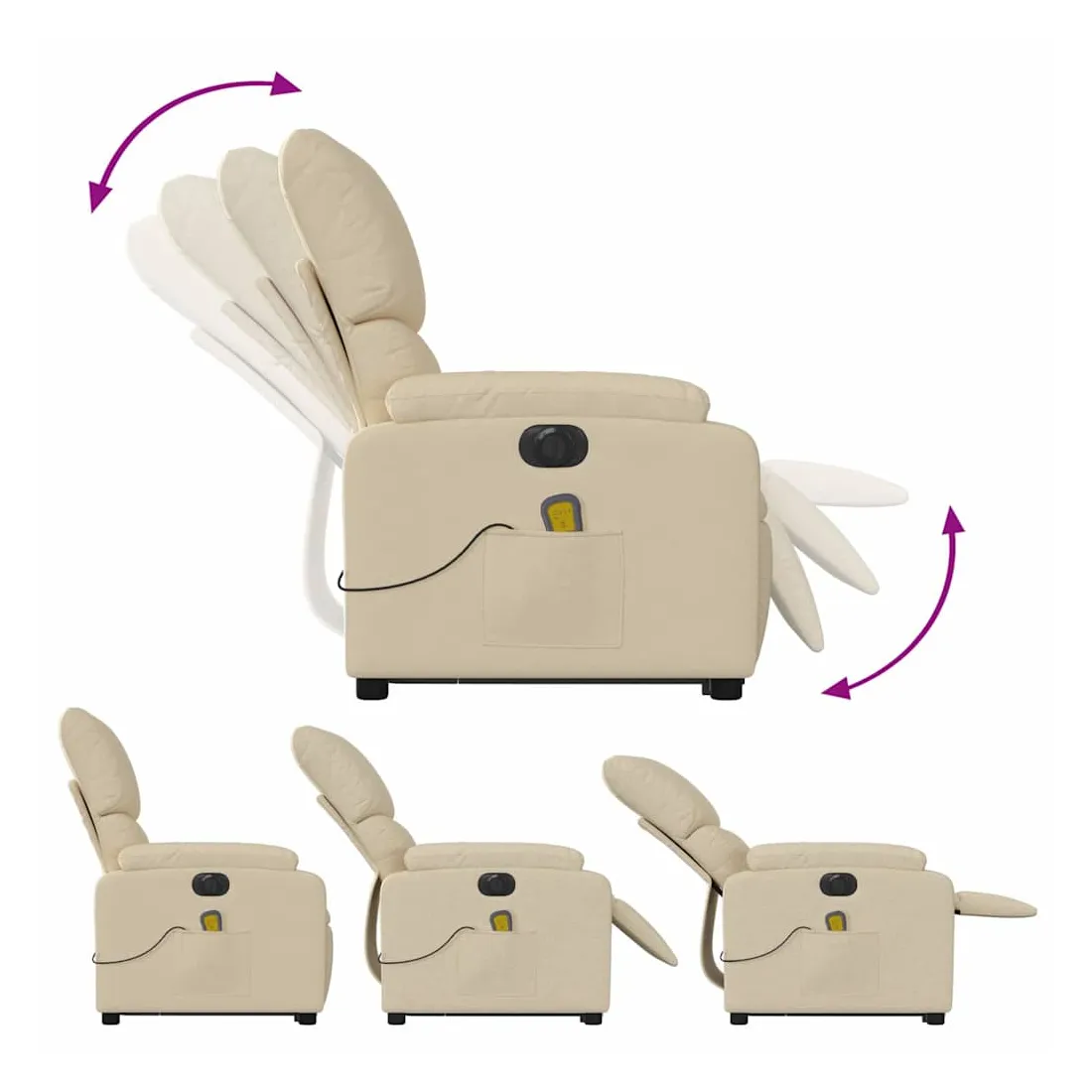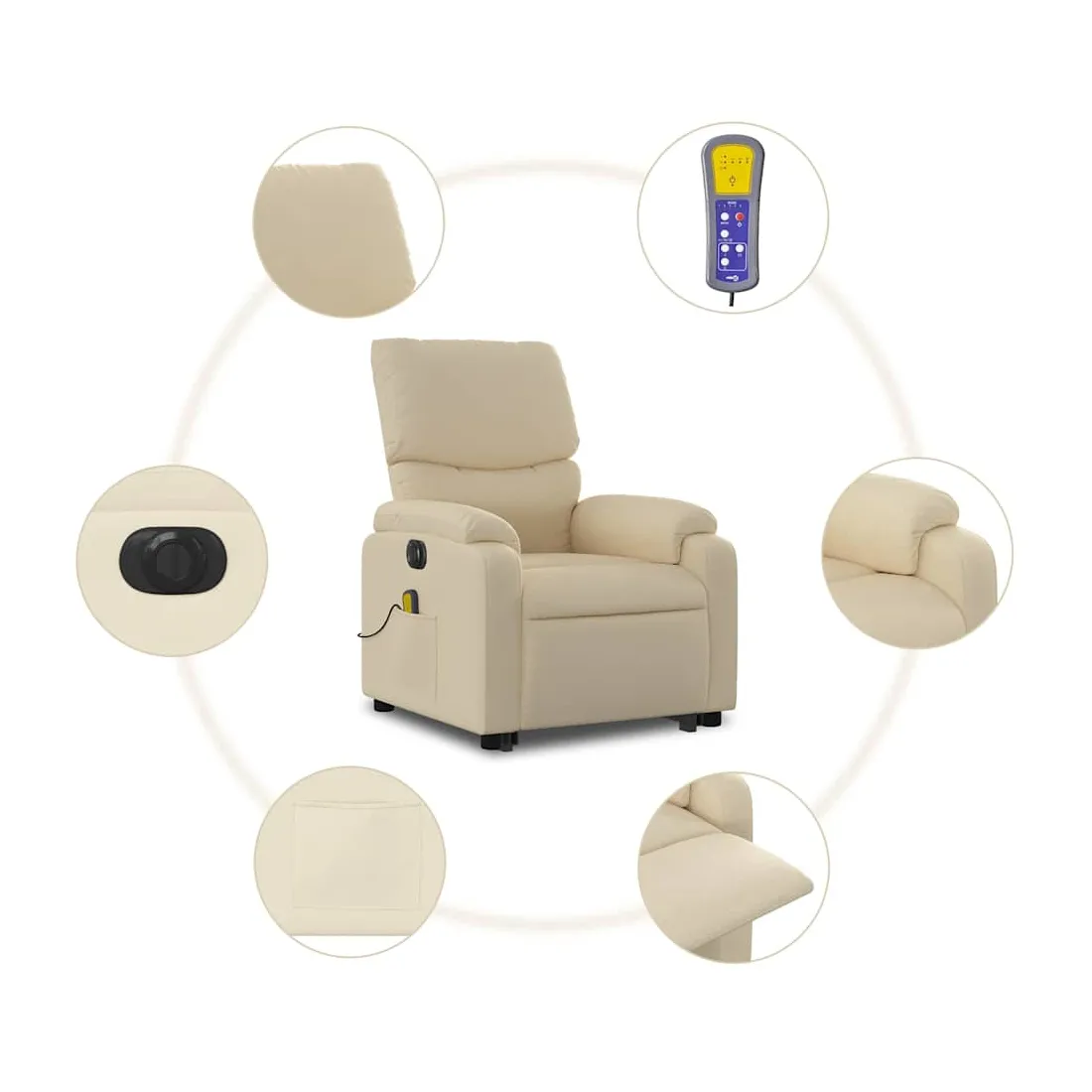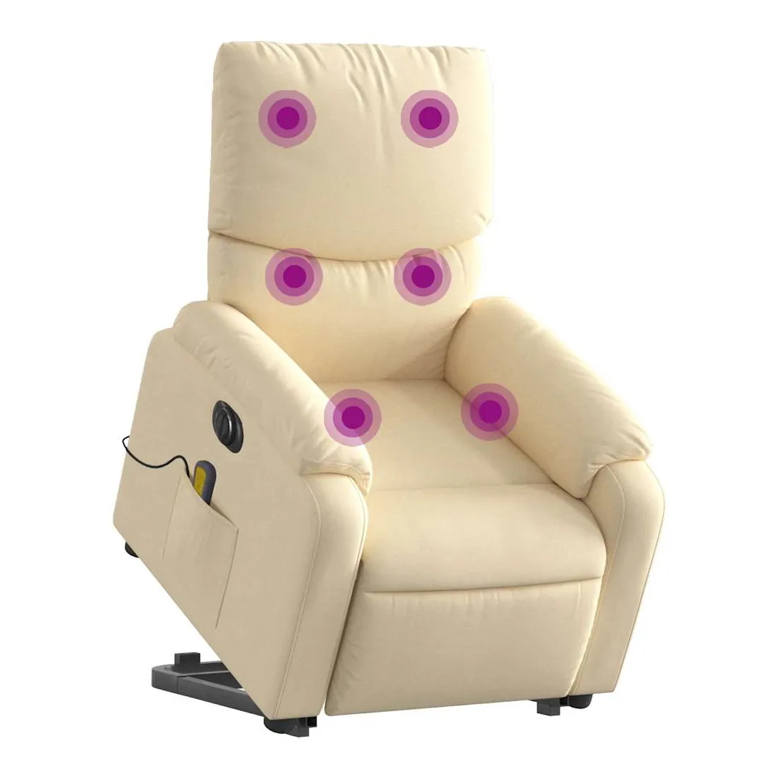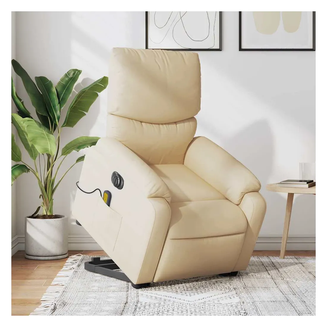 Asseyez-vous et détendez-vous dans ce fauteuil inclinable de massage électrique très confortable ! Fonction de levage électrique : ce fauteuil inclinable pour personnes âgées est équipé d'un moteur électrique pour la fonction de levage. Grâce à la fonction qui pousse toute la chaise vers le haut, vous pouvez facilement vous tenir debout sans stresser votre dos et vos genoux en appuyant simplement sur le bouton.Fonction d'inclinaison électrique : ce fauteuil inclinable est également équipé d'un moteur électrique qui permet de régler automatiquement le repose-pied et le dossier dans n'importe quelle position, selon votre confort, en appuyant simplement sur le bouton situé sur le côté du fauteuil. Cette fonction permet une inclinaison maximale de 135 degrés. En outre, le dossier peut revenir automatiquement à sa position d'origine par une simple pression sur le bouton.Fonction de vibration : les 6 points de massage vous permettent de faire l'expérience d'un massage mieux ciblé. De plus, la télécommande incluse vous permet de choisir différents programmes de massage. La fonction de massage est alimentée par le connecteur USB qui nécessite une source d'alimentation USB certifiée de 5 V (non fournie).Expérience d'assise confortable : le siège, le dossier et les larges accoudoirs bien rembourrés recouverts de tissu procurent une sensation confortable et chaleureuse, vous permettant de vous sentir enveloppé lorsque vous êtes assis. Le tissu présente un aspect simple et épuré et est respirant et durable.Poche latérale pratique : ce fauteuil est doté d'une poche latérale pour ranger votre télécommande ou garder vos objets essentiels à portée de main.Cadre solide et stable : le cadre en bois et en métal offre une structure solide et une grande stabilité. Ce fauteuil inclinable est confortable et durable.