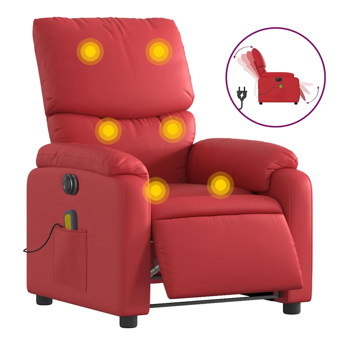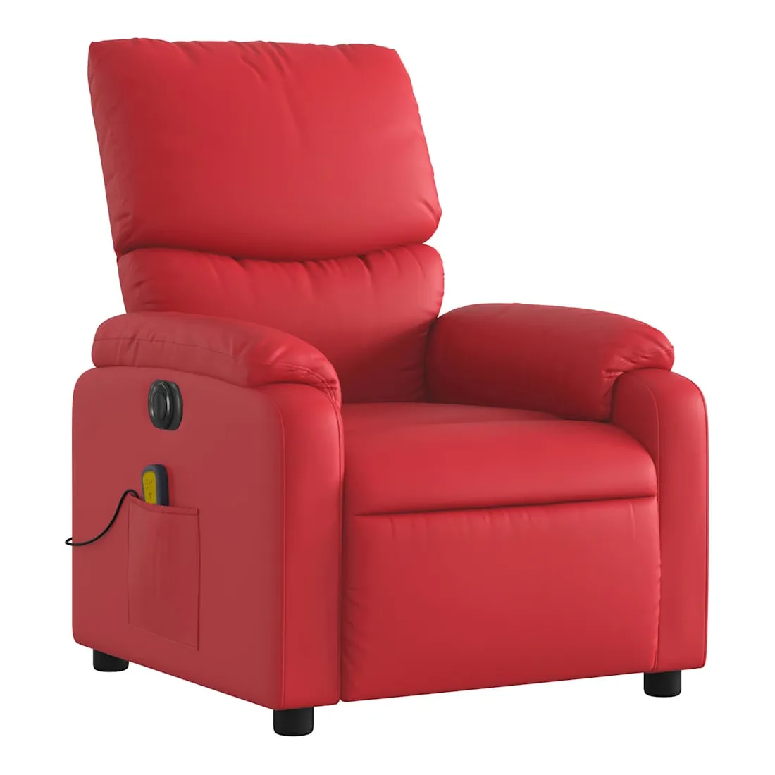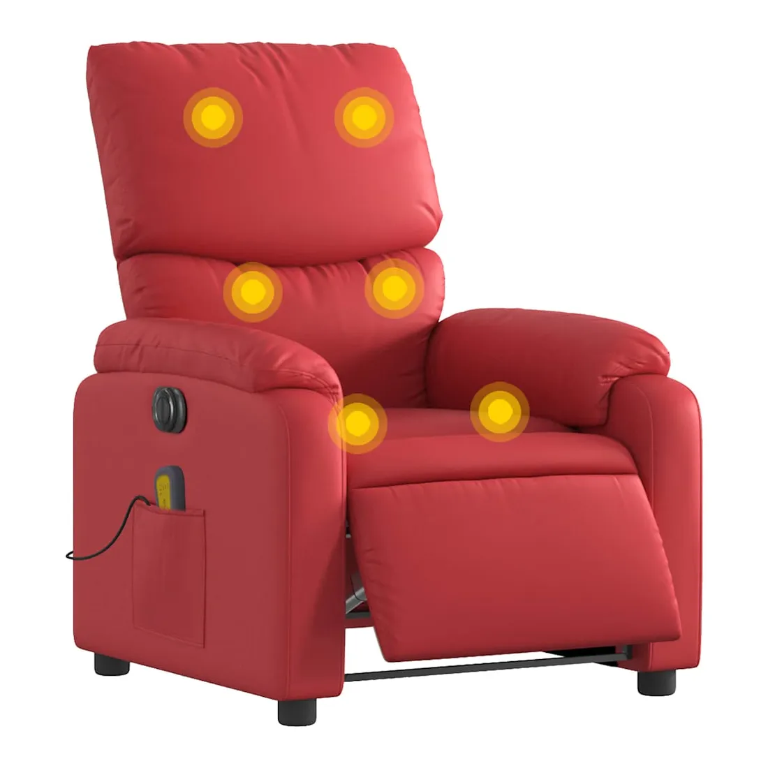 Asseyez-vous et détendez-vous dans ce fauteuil inclinable de massage électrique très confortable ! Fonction d'inclinaison électrique : ce fauteuil inclinable est équipé d'un moteur électrique qui permet de régler automatiquement le repose-pied et le dossier dans n'importe quelle position, selon votre confort, en appuyant simplement sur le bouton situé sur le côté du fauteuil. Cette fonction permet une inclinaison maximale de 135 degrés. En outre, le dossier peut revenir automatiquement à sa position d'origine par une simple pression sur le bouton.Fonction de vibration : les 6 points de massage vous permettent de faire l'expérience d'un massage mieux ciblé. De plus, la télécommande incluse vous permet de choisir différents programmes de massage. La fonction de massage est alimentée par le connecteur USB qui nécessite une source d'alimentation USB certifiée de 5 V (non fournie).Expérience de siège confortable : le siège, le dossier et les larges accoudoirs rembourrés épais recouverts de similicuir procurent une sensation confortable, vous faisant vous sentir enlacé lorsque vous êtes assis. Le similicuir est un matériau très résistant. Il est résistant aux taches, ce qui le rend facile à nettoyer avec un chiffon humide. La surface lisse donne également un aspect luxueux et la beauté du cuir véritable.Poche latérale pratique : ce fauteuil est doté d'une poche latérale pour ranger votre télécommande ou garder vos objets essentiels à portée de main.Cadre solide et stable : le cadre en bois et en métal offre une structure solide et une grande stabilité. Ce fauteuil inclinable est confortable et durable.