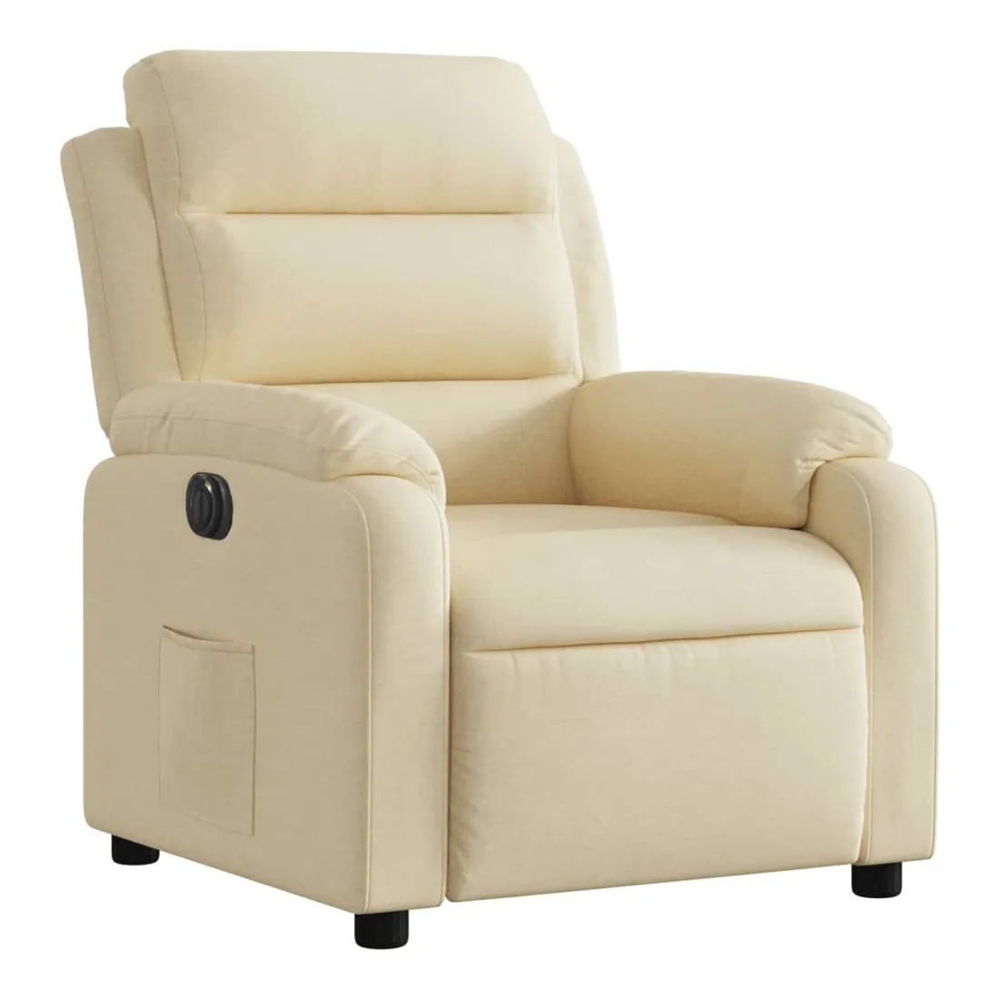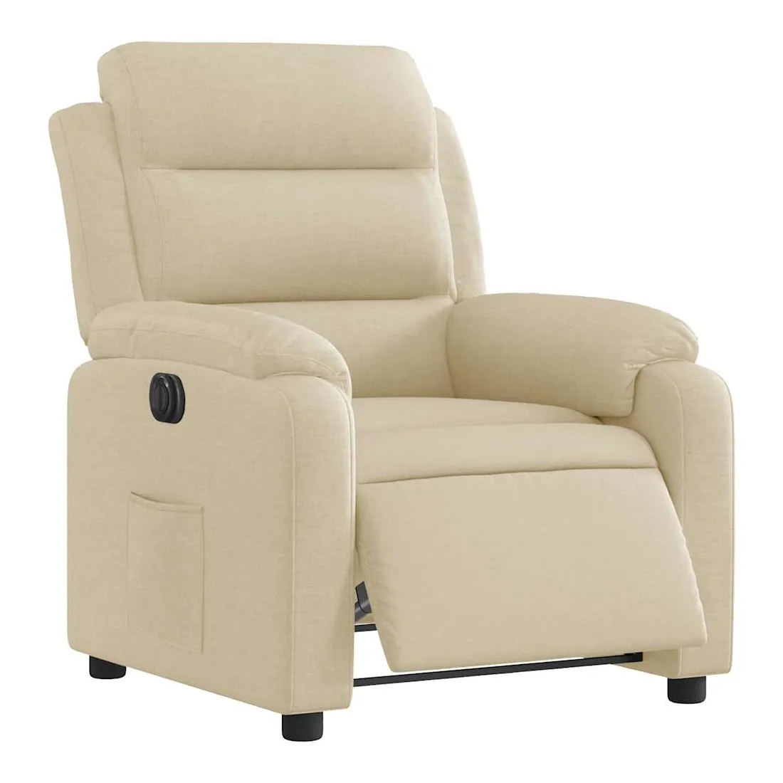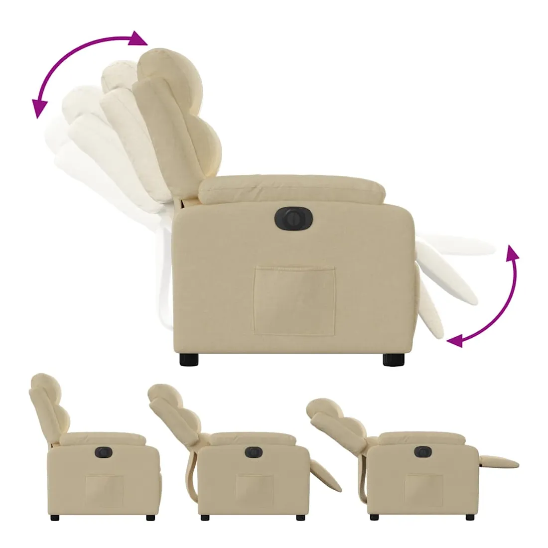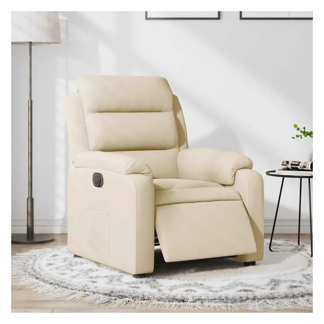 Asseyez-vous et détendez-vous dans ce fauteuil inclinable électrique très confortable ! Fonction d'inclinaison électrique : ce fauteuil inclinable est équipé d'un moteur électrique qui permet de régler automatiquement le repose-pied et le dossier dans n'importe quelle position, selon votre confort, en appuyant simplement sur le bouton situé sur le côté du fauteuil. Cette fonction permet une inclinaison maximale de 135 degrés. En outre, le dossier peut revenir automatiquement à sa position d'origine par une simple pression sur le bouton.Expérience d'assise confortable : le siège, le dossier et les larges accoudoirs bien rembourrés recouverts de tissu procurent une sensation confortable et chaleureuse, vous permettant de vous sentir enveloppé lorsque vous êtes assis. Le tissu présente un aspect simple et épuré et est respirant et durable.Poche latérale pratique : ce fauteuil est doté d'une poche latérale pour vous permettre de garder vos objets essentiels à portée de main.Cadre solide et stable : le cadre en bois et en métal offre une structure solide et une grande stabilité. Ce fauteuil inclinable est confortable et durable.