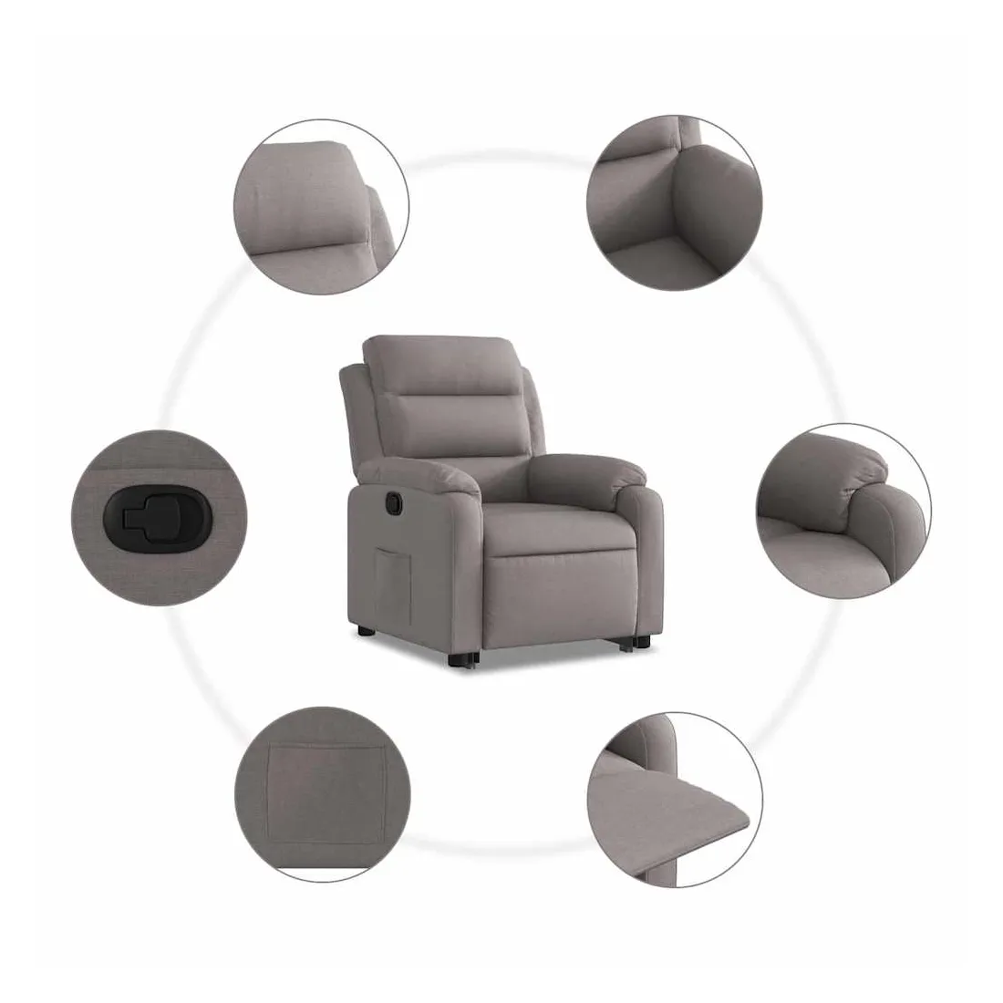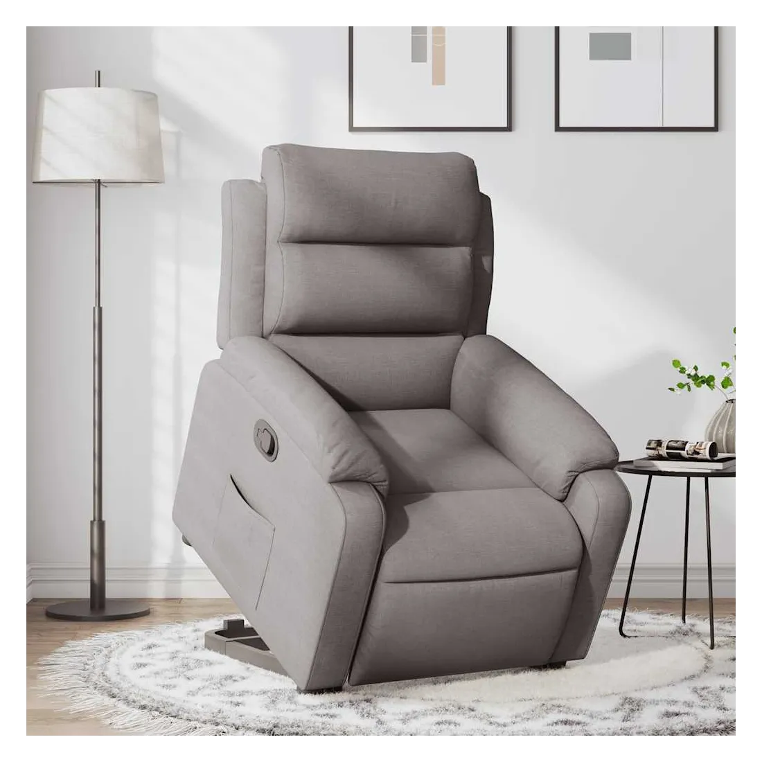 Asseyez-vous et détendez-vous dans ce fauteuil inclinable très confortable ! Fonction de levage électrique : ce fauteuil inclinable pour personnes âgées est équipé d'un moteur électrique pour la fonction de levage. Grâce à la fonction qui pousse toute la chaise vers le haut, vous pouvez facilement vous tenir debout sans stresser votre dos et vos genoux en appuyant simplement sur le bouton.Fonction d'inclinaison manuelle : ce fauteuil inclinable est doté d'une poignée du côté droit. Vous pouvez régler manuellement le repose-pieds et le dossier dans n'importe quelle position selon votre confort en tirant simplement sur la poignée. Cette fonction permet une inclinaison maximale de 135 degrés. De plus, le dossier peut revenir rapidement à sa position d'origine en tirant simplement sur la poignée.Expérience d'assise confortable : le siège, le dossier et les larges accoudoirs bien rembourrés recouverts de tissu procurent une sensation confortable et chaleureuse, vous permettant de vous sentir enveloppé lorsque vous êtes assis. Le tissu présente un aspect simple et épuré et est respirant et durable.Poche latérale pratique : ce fauteuil est doté d'une poche latérale pour vous permettre de garder vos objets essentiels à portée de main.Cadre solide et stable : le cadre en bois et en métal offre une structure solide et une grande stabilité. Ce fauteuil inclinable est confortable et durable.