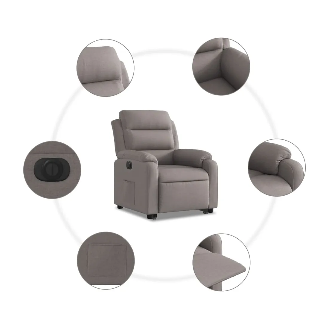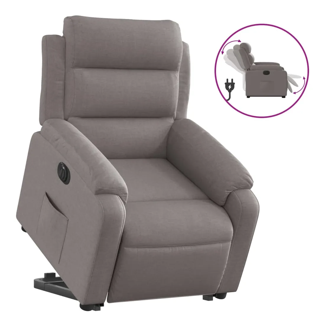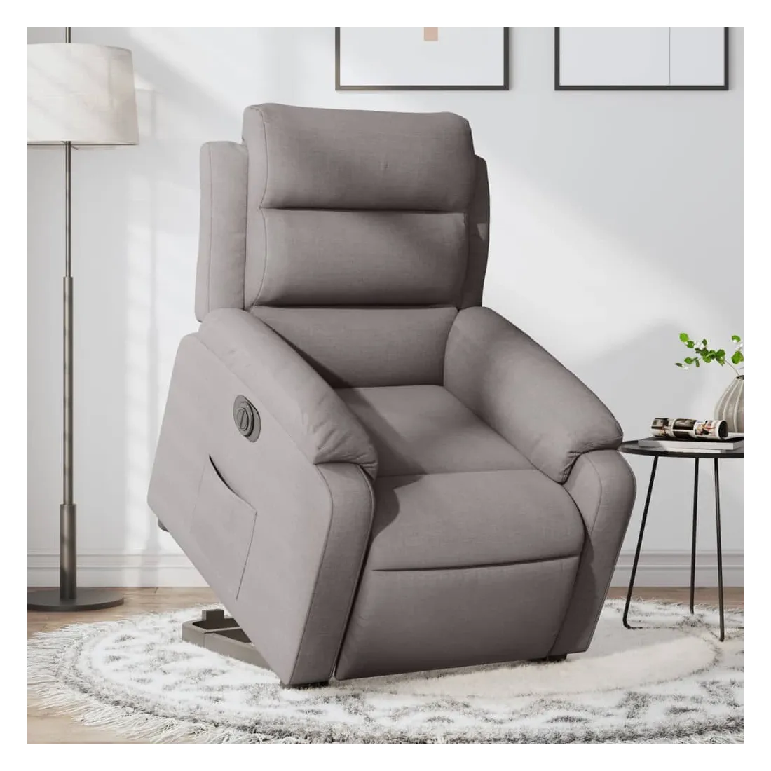 Asseyez-vous et détendez-vous dans ce fauteuil inclinable électrique très confortable ! Fonction de levage électrique : ce fauteuil inclinable pour personnes âgées est équipé d'un moteur électrique pour la fonction de levage. Grâce à la fonction qui pousse toute la chaise vers le haut, vous pouvez facilement vous tenir debout sans stresser votre dos et vos genoux en appuyant simplement sur le bouton.Fonction d'inclinaison électrique : ce fauteuil inclinable est également équipé d'un moteur électrique qui permet de régler automatiquement le repose-pied et le dossier dans n'importe quelle position, selon votre confort, en appuyant simplement sur le bouton situé sur le côté du fauteuil. Cette fonction permet une inclinaison maximale de 135 degrés. En outre, le dossier peut revenir automatiquement à sa position d'origine par une simple pression sur le bouton.Expérience d'assise confortable : le siège, le dossier et les larges accoudoirs bien rembourrés recouverts de tissu procurent une sensation confortable et chaleureuse, vous permettant de vous sentir enveloppé lorsque vous êtes assis. Le tissu présente un aspect simple et épuré et est respirant et durable.Poche latérale pratique : ce fauteuil est doté d'une poche latérale pour vous permettre de garder vos objets essentiels à portée de main.Cadre solide et stable : le cadre en bois et en métal offre une structure solide et une grande stabilité. Ce fauteuil inclinable est confortable et durable.