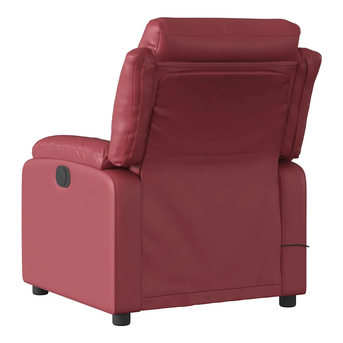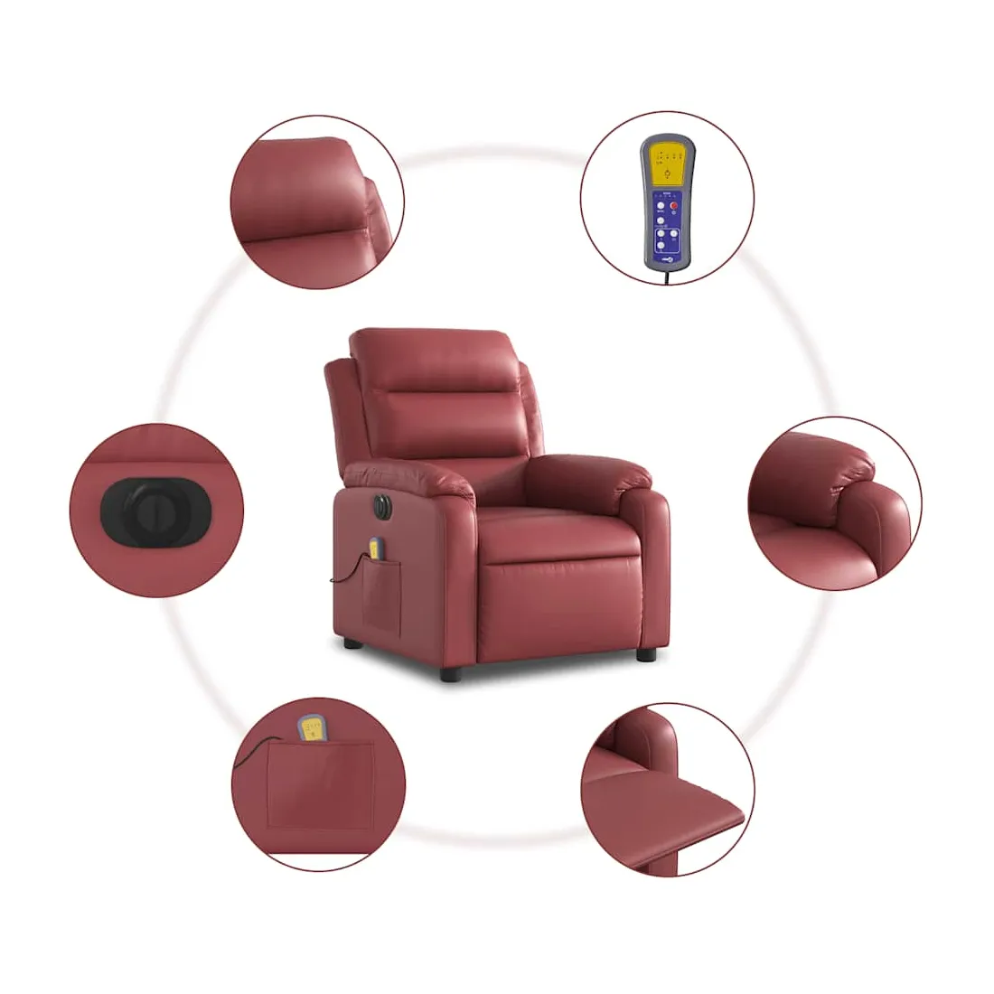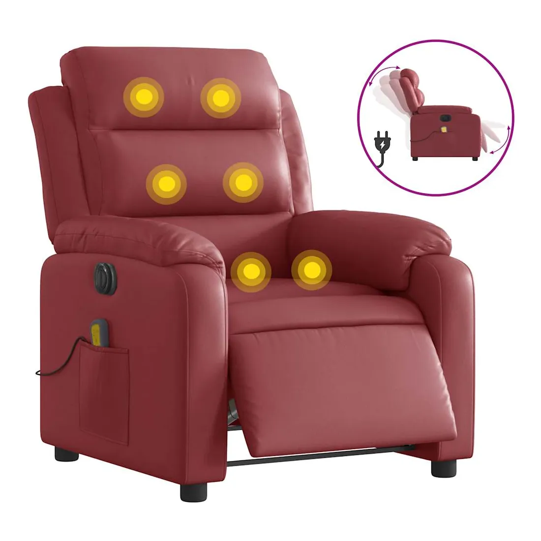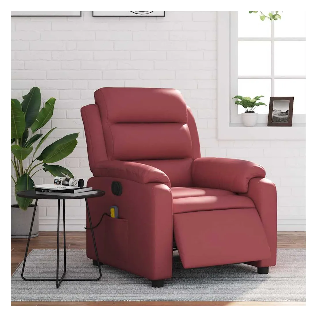 Asseyez-vous et détendez-vous dans ce fauteuil inclinable de massage électrique très confortable ! Fonction d'inclinaison électrique : ce fauteuil inclinable est équipé d'un moteur électrique qui permet de régler automatiquement le repose-pied et le dossier dans n'importe quelle position, selon votre confort, en appuyant simplement sur le bouton situé sur le côté du fauteuil. Cette fonction permet une inclinaison maximale de 135 degrés. En outre, le dossier peut revenir automatiquement à sa position d'origine par une simple pression sur le bouton.Fonction de vibration : les 6 points de massage vous permettent de faire l'expérience d'un massage mieux ciblé. De plus, la télécommande incluse vous permet de choisir différents programmes de massage. La fonction de massage est alimentée par le connecteur USB qui nécessite une source d'alimentation USB certifiée de 5 V (non fournie).Expérience de siège confortable : le siège, le dossier et les larges accoudoirs rembourrés épais recouverts de similicuir procurent une sensation confortable et chaleureuse, vous faisant vous sentir enlacé lorsque vous êtes assis. Le simili cuir est un matériau très résistant. Il est résistant aux taches, ce qui le rend facile à nettoyer avec un chiffon humide. La surface lisse donne également un aspect luxueux et la beauté du cuir véritable.Poche latérale pratique : ce fauteuil est doté d'une poche latérale pour ranger votre télécommande ou garder vos objets essentiels à portée de main.Cadre solide et stable : le cadre en bois et en métal offre une structure solide et une grande stabilité. Ce fauteuil inclinable est confortable et durable.